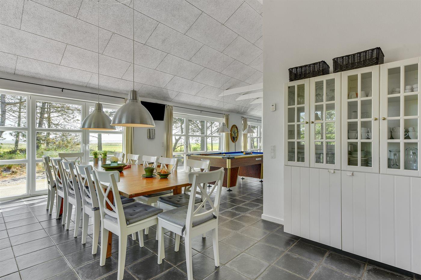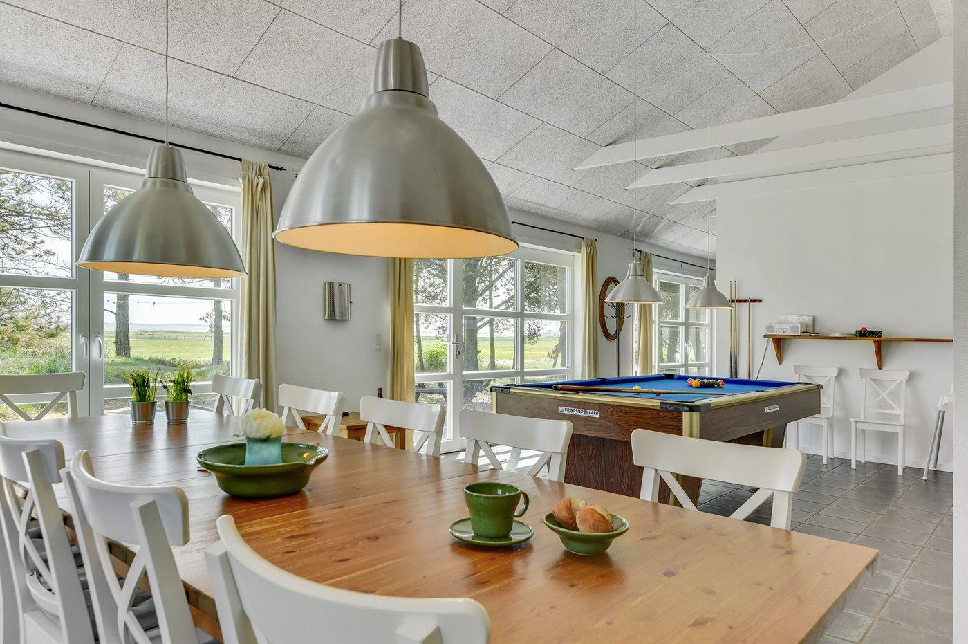 Et flot sommerhus med bl.a. udendørs swimmingpool og 5-pers.udendørs spa (standvand) - beliggende på en naturgrund - kun 100 m fra Vadehavet. Swimmingpoolen som måler 8,0 x 5,0 x 1,2 m kan benyttes i perioden fra 01.05. til 30.09. Til huset hører et stort og skønt terrasseareal med havemøbler. Huset er bygget med sikker hånd for kvalitet og fremstår lyst og indbydende. Bemærk: Huset er indrettet med hems, hvor I finder 4 af de i alt 14 sovepladser.