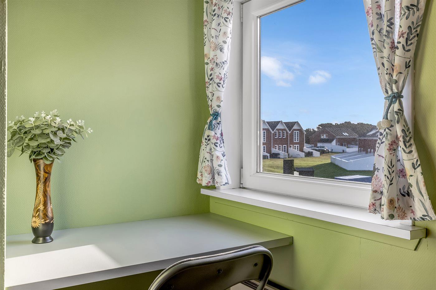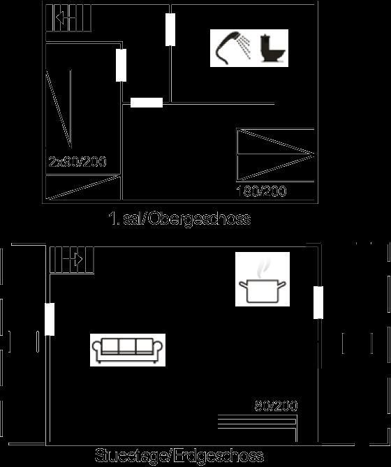 Badeværelset på 1. sal er med bruser og vaskemaskine. Køkkenet ligger i forbindelse med den hyggelige og pænt indrettede opholdsstue i stueetagen, som er udstyret med TV tilsluttet fællesantenne. Desuden gratis internetforbindelse til rådighed (computer skal medbringes). Sovepladserne fordeler sig på 3 værelser; 1 med dobbeltseng og 1 med 2 enkeltsenge på 1. sal samt 1 med køjeseng i stueetagen.