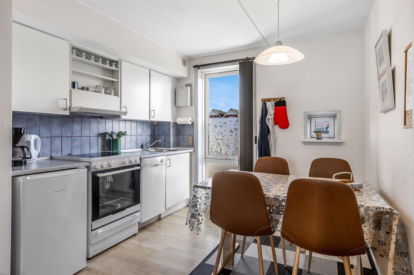 Køkkenet er udstyret med 1 køleskab. Der er 4 keramiske kogeplader, varmluftovn samt opvaskemaskine.