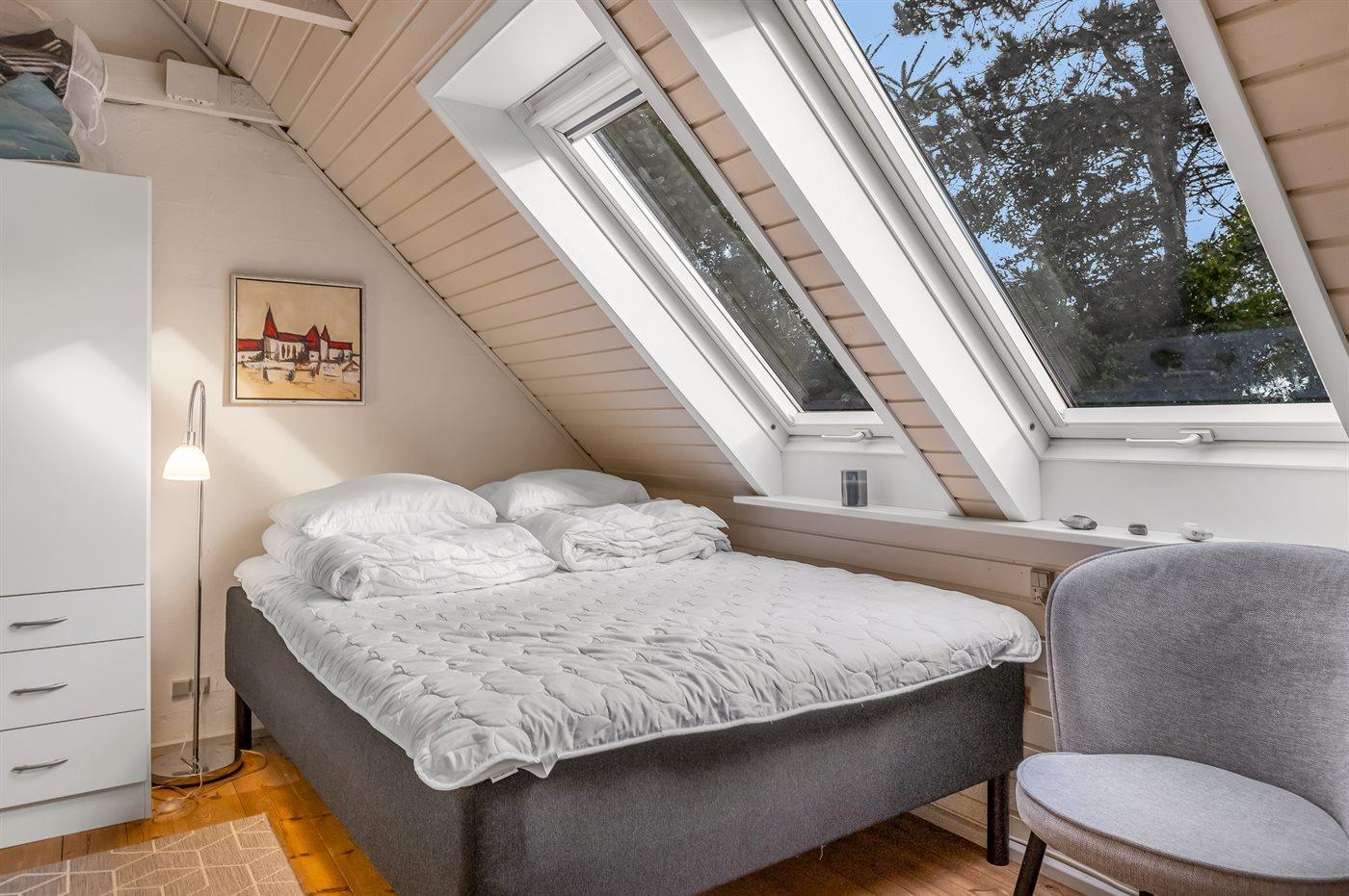 Der er i alt 1 soveværelse. Sovepladserne fordeler sig på: 2 sovepladser i dobbeltseng. 1 soveplads i enkeltseng. 2 sovepladser i sovesofa (dobbelt).