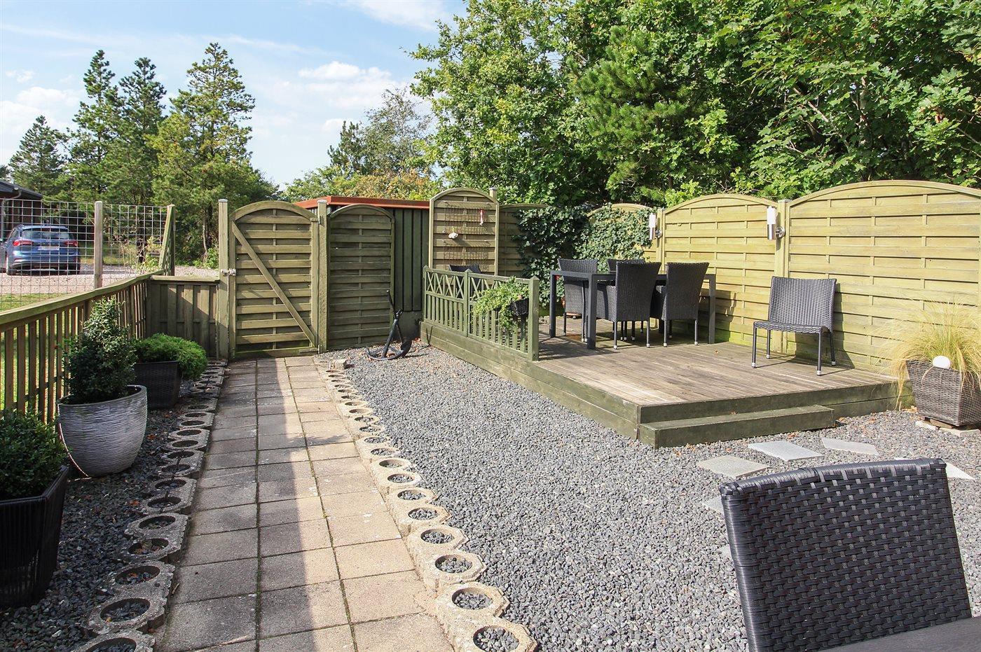 Ferieboligen er beliggende på en 506 m² stor naturgrund. Der er 3900 m til havet. Der er 300 m til Vadehavet. Nærmeste forretning er beliggende i en afstand af 1000 m. Til ferieboligen hører 40 m² terrasseareal. Der er redskabsrum. Gynge. Sandkasse. Parkering ved ferieboligen.