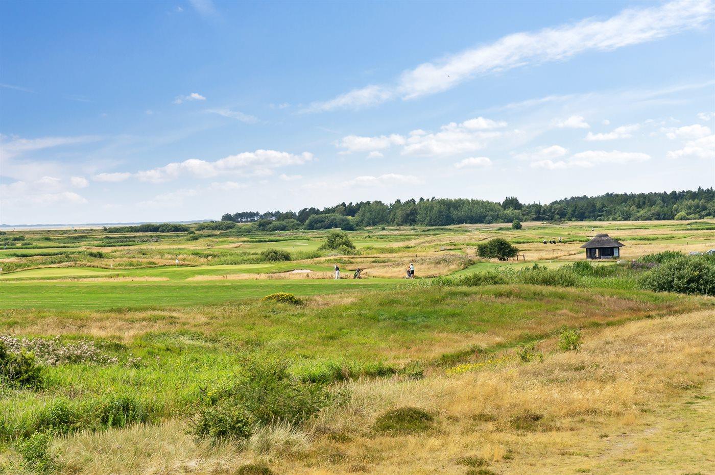 Flot, arkitekttegnet feriebolig på 97 m2, i 2 etager med havudsigt. Boligen er opført i blødstrøgne, rødbrune teglsten, kraftigt stråtag og gedigne materialer. Til boligen hører 2 terrasser, en mod nord og en mod syd, med elegante havemøbler. I stueetagen finder I den store og lyse spise-/opholdsstue, som danner midtpunktet i huset. Her kan I sidde og lytte til musikken fra det flotte B&O stereoanlæg eller til den hyggelige knitren fra brændeovnen. Det flotte danske designkøkken fra Unoform, som ligeledes ligger i stueplan, er gennemført til mindste detalje og udstyret med opvaskemaskine, varmluftovn i rustfrit stål samt komfur med keramiske kogeplader. I forbindelse med køkkenet er der bar med 2 barstole. En trappe fører op i den åbne udsigtsstue med stort vinduesparti, moderne designerlædermøbler samt fladskærms-TV tilsluttet fællesantenne - her kan I sidde og nyde en øl eller et glas vin, mens dagen langsomt går på hæld. Fra stuen er der desuden adgang til en stor altan, hvorfra I kan nyde udsigten. De 2 lyse soveværelser, begge med dobbeltseng, ligger i hver sin ende af ferieboligen. I hvert soveværelse findes skab med spejlskydelåger. Desuden mulighed for 2 ekstra opredninger på dobbelt sovesofa i stuen på 1. sal. Elegant badeværelse med flotte klinker, stor brusekabine med regnvandsbruser samt kombineret vaskemaskine/tørretumbler. Gratis, trådløs internetforbindelse (egen computer medbringes). Børnene er der selvfølgelig også tænkt på idet der findes boldplads, legeplads, hoppepuder, multibane og legerum. Alle nævnte udendørsaktiviteter for børn er inkluderet i lejeprisen og gratis for alle husets beboere. Af yderligere faciliteter byder resortet på 18-huller links golfbane og 9-huller Pay & Play, dejlig restaurant samt bar, bowling, billard, udendørs fitness, cykeludlejning samt konferencelokaler, (mod betaling - tidsbestilling nødvendigt). Resortets to golfbaner samt faciliteterne i wellness-området og swimmingpoolen kan benyttes mod betaling. Resortets 2.600 m2 store wellness-afdeling, hvortil der også hører udendørs atriumhave, byder på luksus pur til krop, sjæl og sanser som f.eks. varme terapibade, fodmassagekanaler, spabade, saunaer, dampbade, saltvandsbassin, afslapningsområde med hvilestole og behandlingsrum med et udbud af spa-behandlinger samt fuldudstyret fitnesscenter og aktivitetslokaler i kælderen (mod betaling - tidsbestilling nødvendigt).