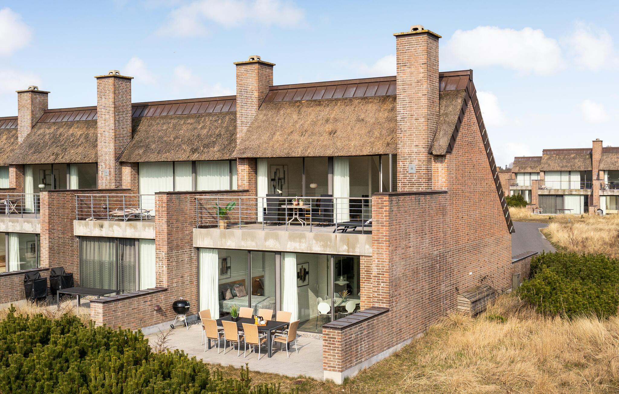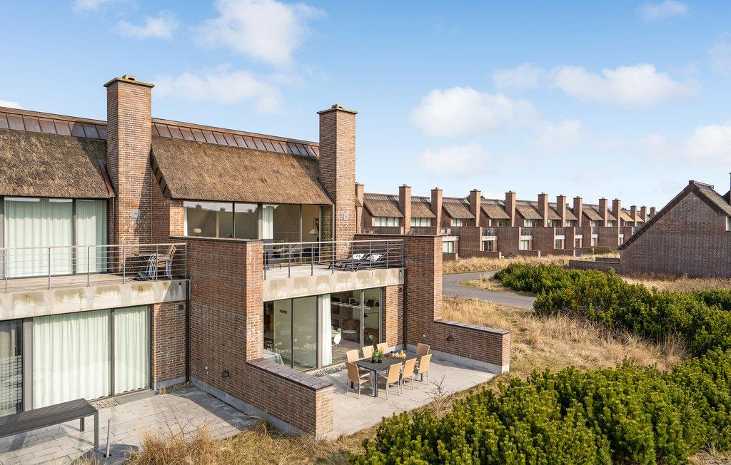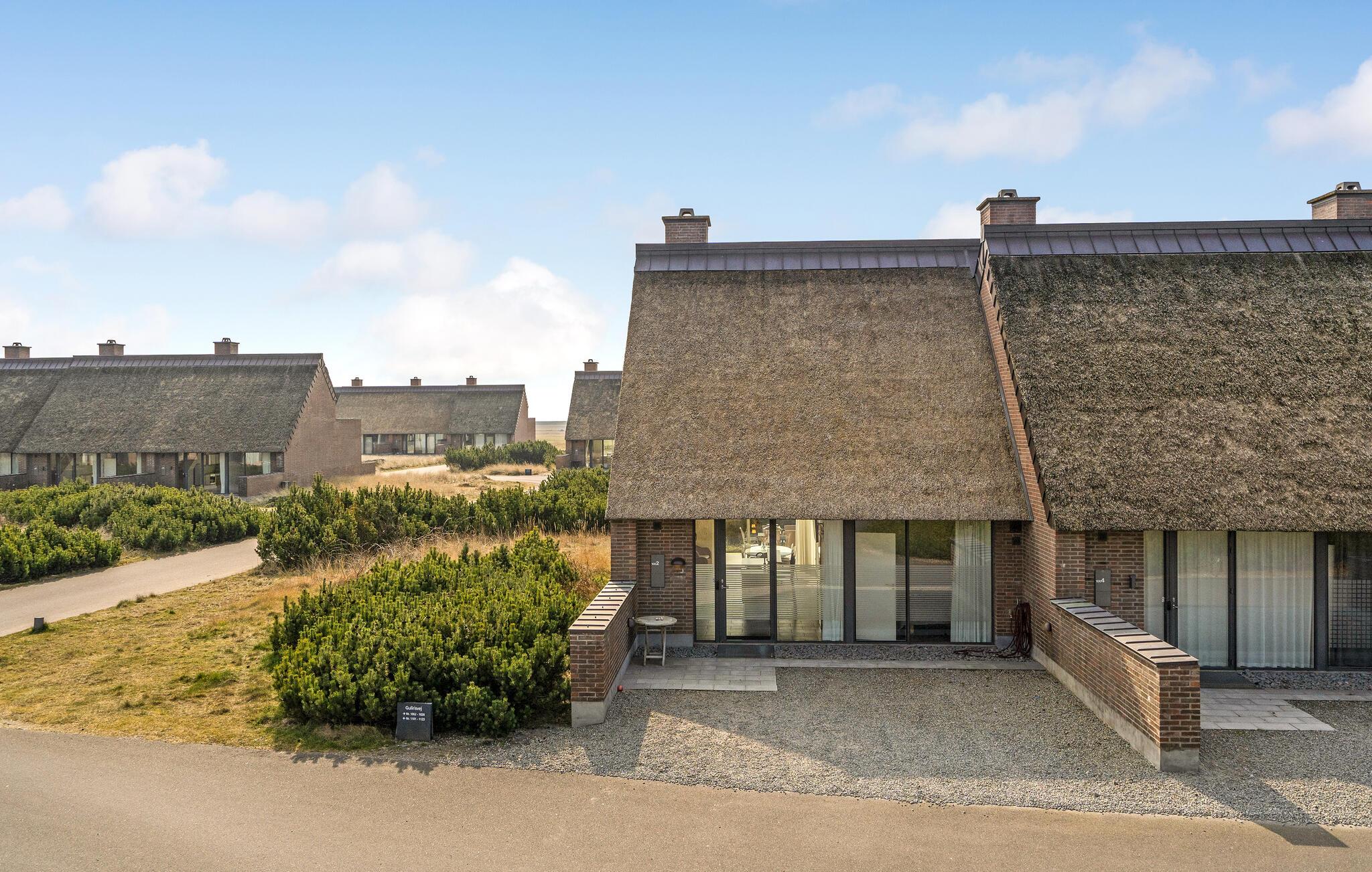 Flot, stråtækt feriehus i to etager med fornem indretning, centralt beliggende i Havneby.