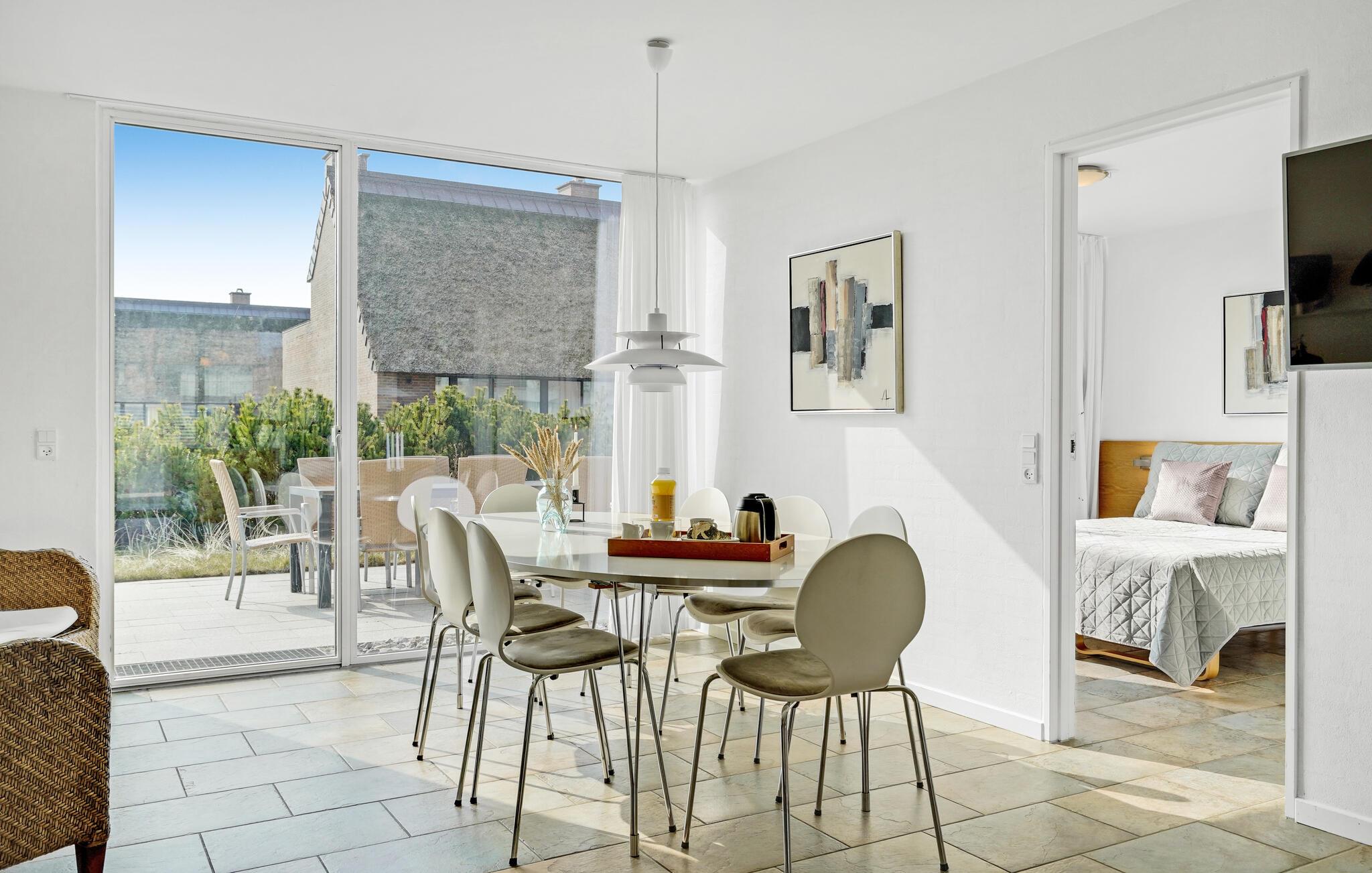 Huset ligger i et roligt område med masser af legepladser. Der er en syd- og en nordvendt terrasse, der begge er udstyret med komfortable havemøbler. Det kombinerede køkkenalrum i stueetagen er husets naturlige centrum og er bl.a. udstyret med en brændeovn. Nyd timerne sammen i solen, mens I læner jer tilbage i de tilgængelige liggestole på altanen. Sammen kan I spise morgenmad udendørs og slutte dagen af med en hyggelig grillaften.