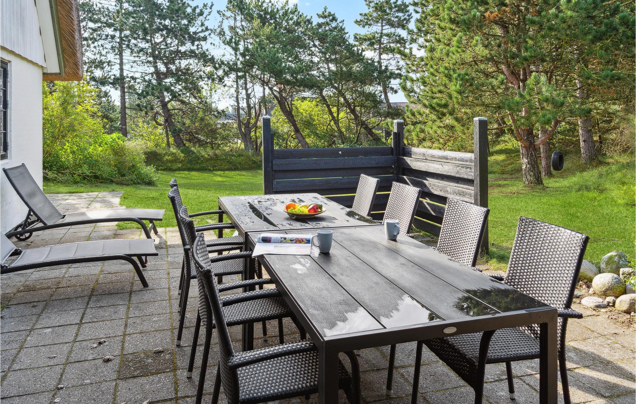 Rummeligt stråtækt feriehus på Rømø med hyggelig atmosfære og stor have tæt på strand og natur.