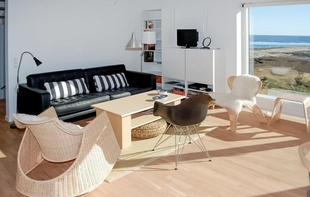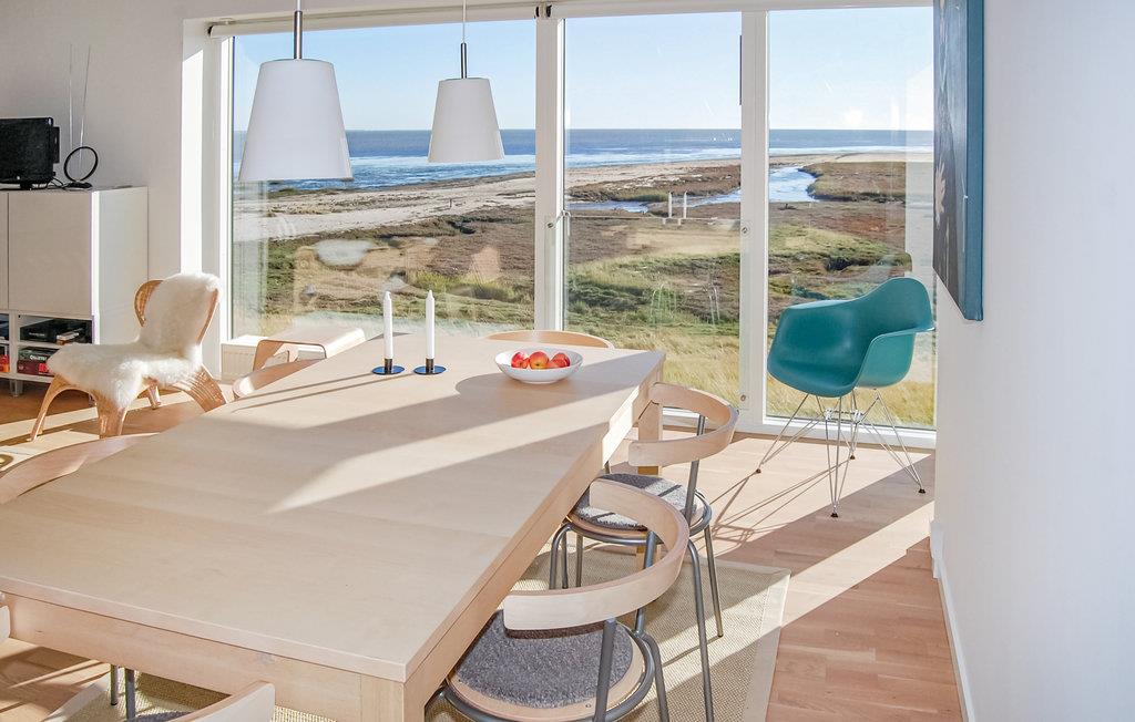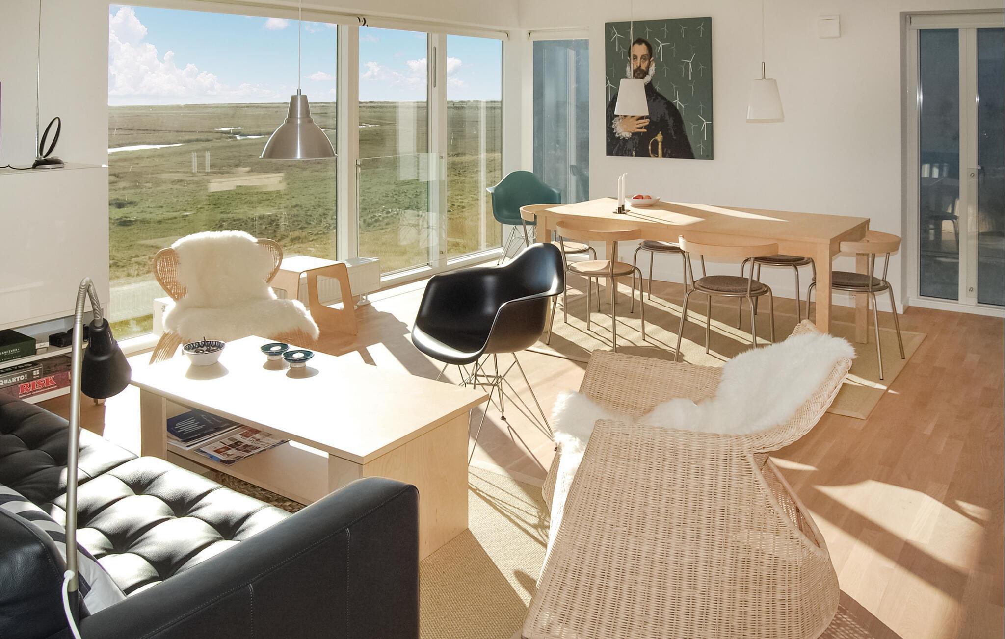 Eksklusiv feriebolig med overvældende panoramaudsigt over vadehavet fra det meste af huset. Vadehavet er beliggende lige uden for huset - det er et af Europas vigtigste vådområder og et af Danmarks væsentligste naturreservater - med strand, eng, klitter og med et utroligt rigt fugleliv, og i det fjerne ses øen Sild. Få hundrede meter til den ene side kommer man til Havnebys idylliske havn med små fiskeforretninger og med jævnlig færgeafgang til Sild, og få hundrede meter til den anden side er der golfbaner, tennisbaner og restauranter. Desuden går der i forlængelse af promenaden foran huset naturstier i marsk- og digelandskabet, og 2 km derfra finder man Sønderstrand, en af Europas bredeste strande med masser af friluftsaktiviteter. Huset er bygget i 2009 som del af et prisvindende arkitektprojekt, Sort Sol, som udtryk for moderne natur- og miljøbevidst arkitektur. At bebo denne usædvanlige og funktionelle bolig er i sig selv en spændende oplevelse. Den er bygget af 1. klasses materialer, og møbleringen harmonerer med arkitekturen, lys, let, uhøjtidelig, funktionel og skandinavisk design. Ferieboligen indeholder bl.a. stort køkken-stue-alrum med alt i udstyr deriblandt fjernstyrede rullegardiner. Desuden er der i alt fire soveværelser i huset, fordelt med to værelser samt et badeværelse, på hver etage. I huset findes en transportabel fladskærm med DVD som kan tilsluttes i alle værelser efter behov. Endelig er der en stor solterrasse med en storslået udsigt over landskabet og med udekøkken og spiseplads. Huset er perfekt til to familier, til ro og afstresning, til arbejdsro, til udflugter og oplevelsesture. For golfspillere ligger en af landets bedste 18-hullers linksbaner nogle hundrede meter derfra og på Sønderstrand dyrkes der kite-surfing, strandsejling, drageflyvning med meget mere. Endelig er der talrige muligheder for at lære Rømøs særlige natur og kultur nærmere at kende via diverse udflugter, eller man kan tage en tur med Rømø-Sild-færgen et par hundrede meter fra huset og besøge øen Sild.