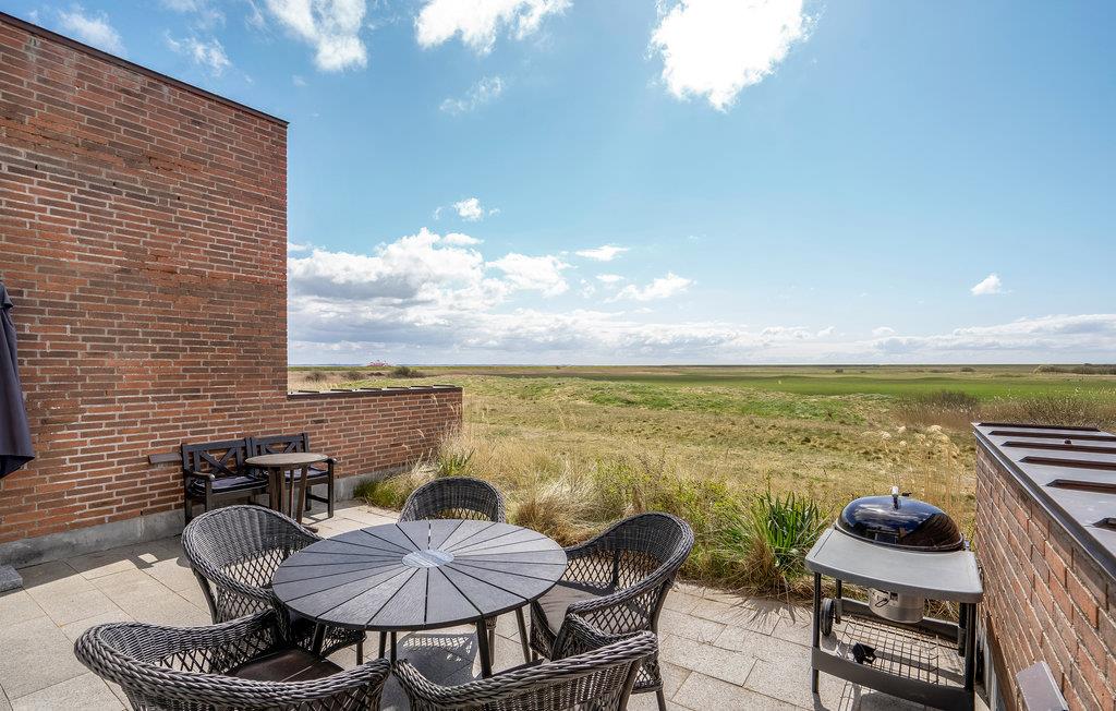 Flot to-etagers sommerhus med panoramaudsigt over Vadehavet ved Havneby, tæt på strand, golf og wellness.
