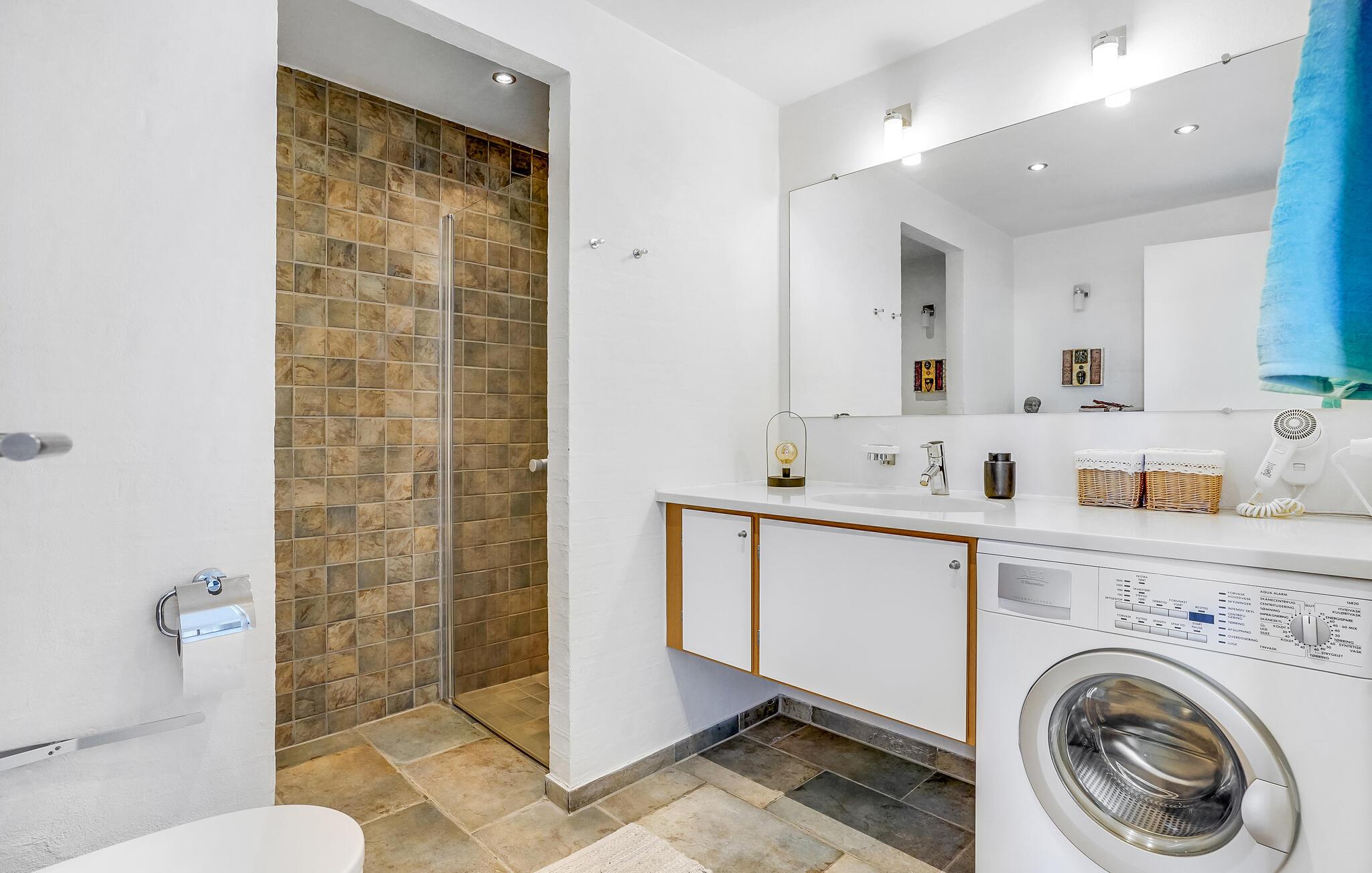 Huset ligger i et roligt område, hvor der er lagt vægt på at adskille legepladser og unødig trafik fra beboelsen. Til boligen hører to terrasser, en mod syd og en mod nord, terrasserne og altanen er møbleret med kvalitetsmøbler.