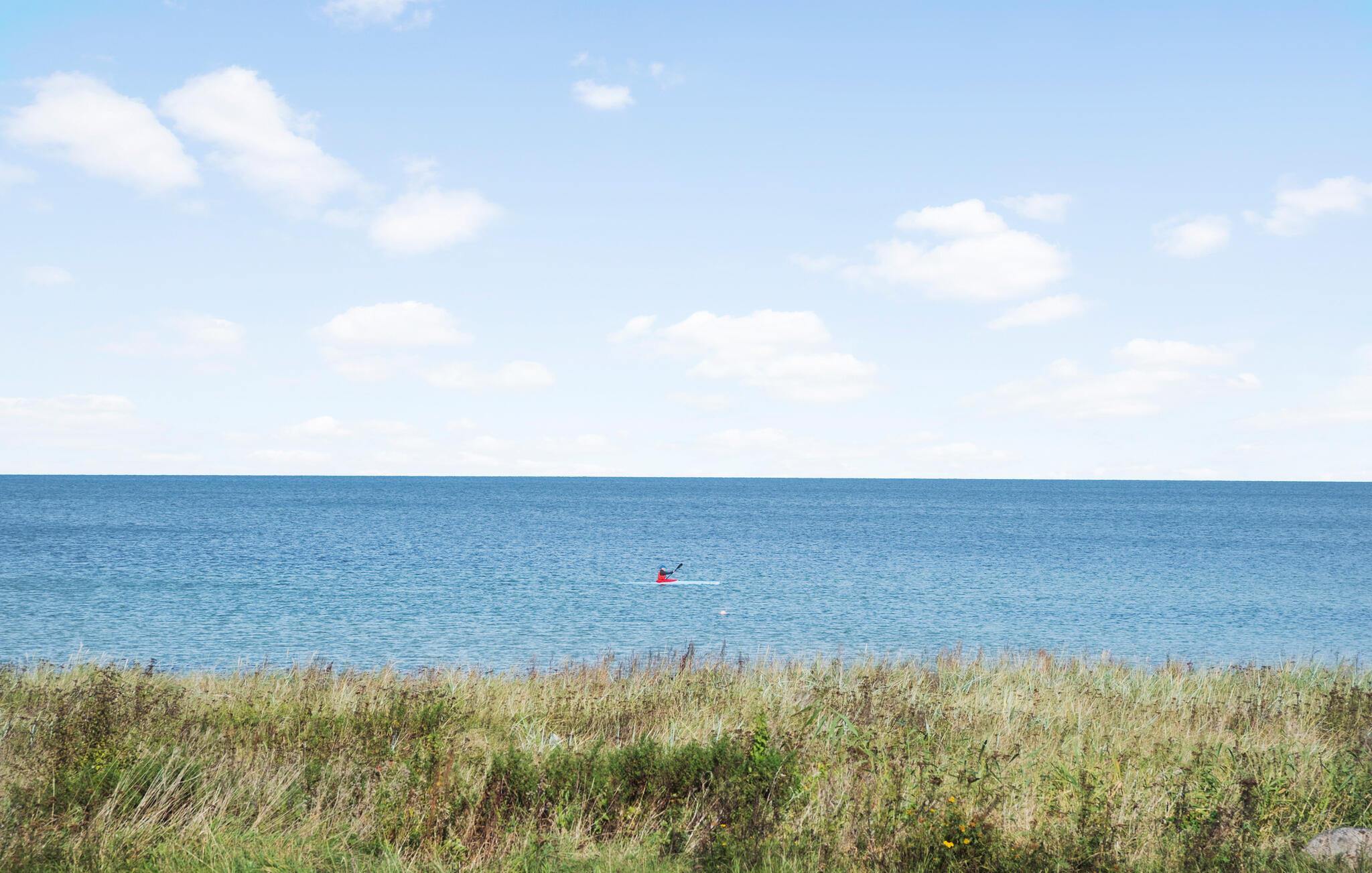Nyd udsigten til solnedgangen over øen Nekselø fra sommerhuset.