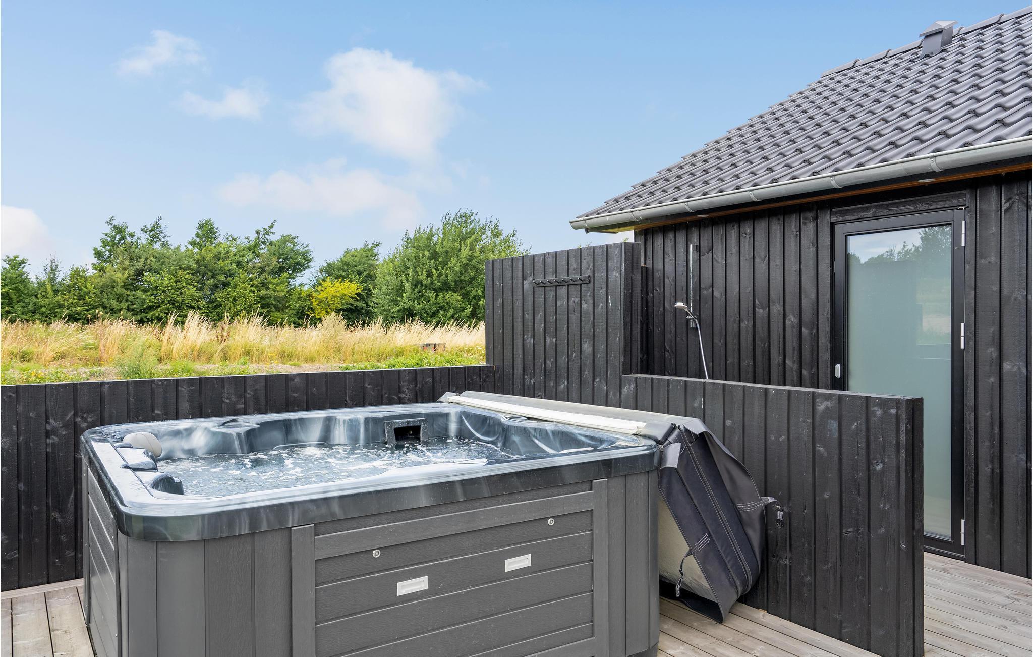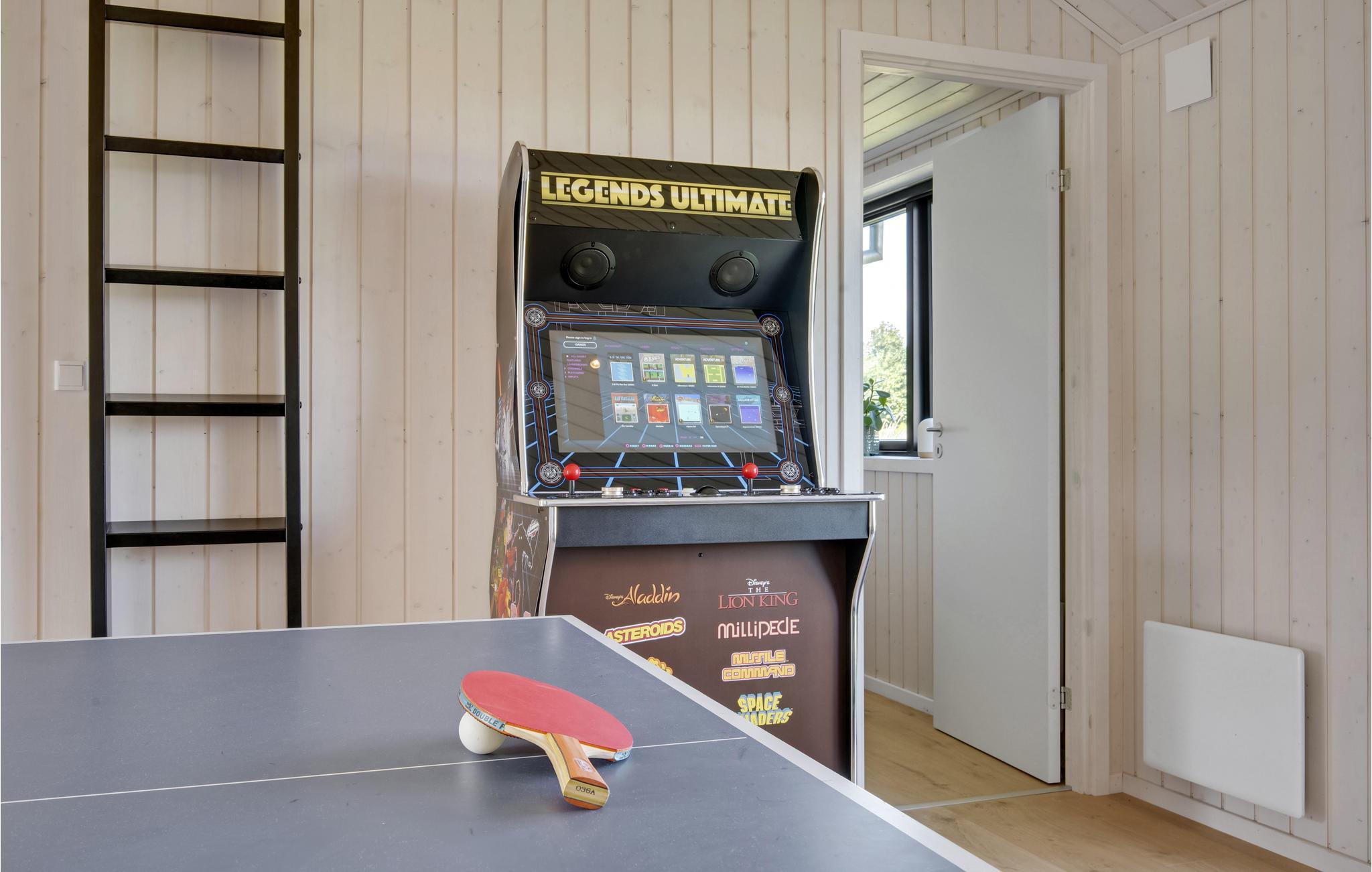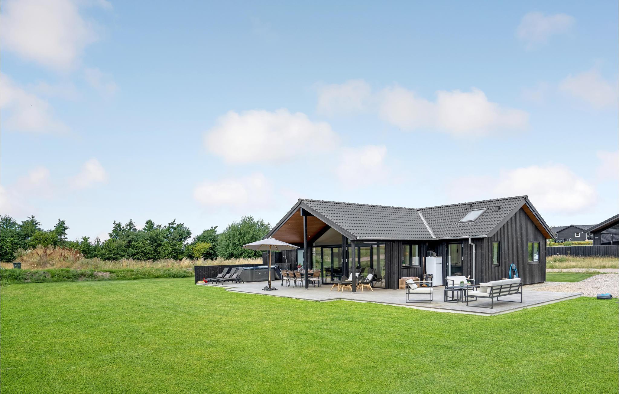 Elegant sommerhus ved Havnsø Strand med moderne design, spa og aktivitetsrum i fredelige omgivelser.