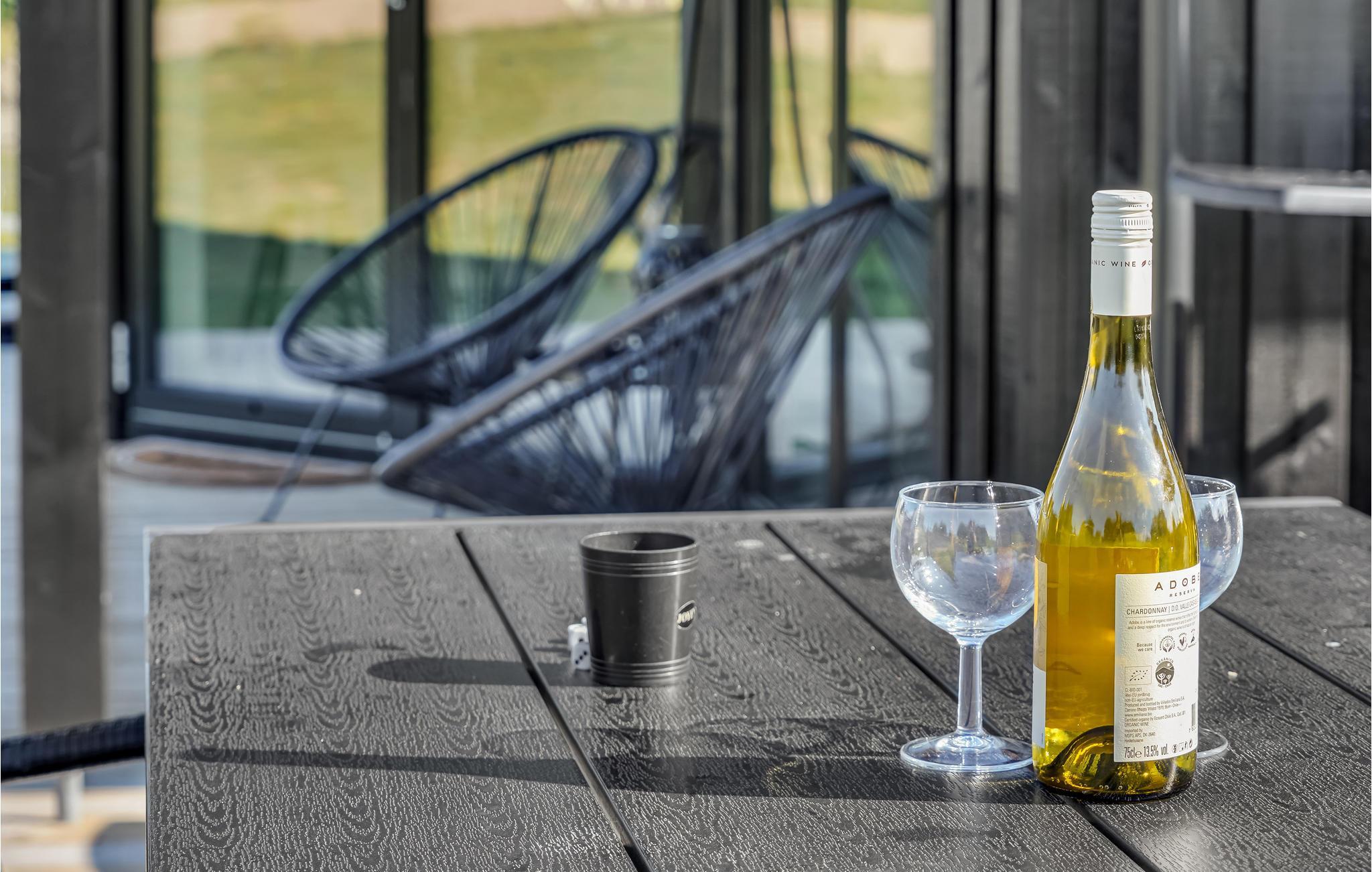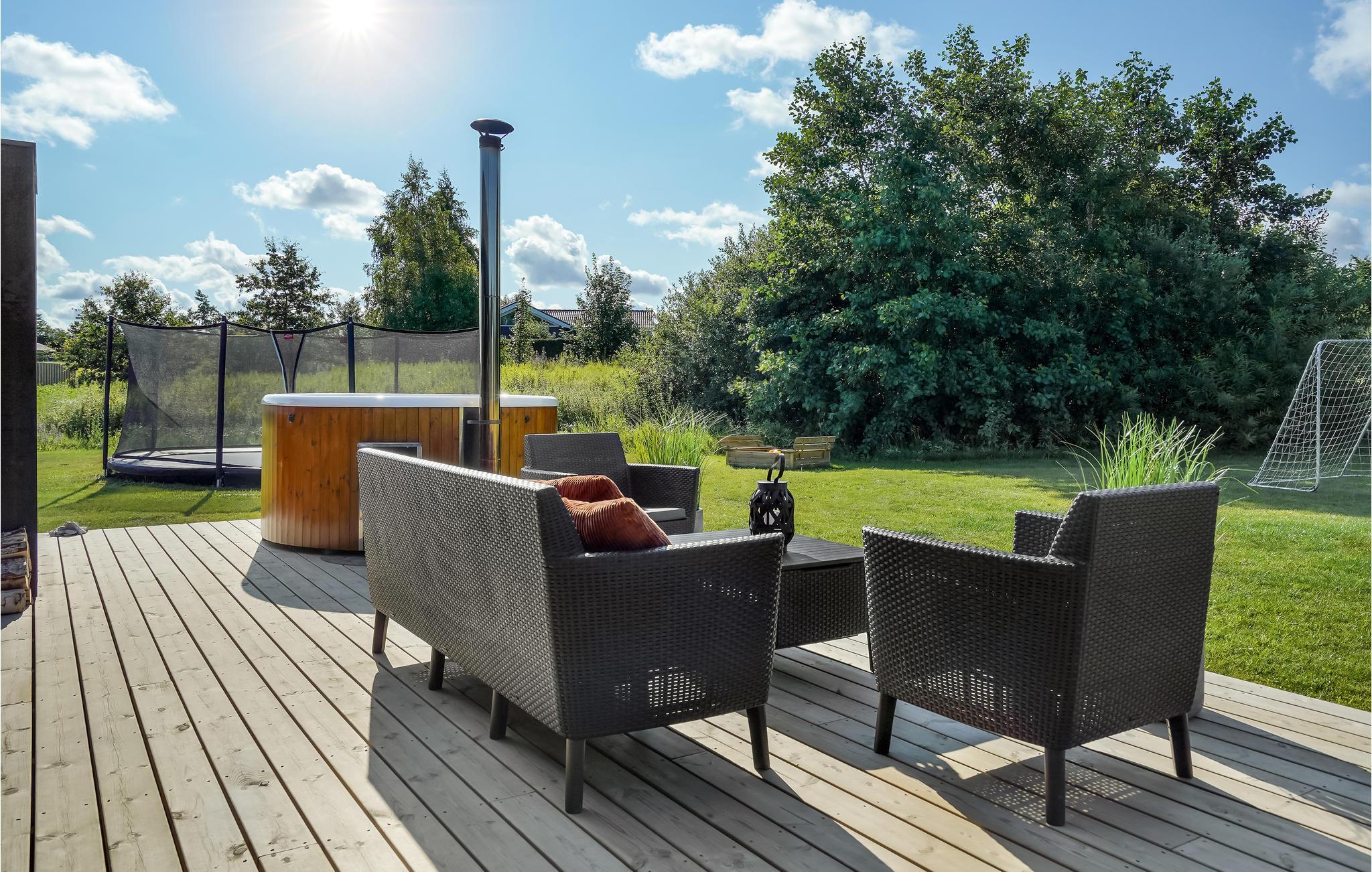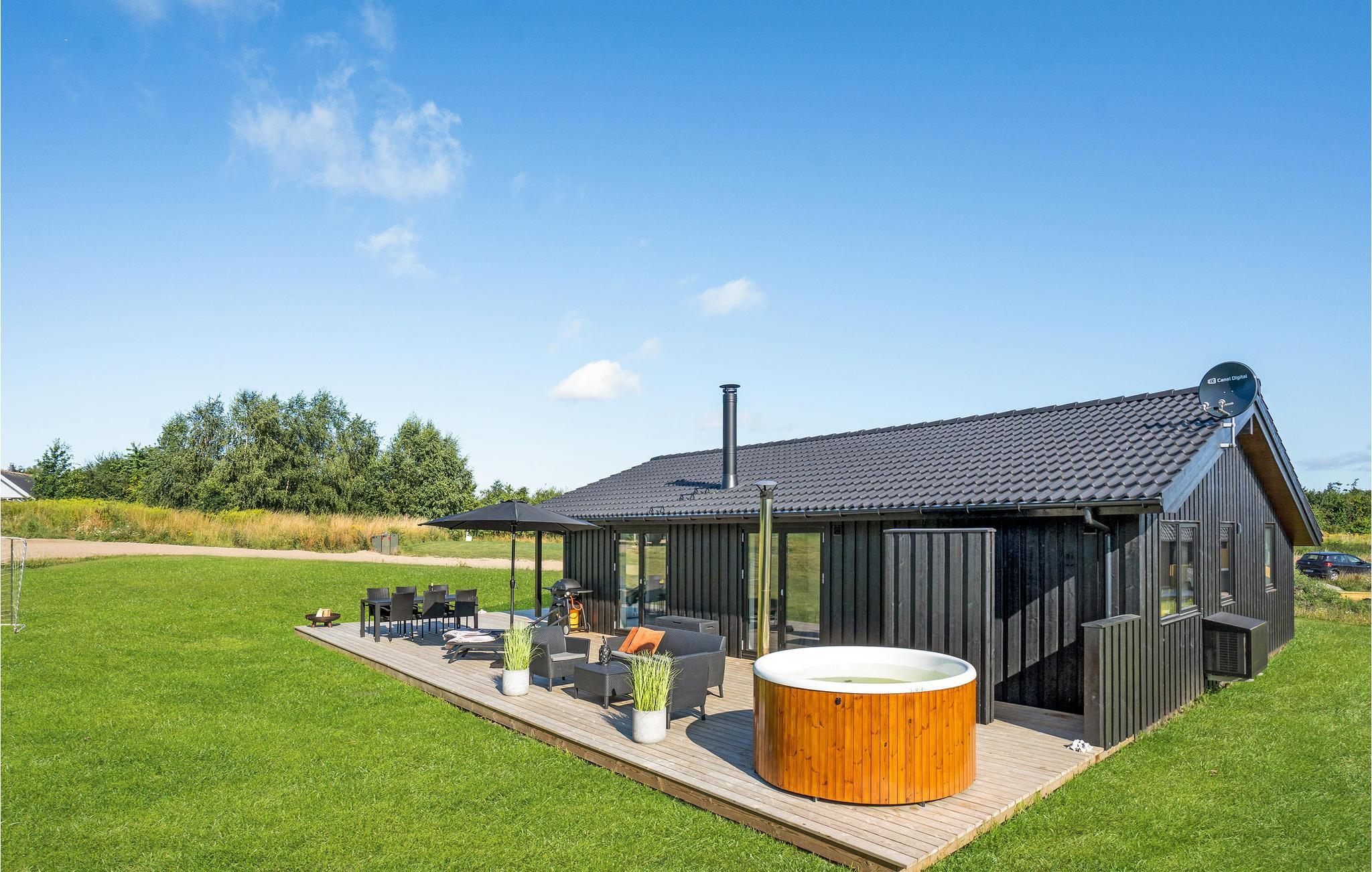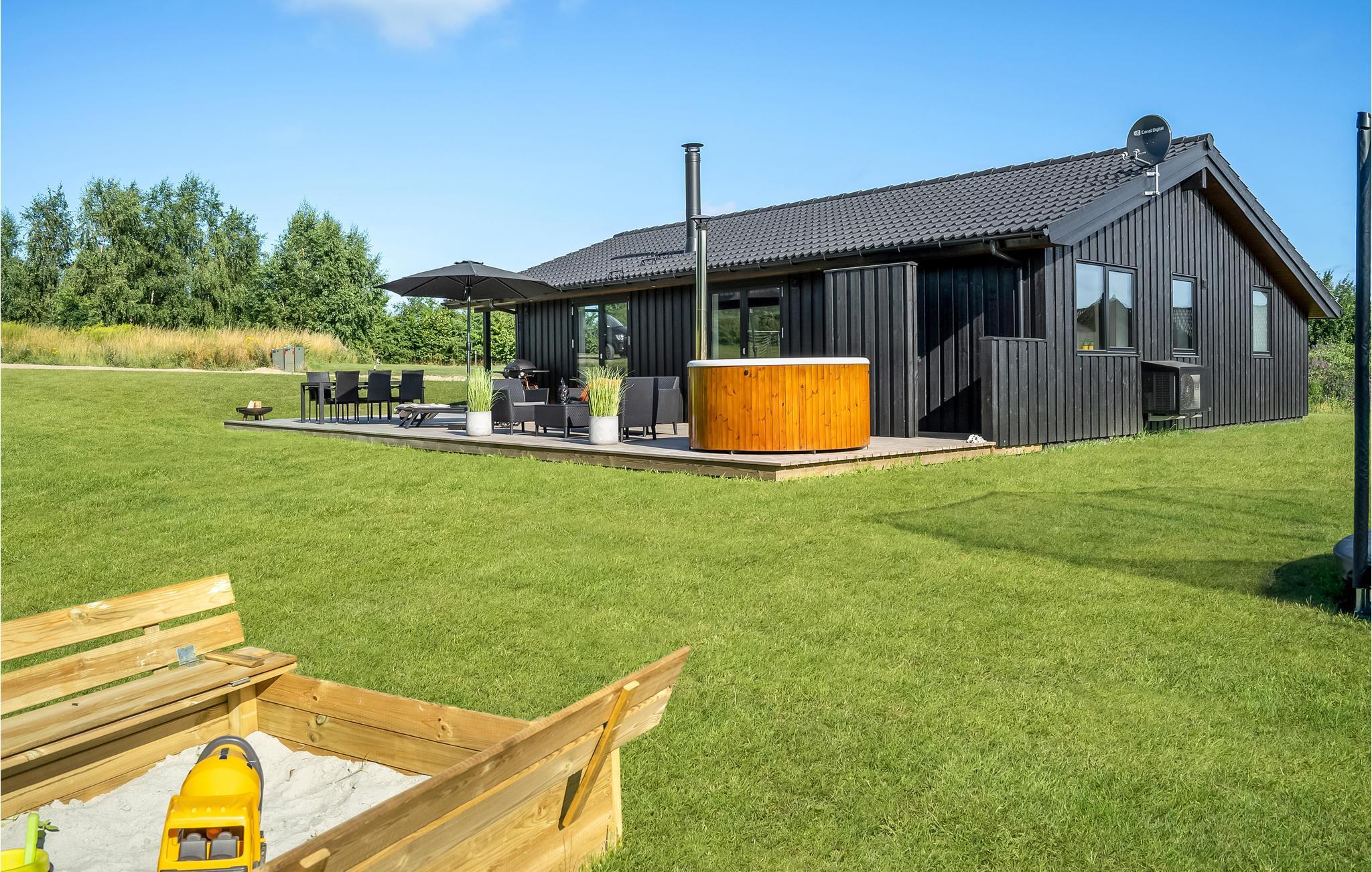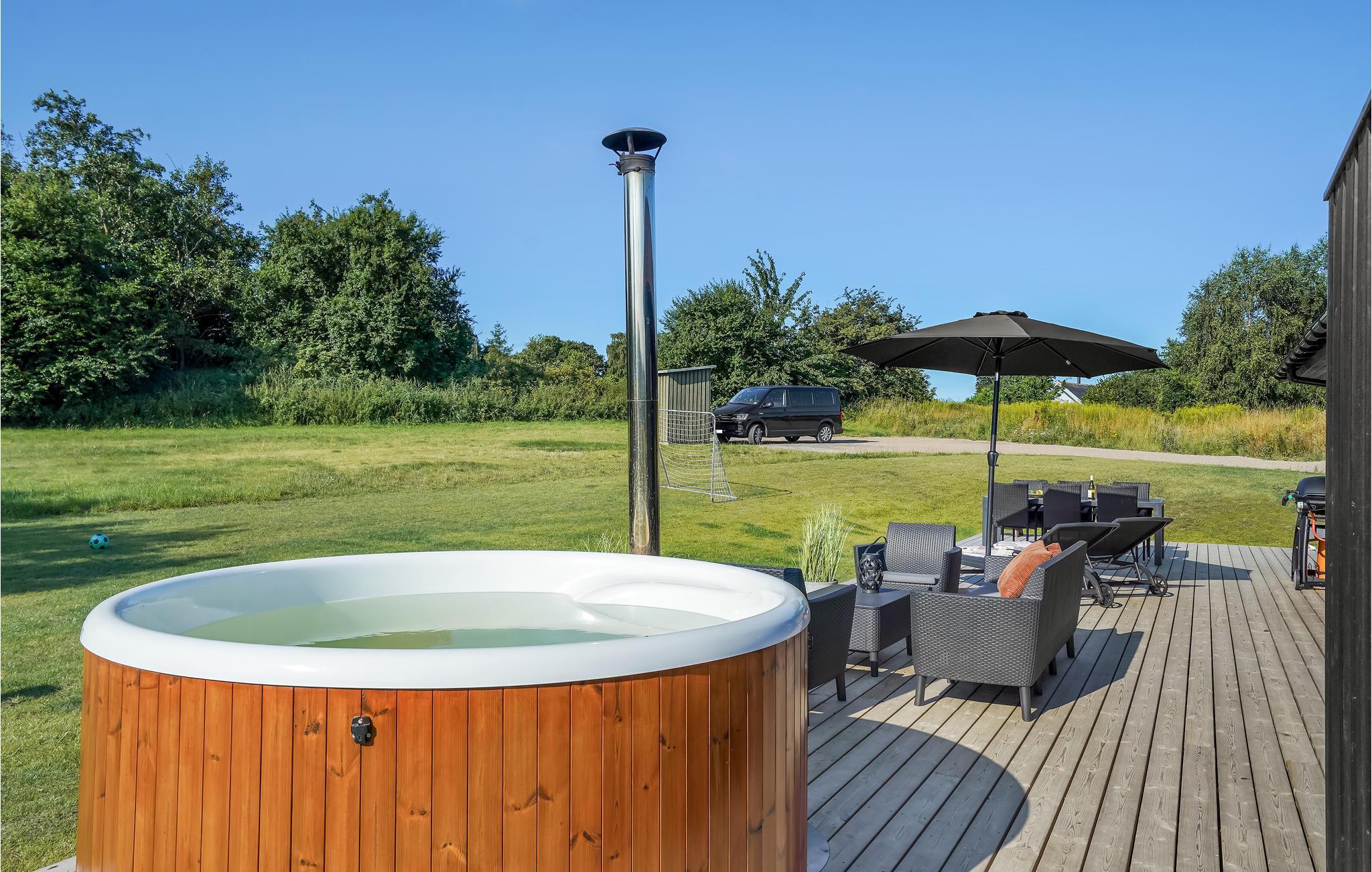 Luksuriøst feriehus med vildmarksbad, spa og tæt på Havnsø Strand, perfekt til afslapning og naturoplevelser.