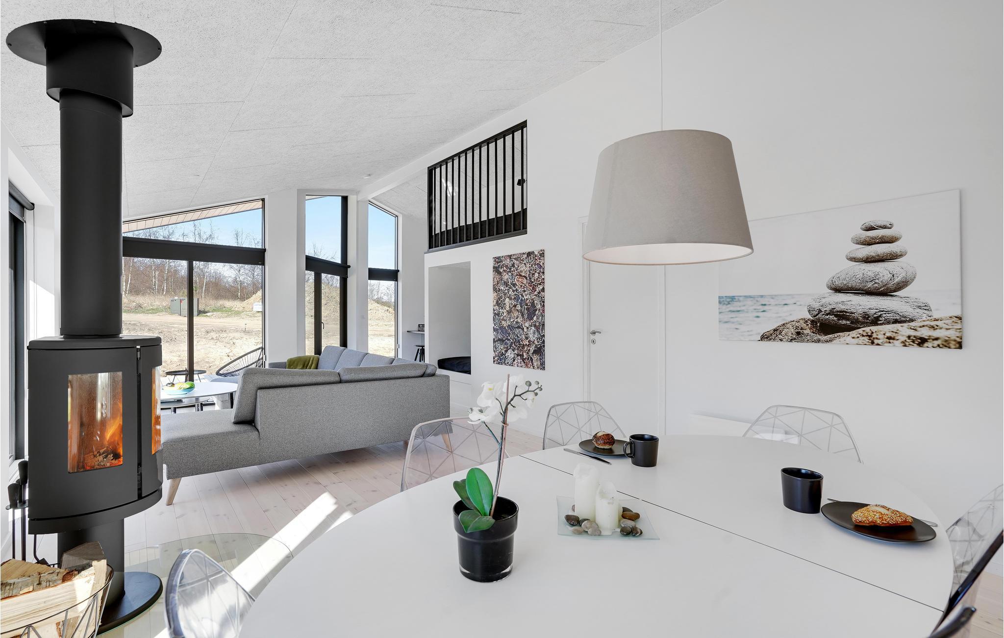 Huset indeholder 3 soveværelser samt en alkove i stuen. Endvidere badeværelse med 2 personers spa samt brus, endvidere gæstebadeværelse med brusefaciliteter. Fra stuen er der udgang til både en lækker åben som overdækket terrasse. Her er højt til himlen og ro til sjælen. Stik til opladning af elbil forefindes. Huset rummer naturligvis alle bekvemmeligheder som opvaskemaskine, vaskemaskine samt mikroovn.