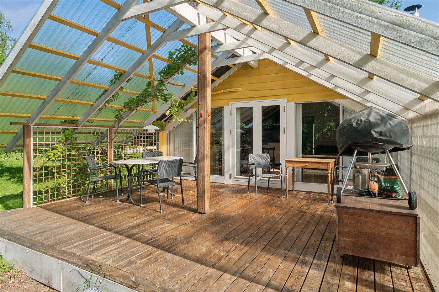 Køkkenet er i åben forbindelse med spiseplads og stue, hvorfra der er udgang til et stort overdækket terrasseområde. I huset er der 2 soveværelser med hver 2 sovepladser, og i tillæg hertil er et isoleret anneks fra 2022 med 2 sovepladser, og som opvarmes med elradiator. Badeværelse er med bruseniche og vaskemaskine. I selve huset er der luft-til-luft varmepumpe og brændeovn.