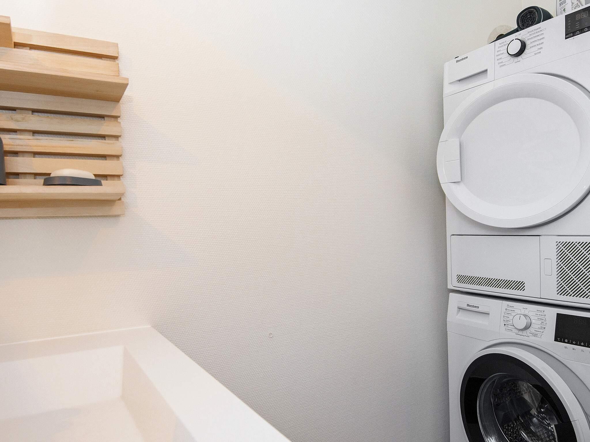Bad/wc: Vaskemask., tørretumbler, wc, håndvask, bruser, gulvvarme