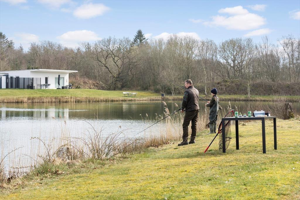 En af sommerhusets absolutte perler er den store terrasse, der ligger lige ud til søen. Her kan I starte dagen med morgenmad i det fri, mens I nyder den fredelige udsigt over vandet. I løbet af dagen kan I tage på eventyr i familieparken, hvor børnene kan boltre sig på hoppeborge, prøve svævebanen eller tage en tur på minigolfbanen. På varme dage er der fri adgang til parkens vandland, hvor I kan tage en forfriskende dukkert. Og hvis I har lyst til at fiske, er I velkommen til at fiske i søen, bemærk det kræver gyldigt fiskebevis.