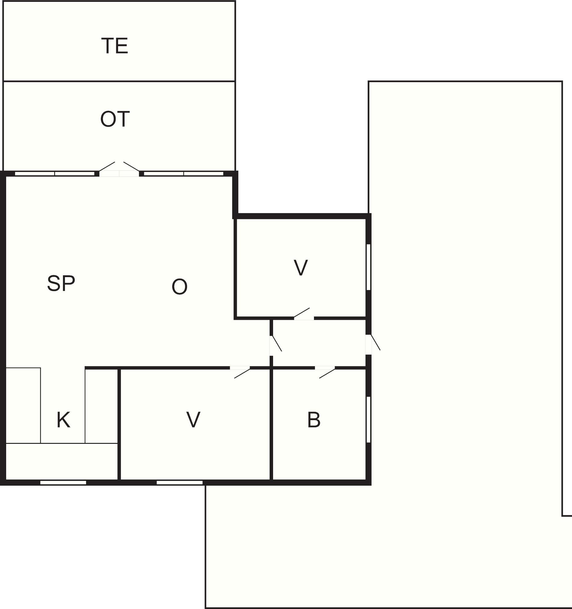2 Soveværelser: (1DS)+(1K+1DO), barneseng