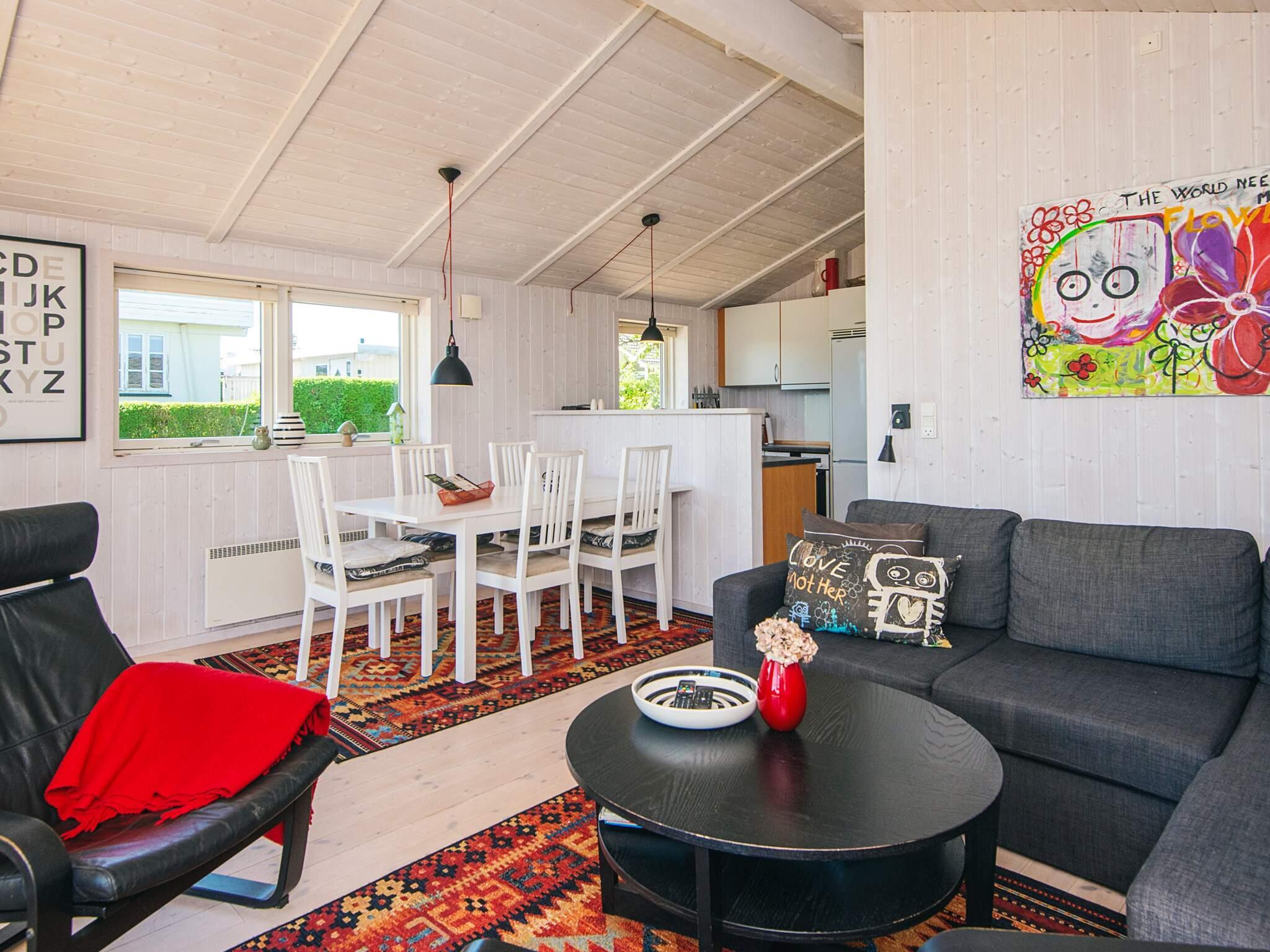 Sommerhusets hjerte er det rummelige køkken/alrum, som indbyder til hyggelige stunder med brætspil ved det store spisebord eller tv-hygge i sofaen. Brændeovnen skaber en hyggelig sommerhusstemning, mens varmepumpen sikrer en økonomisk opvarmning.