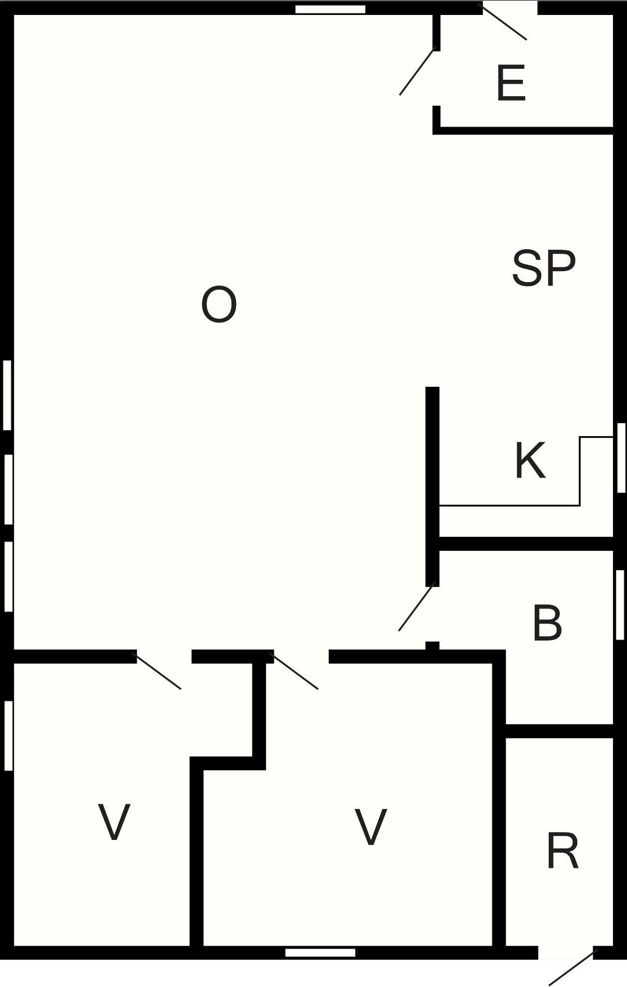 1 Opholdsstue: Brændeovn, radio, cd-afspiller, dvd-afspiller, tv, parabol, høj stol