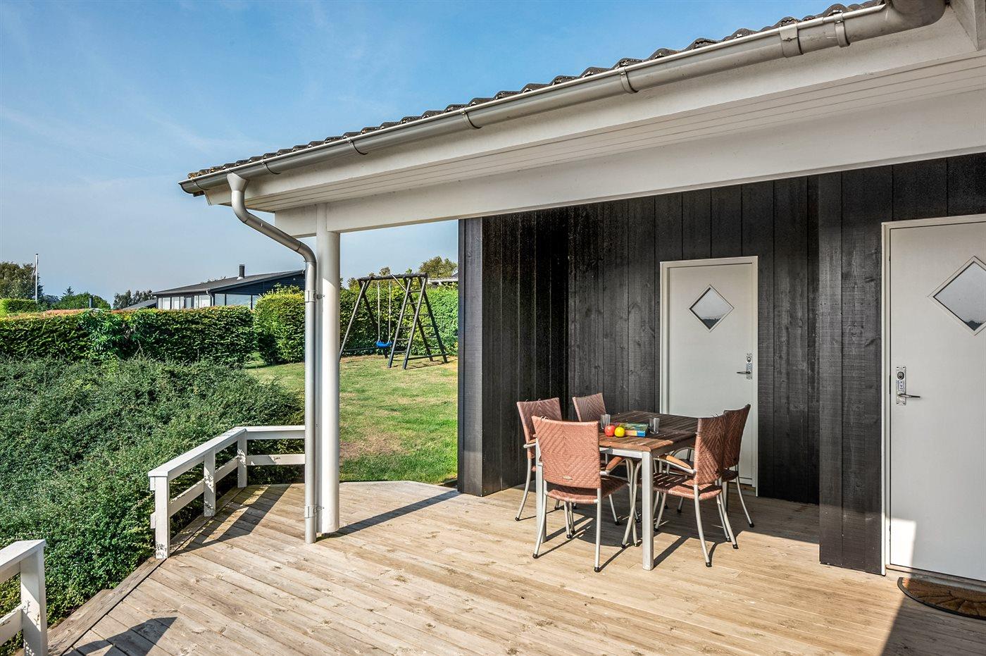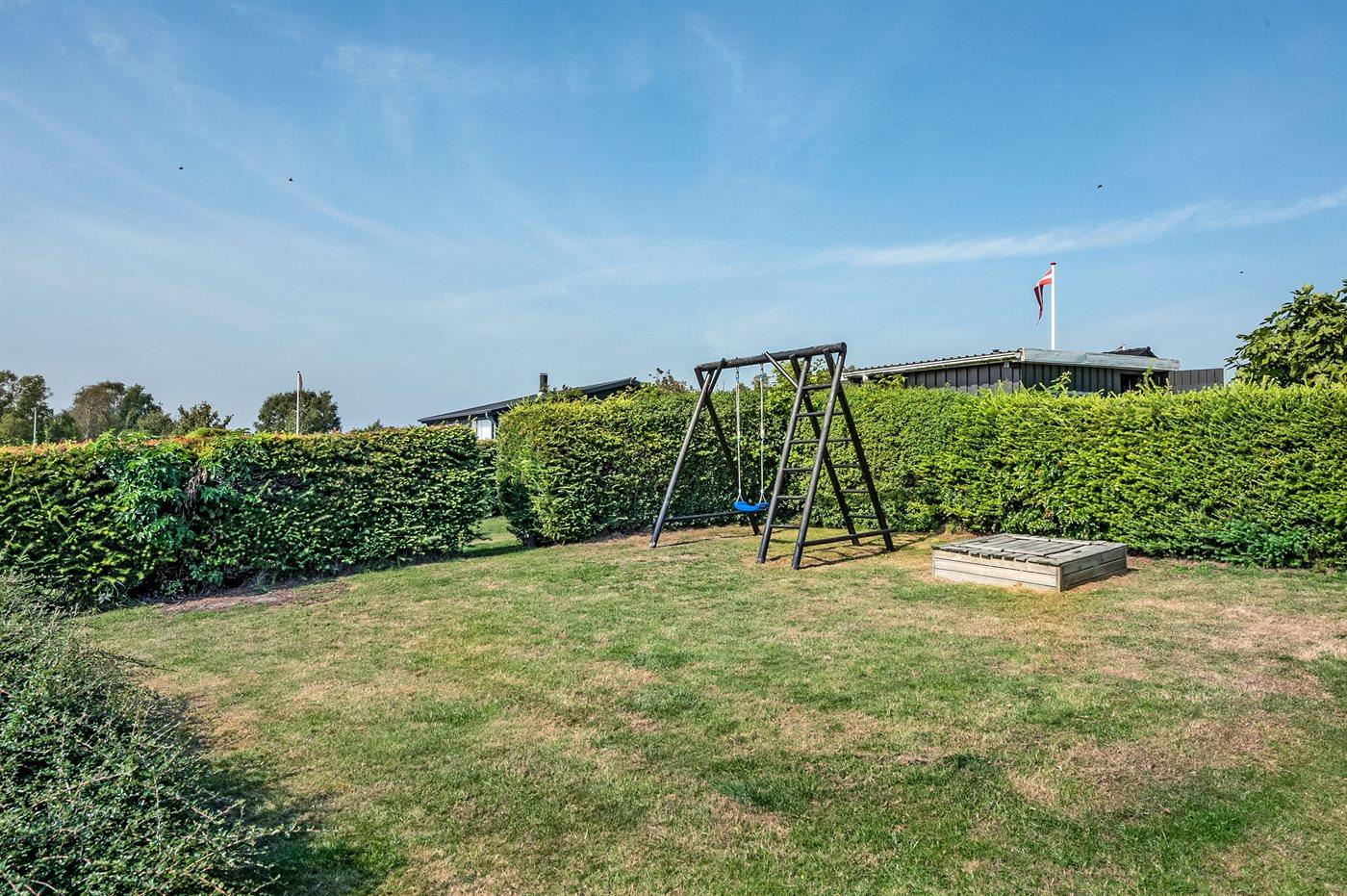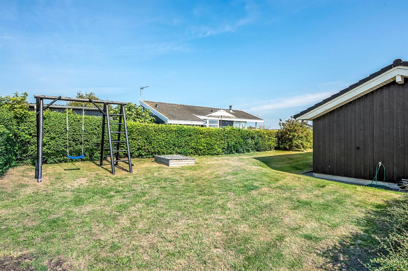 Ferieboligen er beliggende på en 610 m² stor havegrund. Der er 150 m til havet. Nærmeste forretning er beliggende i en afstand af 500 m. Til ferieboligen hører 65 m² terrasseareal. Desuden er der 22 m² overdækket terrasse. Gynge. Sandkasse. Parkering ved ferieboligen.