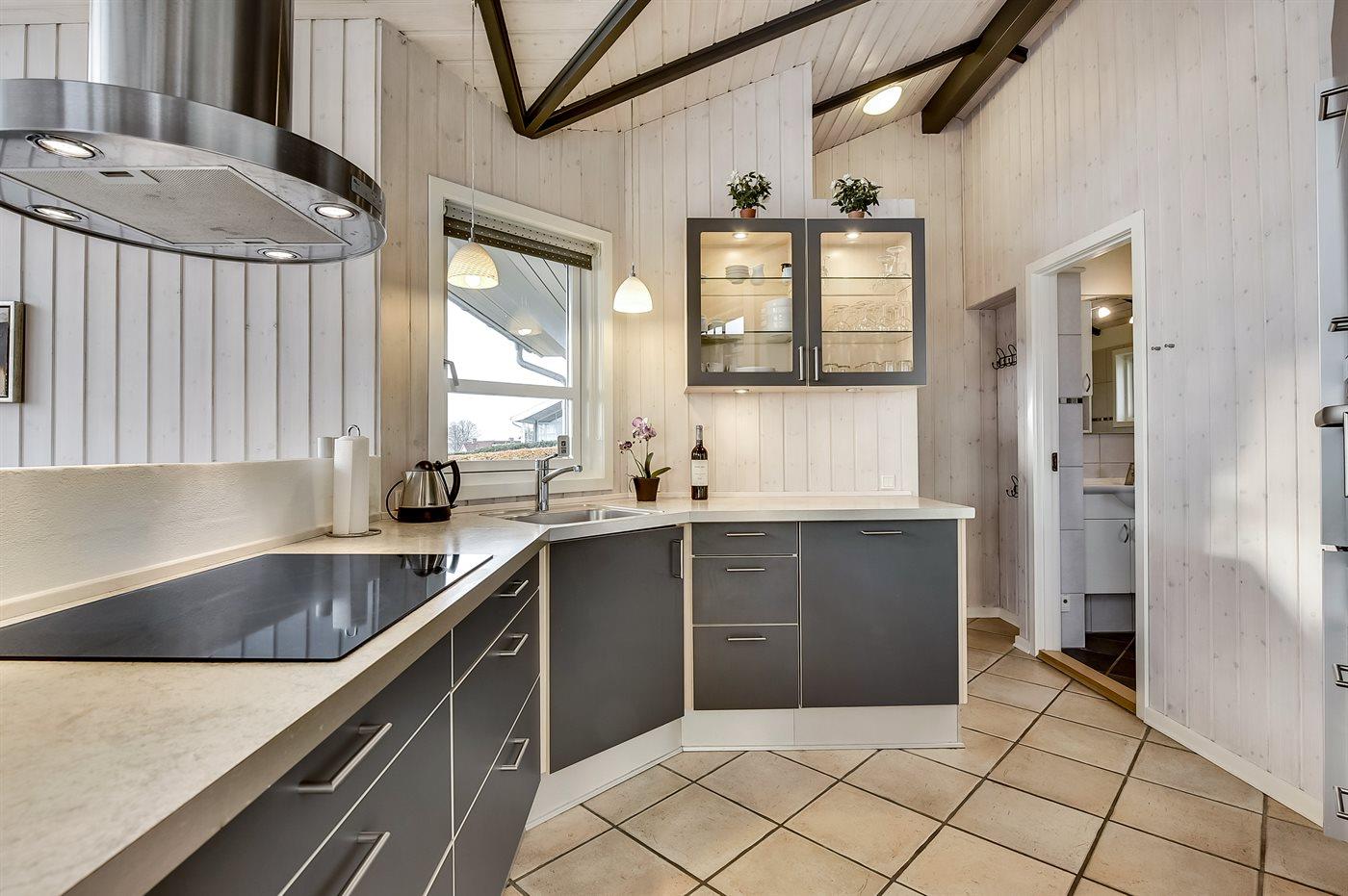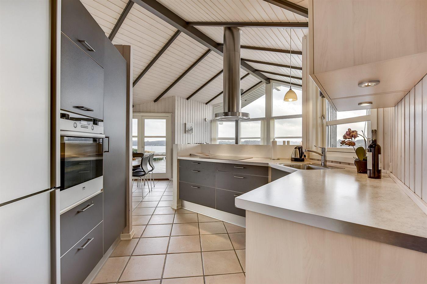 Køkkenet er udstyret med 1 køleskab. Der er 4 keramiske kogeplader, varmluftovn, mikrobølgeovn samt opvaskemaskine.