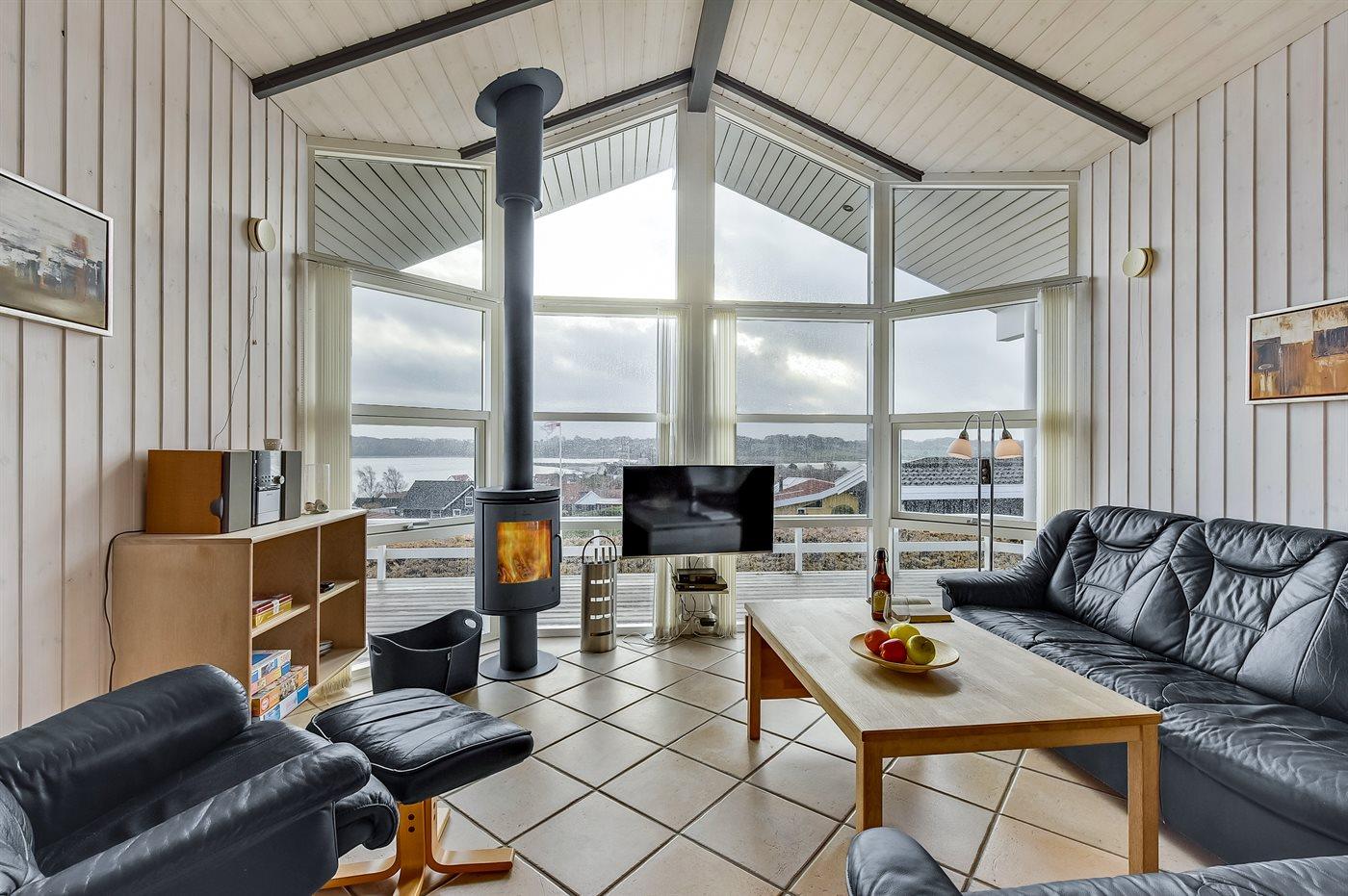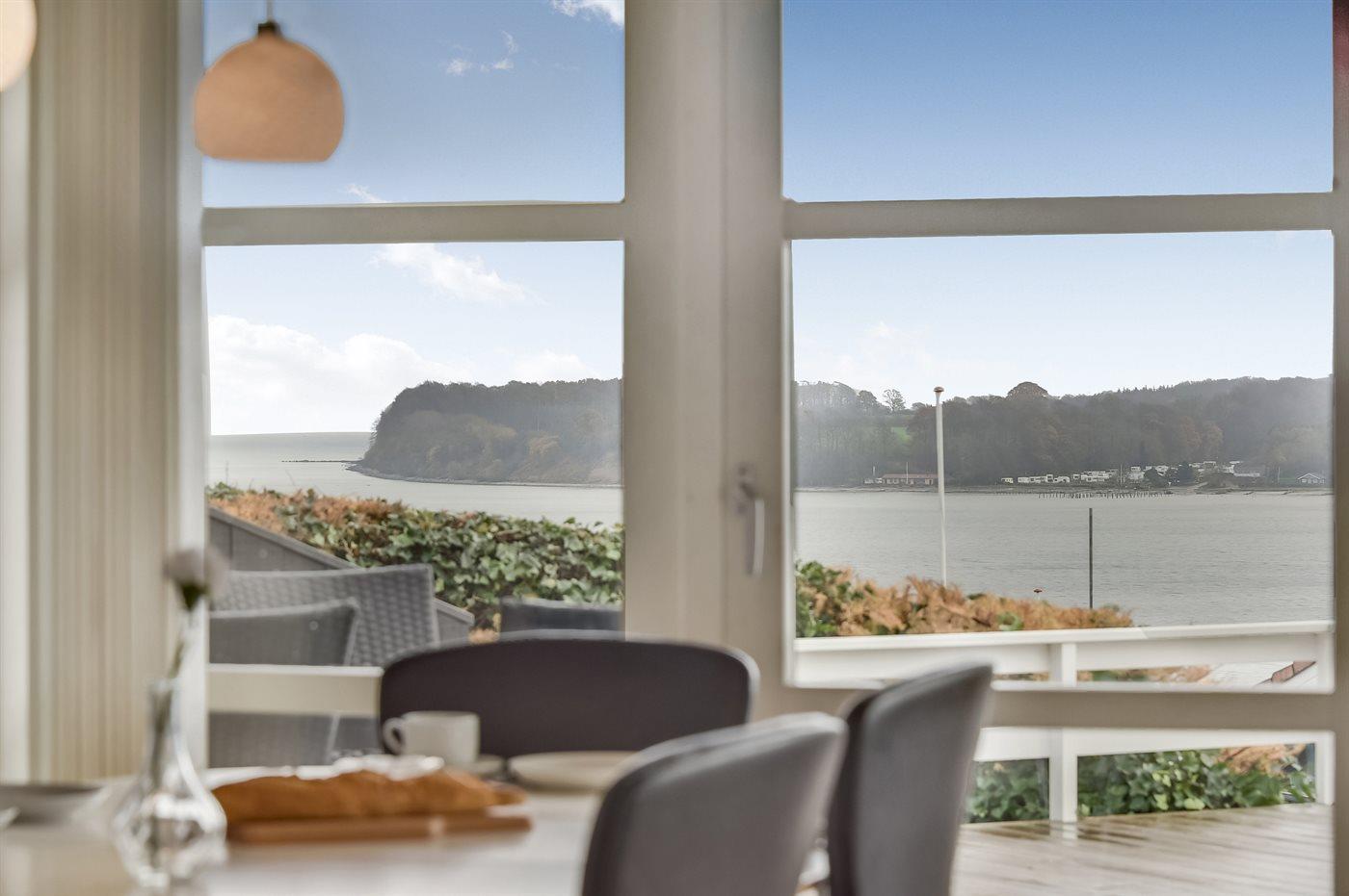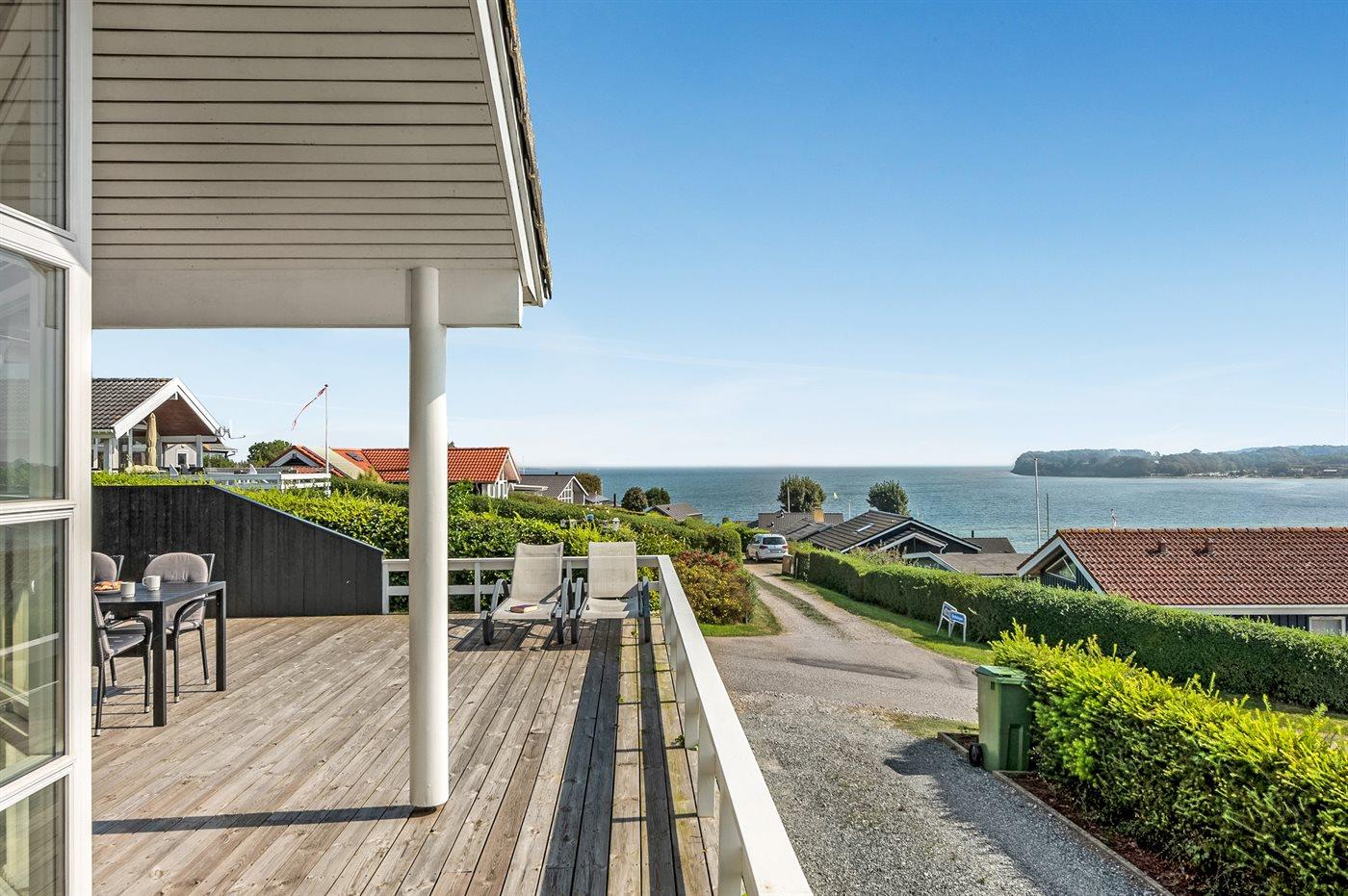 Arkitekttegnet sommerhus i Hejlsminde med panoramaudsigt over Lillebælt og lystbådehavnen.