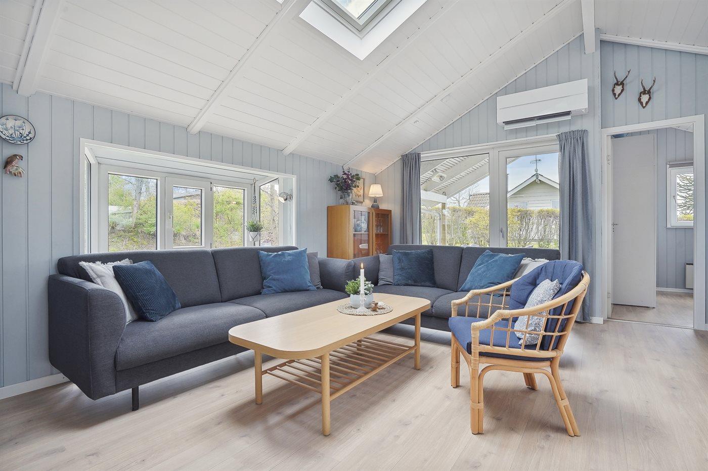 Der er i alt 3 soveværelser. Sovepladserne fordeler sig på: 4 sovepladser i dobbeltsenge. 2 sovepladser i enkeltsenge. Derudover er der 1 stk. barneseng.