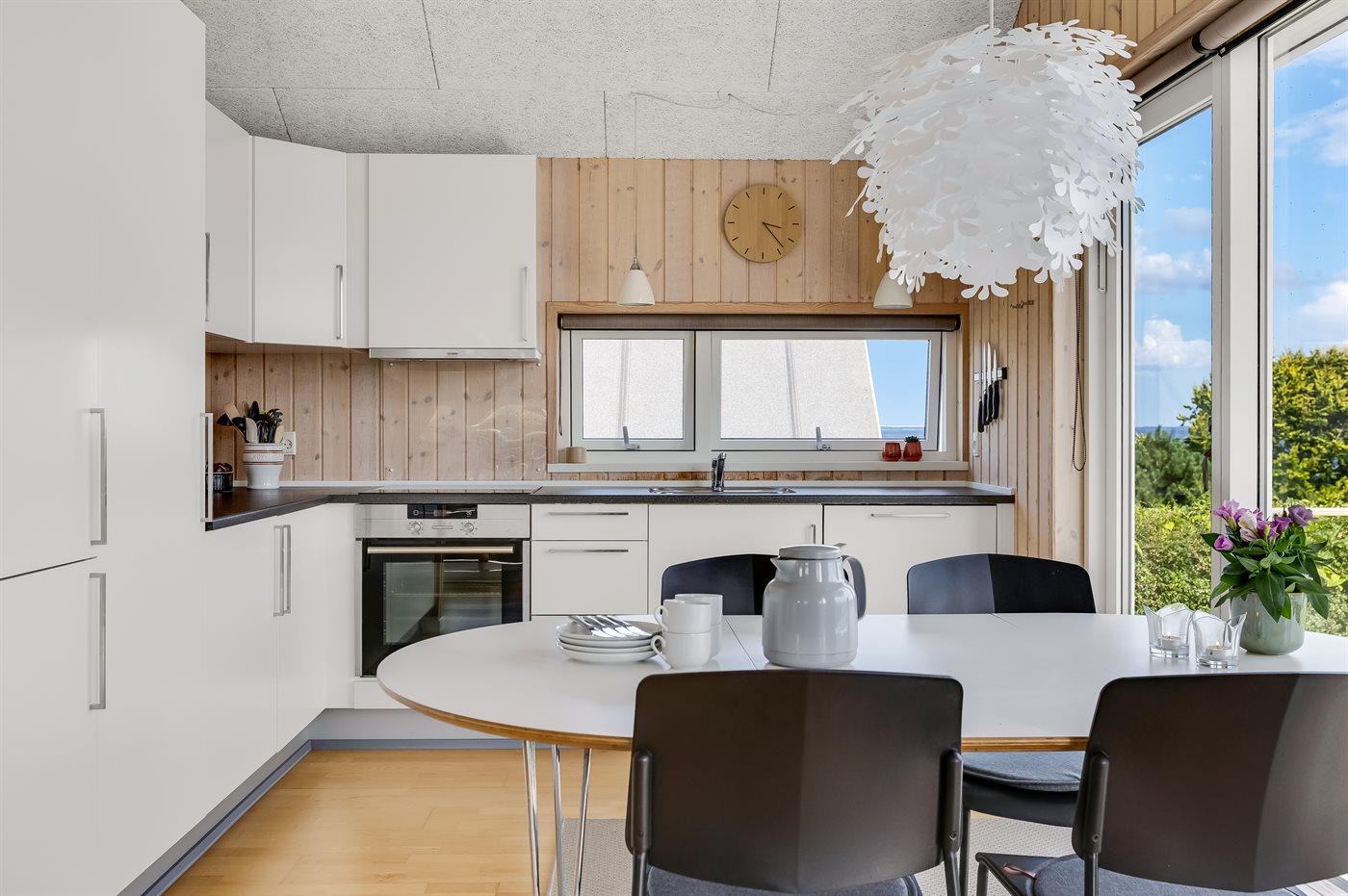 Køkkenet er udstyret med 1 køleskab. Der er 4 keramiske kogeplader, varmluftovn, mikrobølgeovn samt opvaskemaskine.
