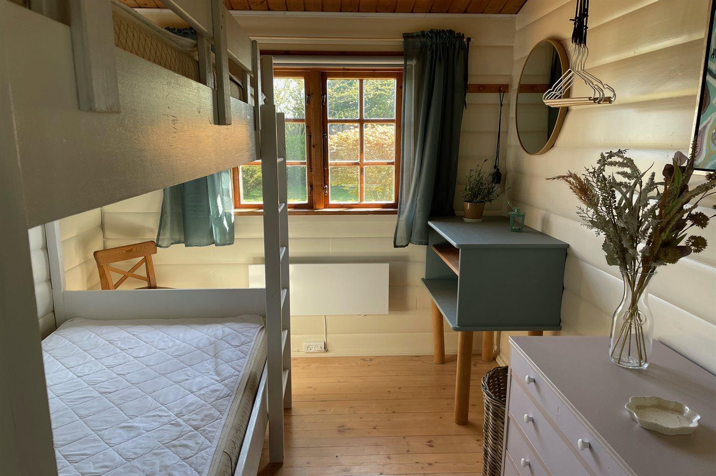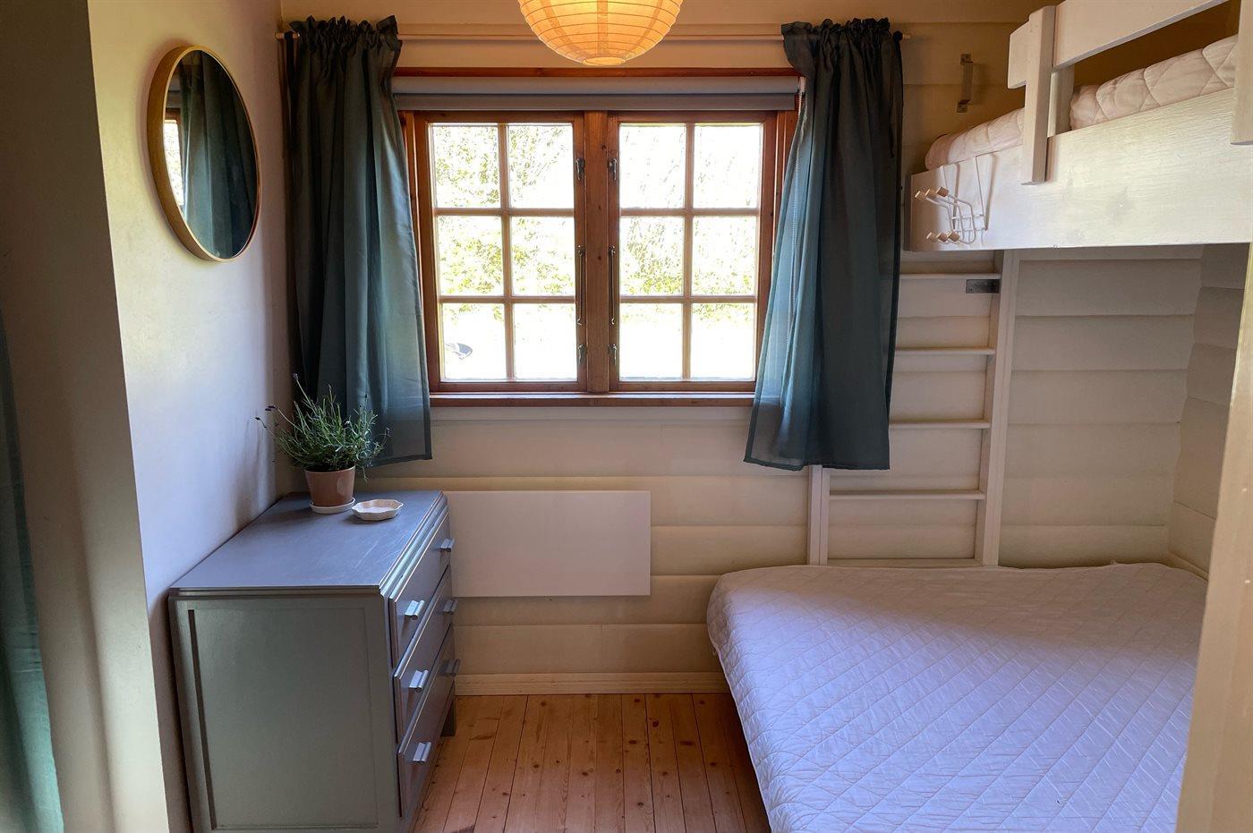 Der er i alt 3 soveværelser. Sovepladserne fordeler sig på: 2 sovepladser i dobbeltseng. 1 soveplads i enkeltseng. 2 sovepladser i køjeseng. Derudover er der 1 stk. barneseng.