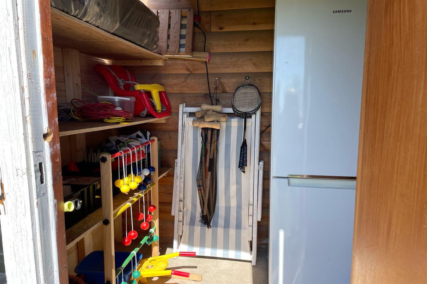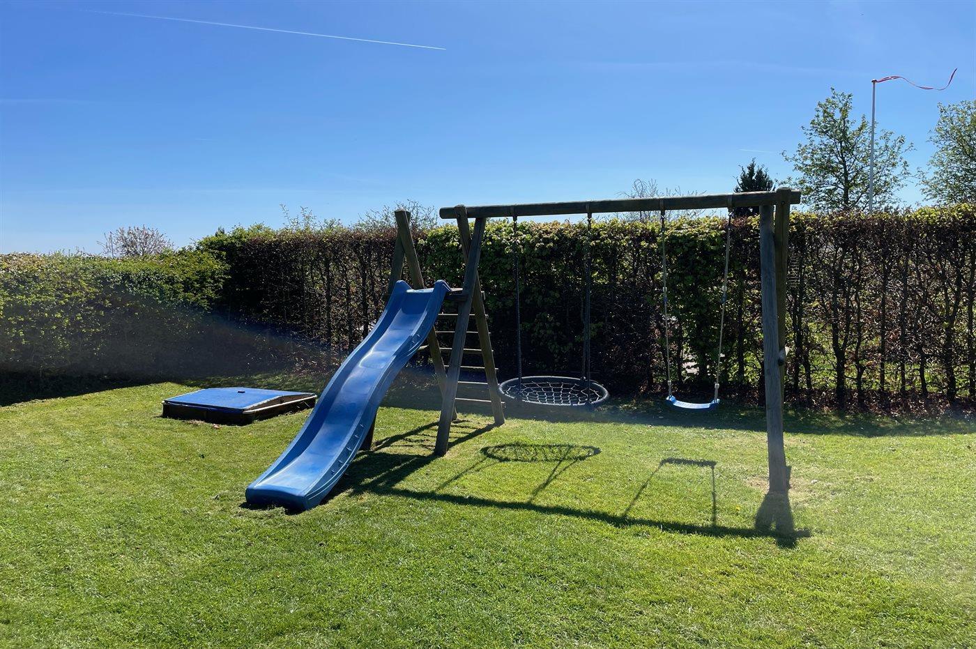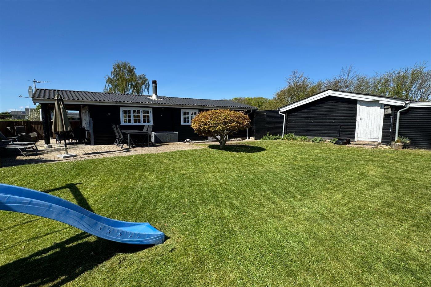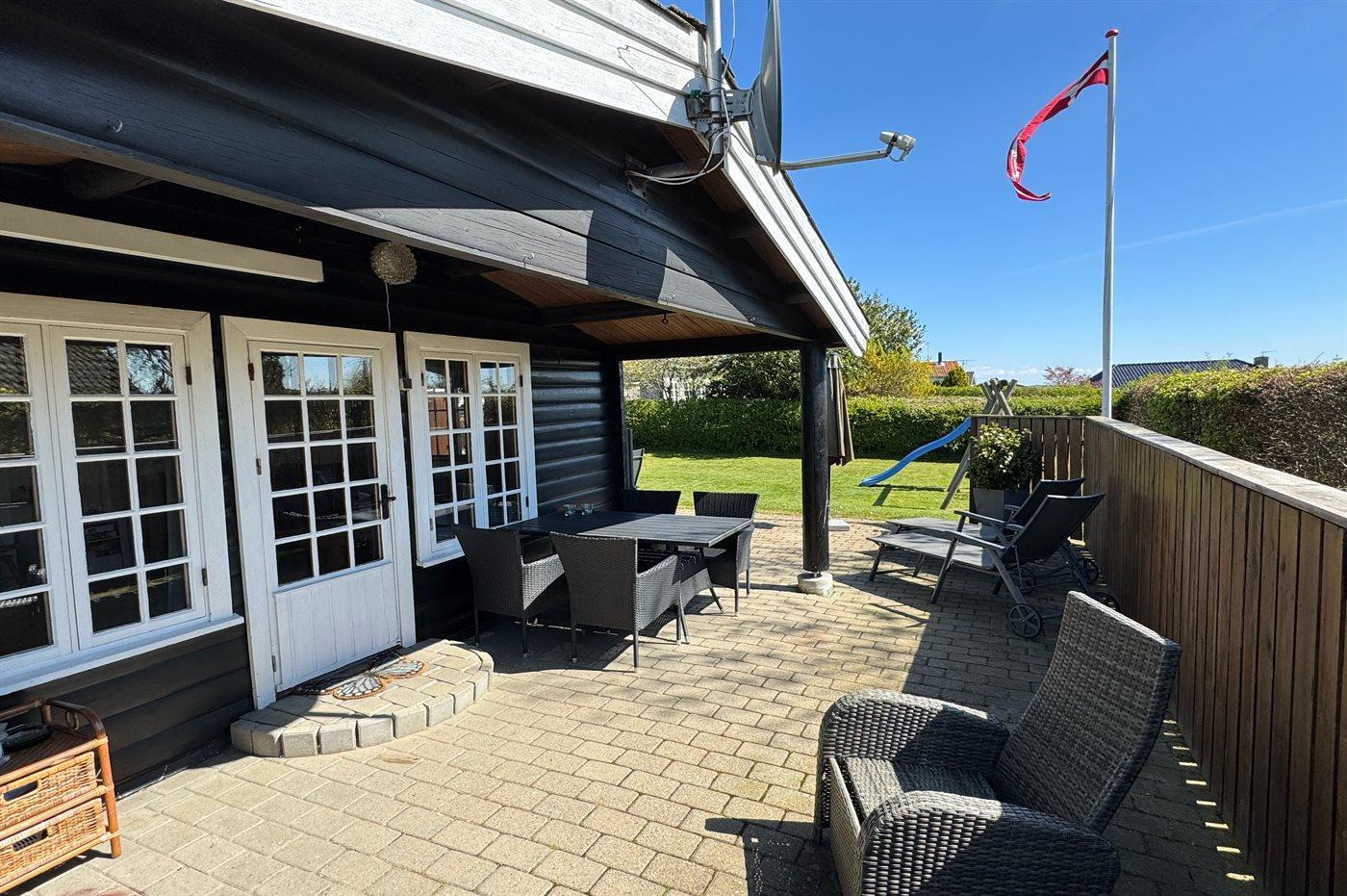 Udelivet er gennemtænkt og indbydende med skønne terrasseområder og alt i havemøbler, så I kan nyde solen fra morgen til aften. Til børnene er der både sandkasse og gynge, og i skuret finder I udstyr til aktiviteter som stigegolf, kroket og kongespil – perfekte til sjov på den store græsplæne, der omgiver huset.