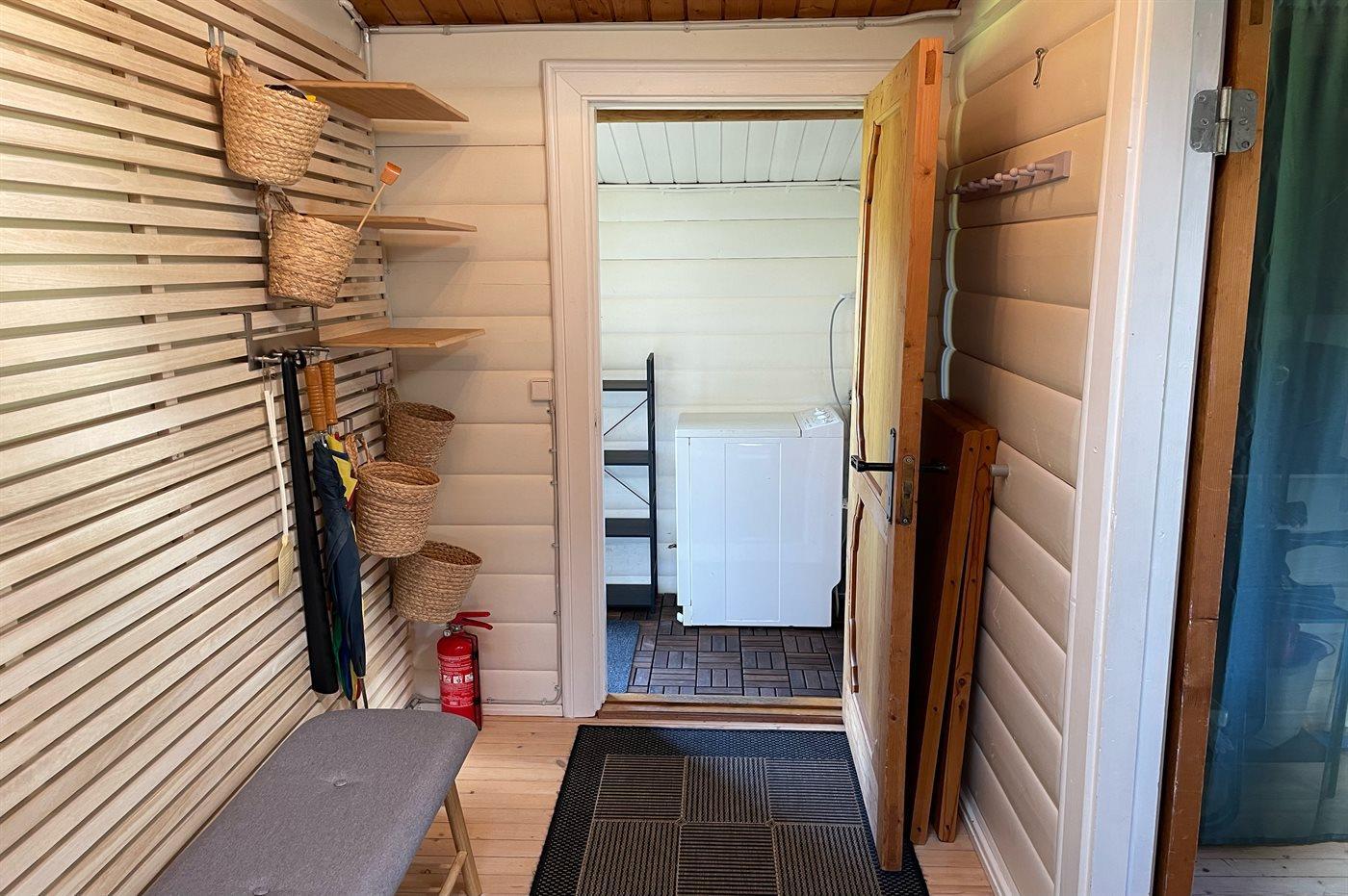 Ferieboligen er beliggende på en 659 m² stor havegrund. Der er 400 m til havet. Der er en badebro i nærheden. Nærmeste forretning er beliggende i en afstand af 3200 m. Til ferieboligen hører åbent terrasseareal. Desuden er der overdækket terrasse. Gynge. Sandkasse. Der ligger en legeplads i en afstand af 600 m. Grill til rådighed. Parkering ved ferieboligen.