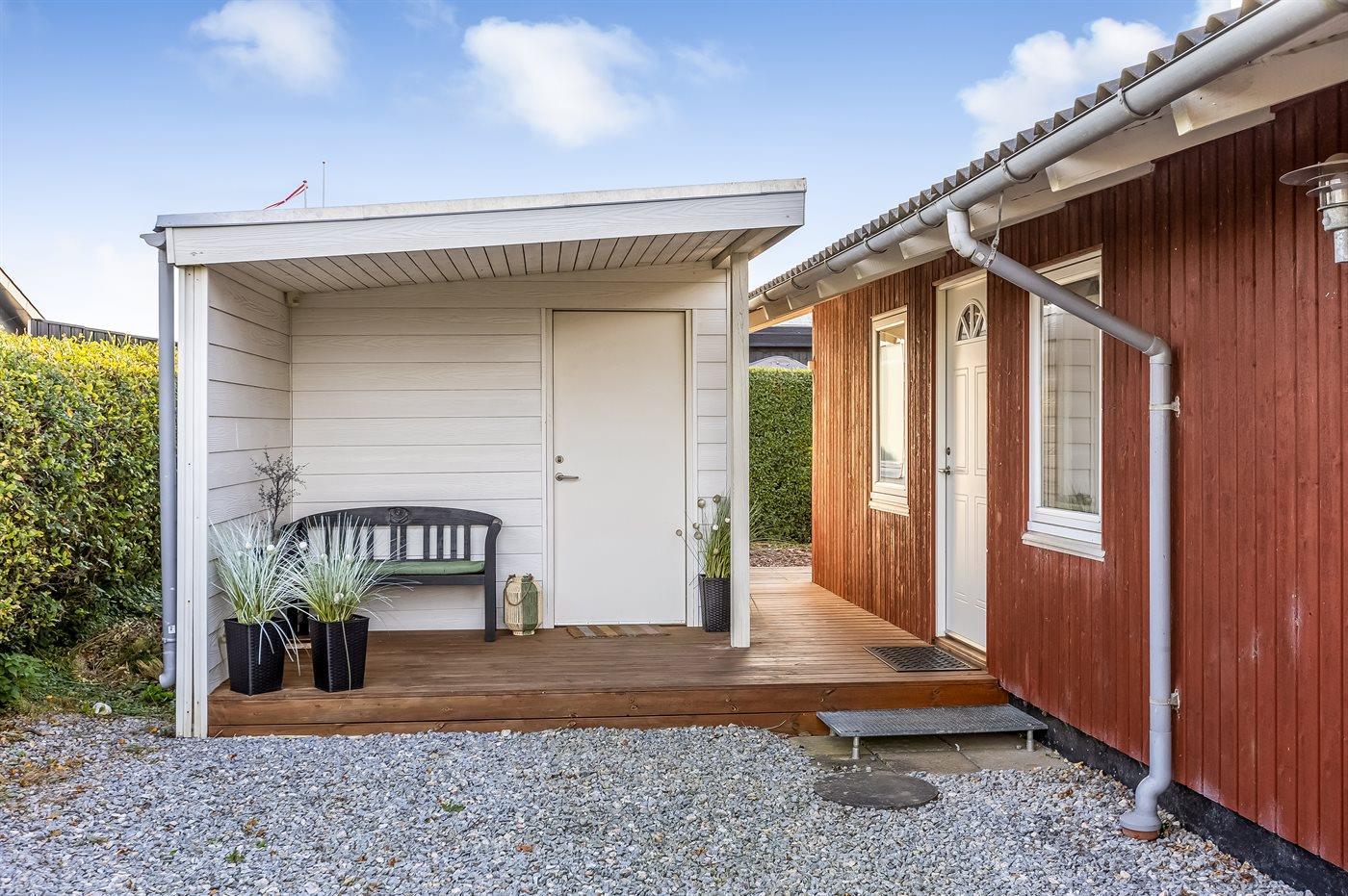 Ferieboligen er beliggende på en 682 m² stor havegrund. Der er 500 m til havet. Nærmeste forretning er beliggende i en afstand af 3400 m. Til ferieboligen hører åbent terrasseareal. Desuden er der overdækket terrasse. Gynge. Sandkasse. Trampolin. Grill til rådighed. Parkering ved ferieboligen.