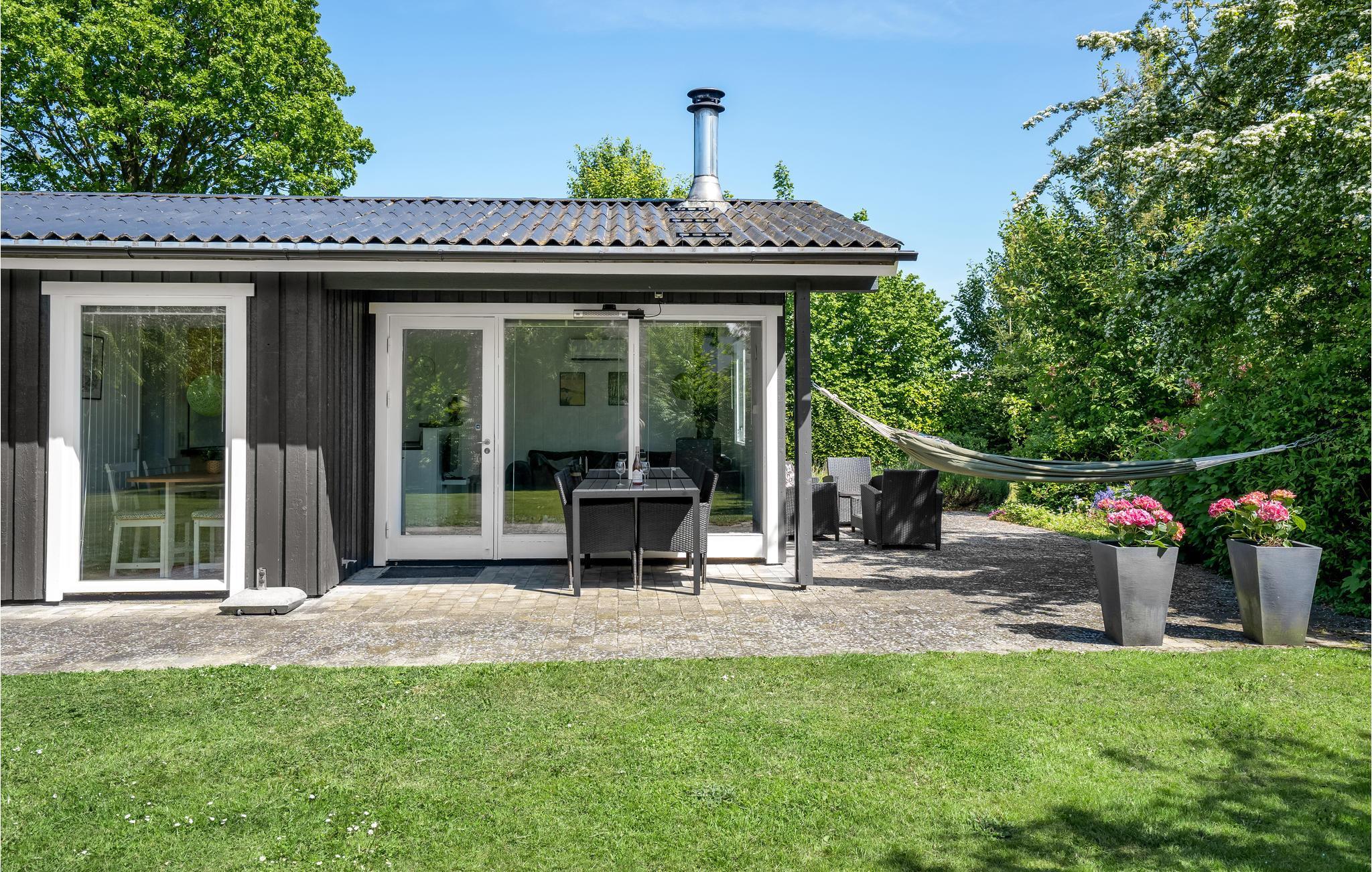 Sommerhuset er renoveret i 2019 og fremstår lyst og behageligt med en god indretning. Køkken og stue i åben forbindelse med en fin spiseplads, hvorfra der er kik til haven. 3 soverum bestående af et master bedroom, et soverum med dobbeltseng, og ekstra køje ovenover, samt et til børnene med køjeseng. Et rigtigt familiehus med plads til voksne og børn både inde og ude, hvor den delvis overdækkede terrasse giver mulighed for masser af udeliv. Børnene kan more sig med legeredskaberne, der findes ved huset. Huset varmes op af både brændeovn og varmepumpe, så selv på de kolde dage er her hyggeligt.