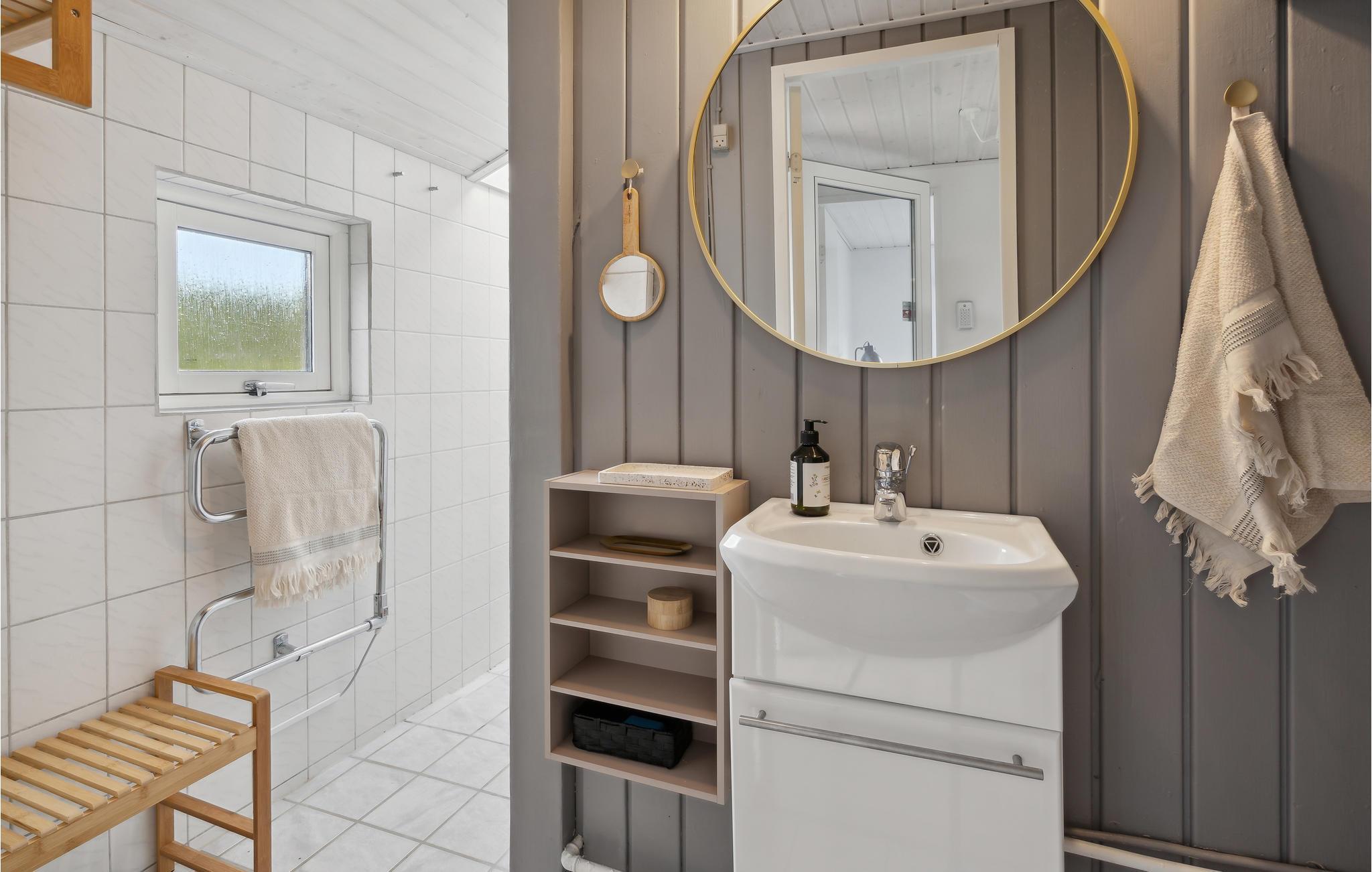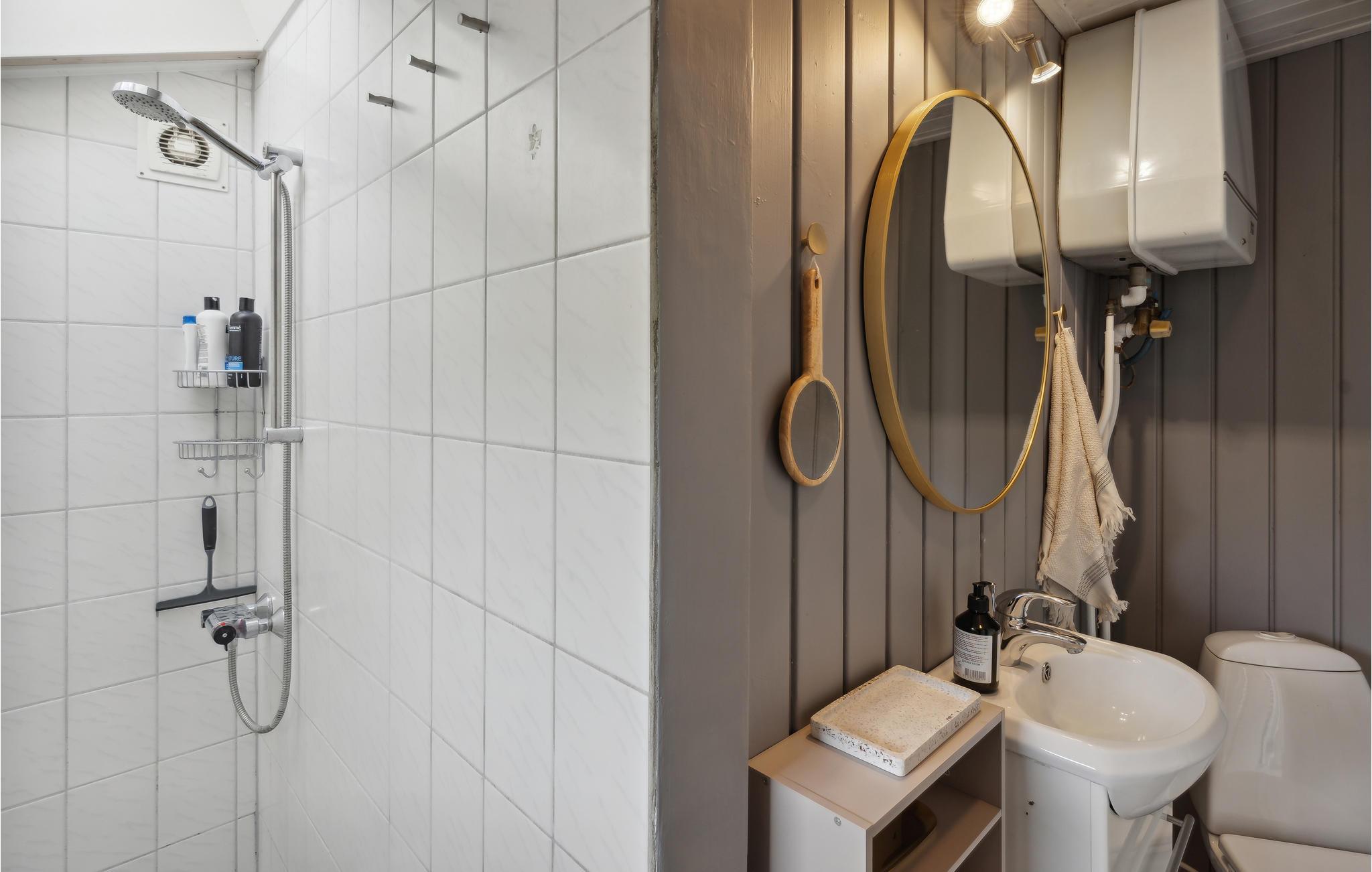 Der er to soverum i hovedhuset, samt et badeværelse med brus. I annekset et der yderligere et ugenert soverum.