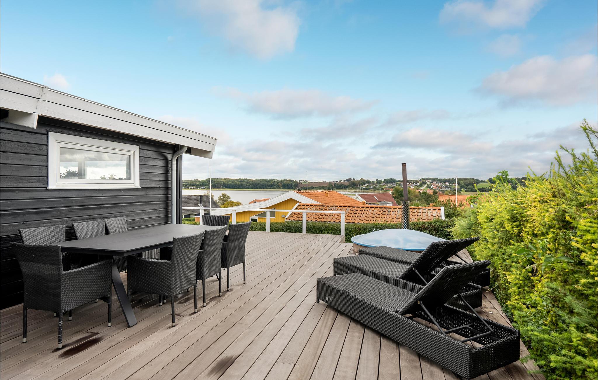 Toplækkert feriehus i Hejlsminde med stor terrasse, vildmarksbad og panoramaudsigt over Lillebælt.