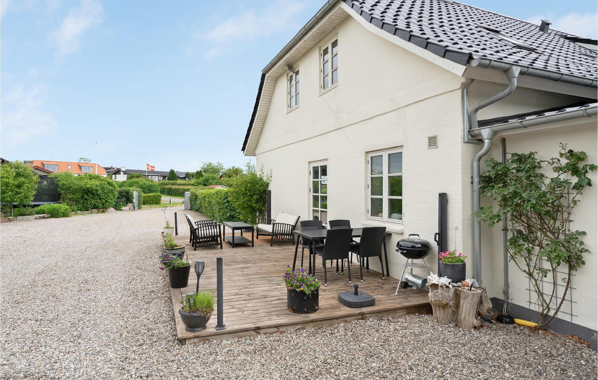 Nyd morgenmaden i solen på jeres terrasse med udsigt til den velplejede have. Efter en lang dag ved stranden kan I slappe af med en drink i de komfortable loungemøbler og tænde op i grillen for at nyde lune sommeraftener med vin og stearinlys.