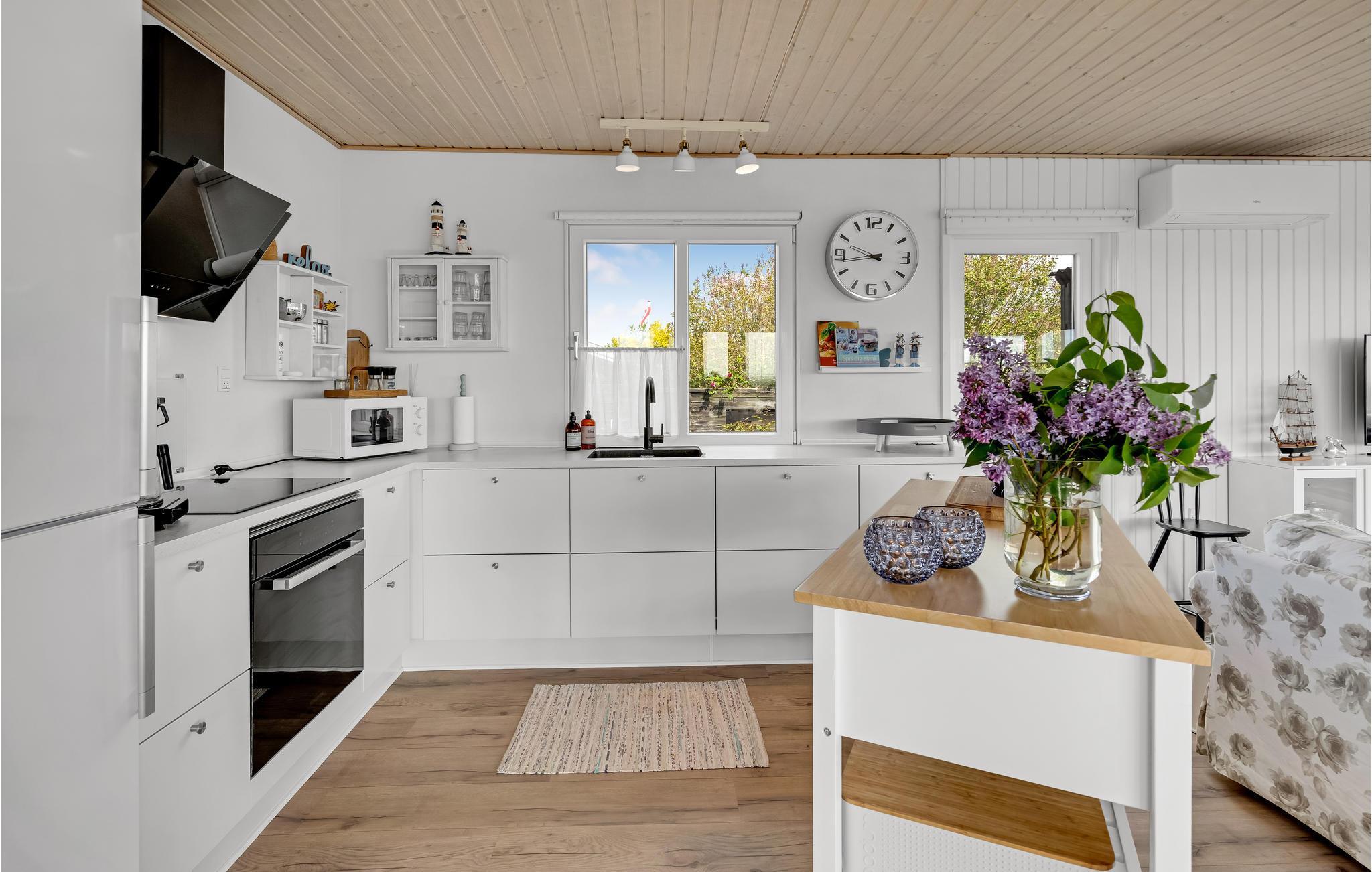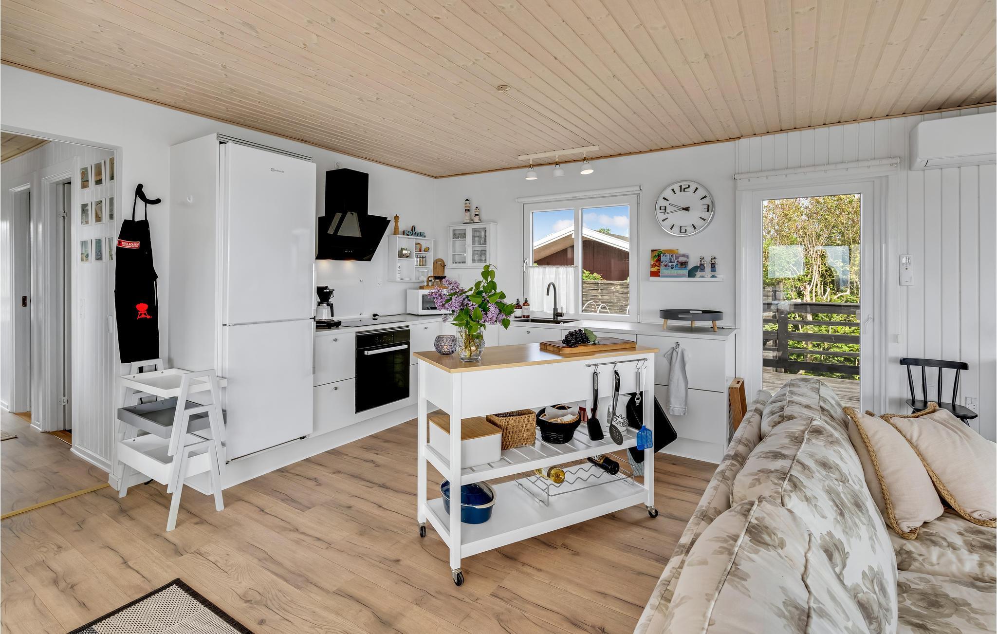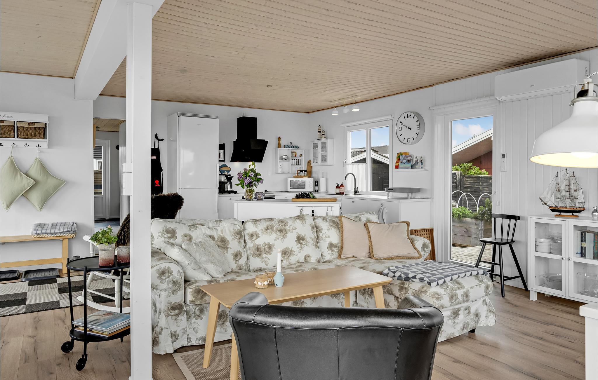Velkommen til dette hyggelige sommerhus, som bliver en fantastisk base til jeres familieferie. Boligen er indrettet med charmerende og kvalitetsbevidste løsninger, så I kommer ikke til at mangle noget. Den åbne stue, med stor vinduesfronter lukker lyset ind i stuen og giver jer udsigt til de grønne omgivelser, mens I slapper af med hyggelige aktiviteter indendørs.