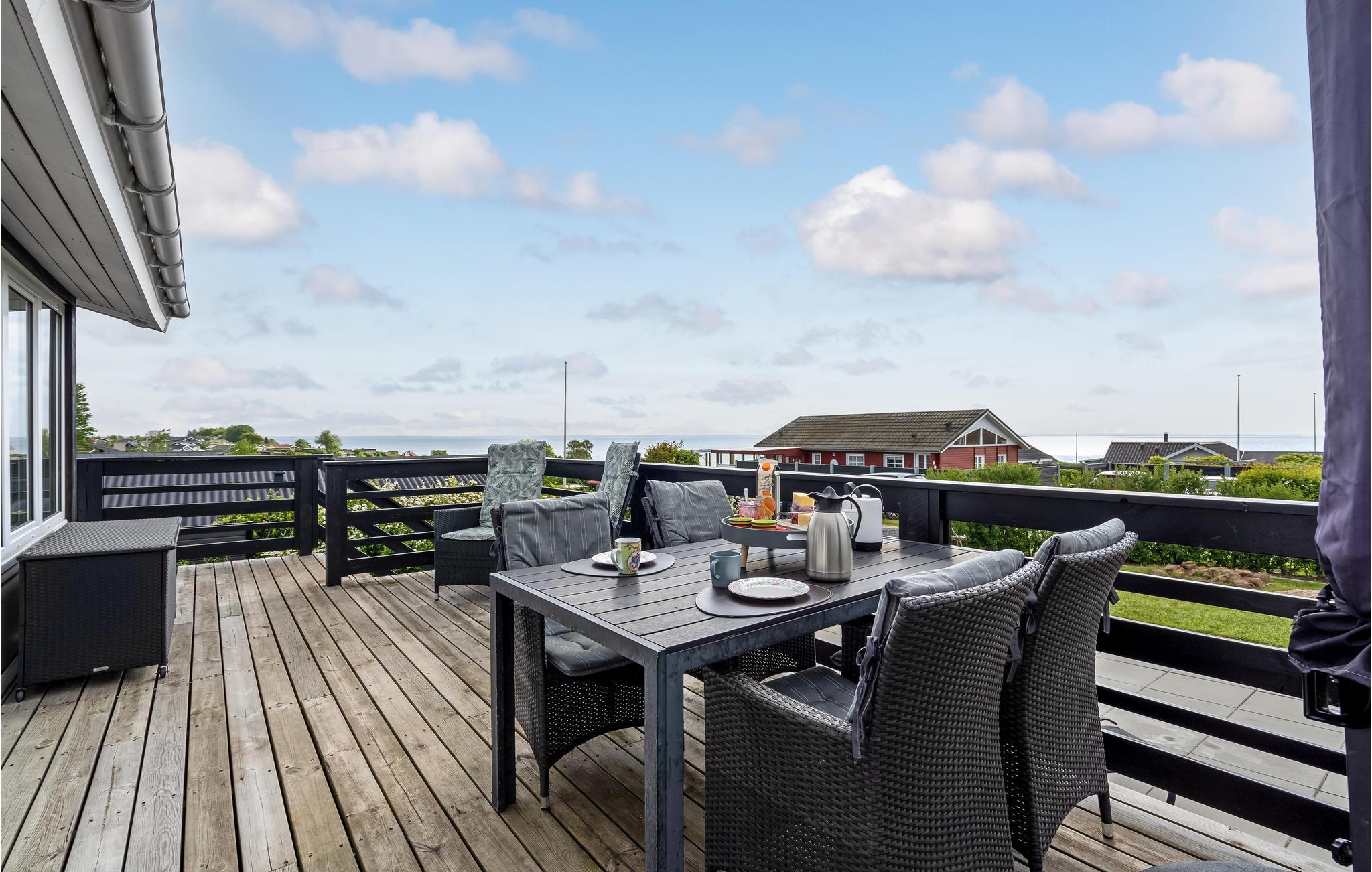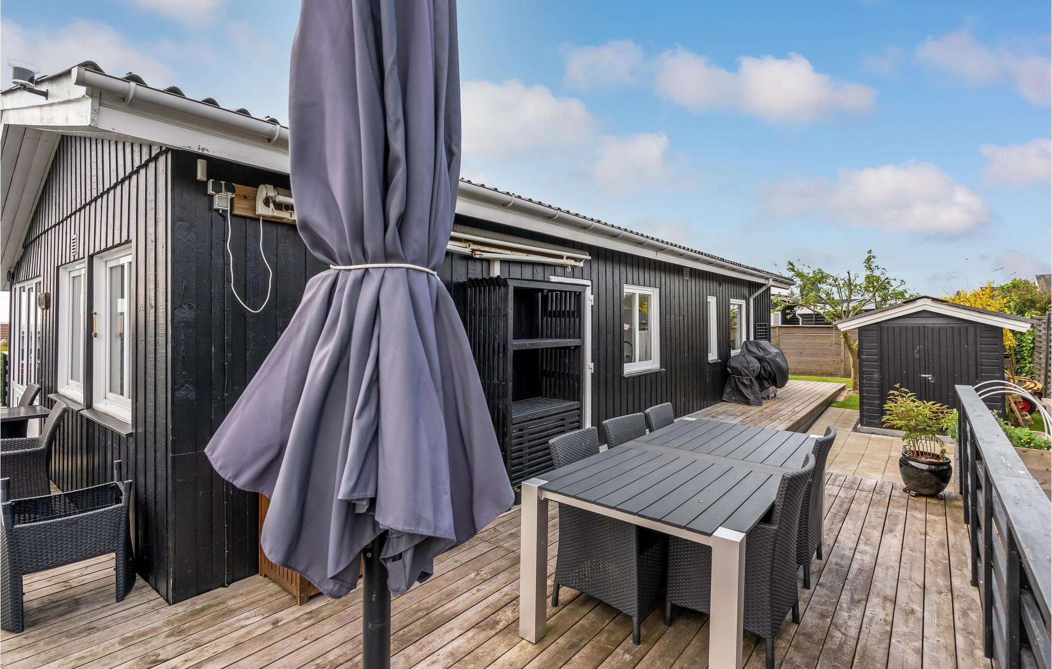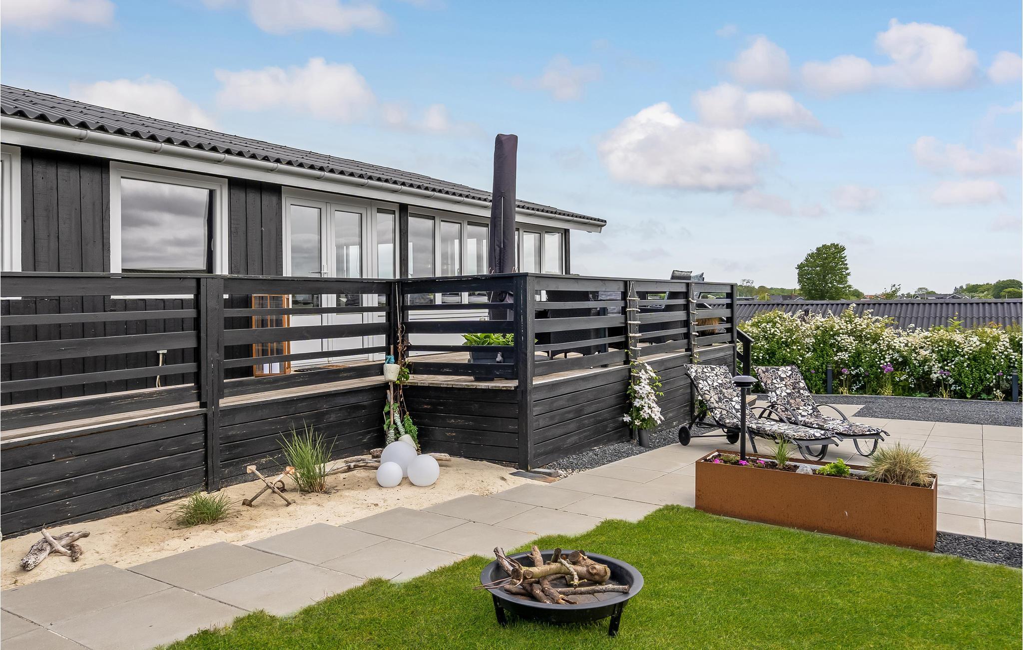 Der er terrasse hele vejen rundt om huset, så I kan nyde solen hele dagen og rykke jer ind i skyggen, hvis I får behov for det. Der er desuden en ekstra terrasse, hvor det er skønt at sætte sig med en god bog eller samles om bålfadet om aftenen.