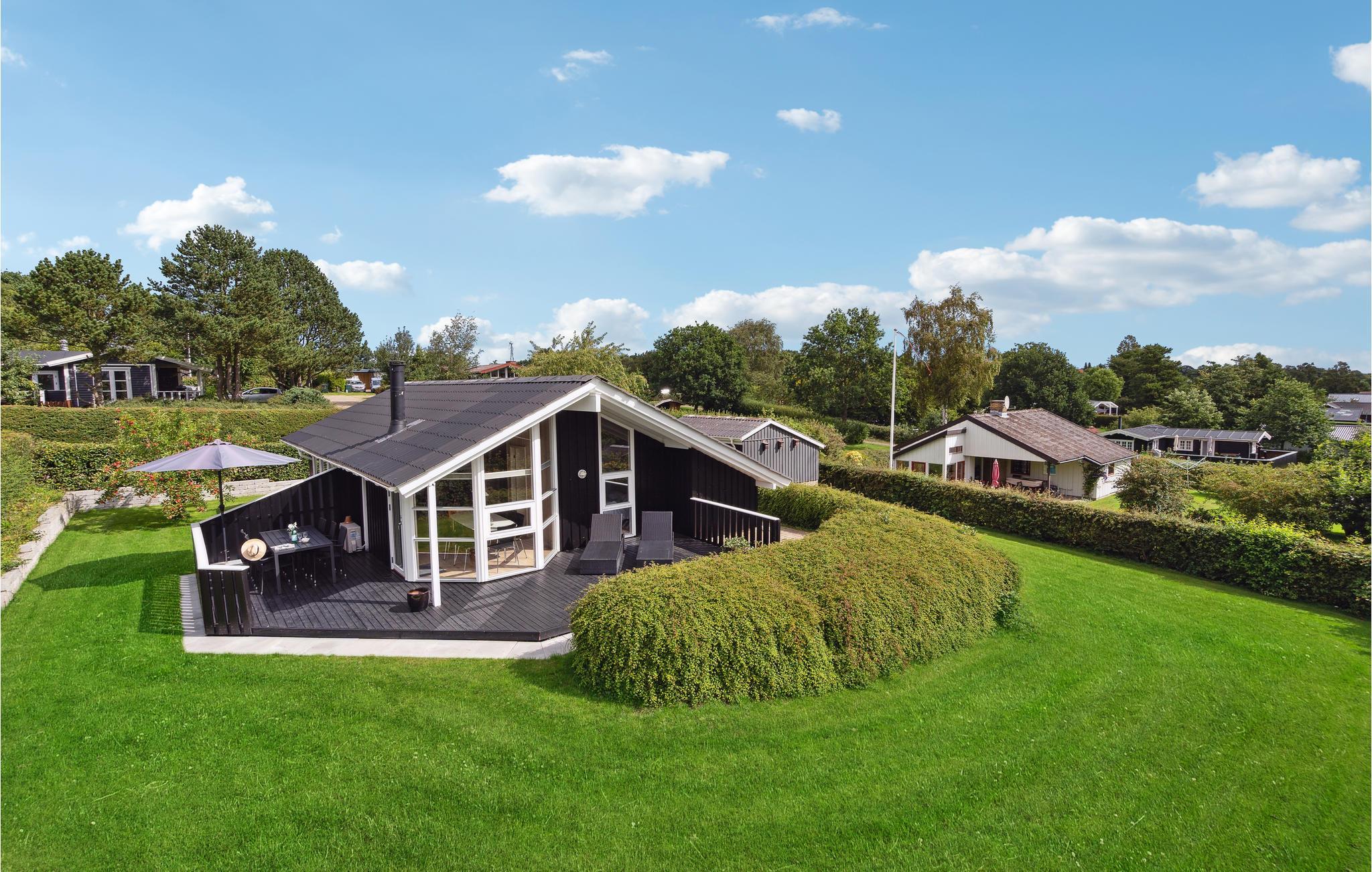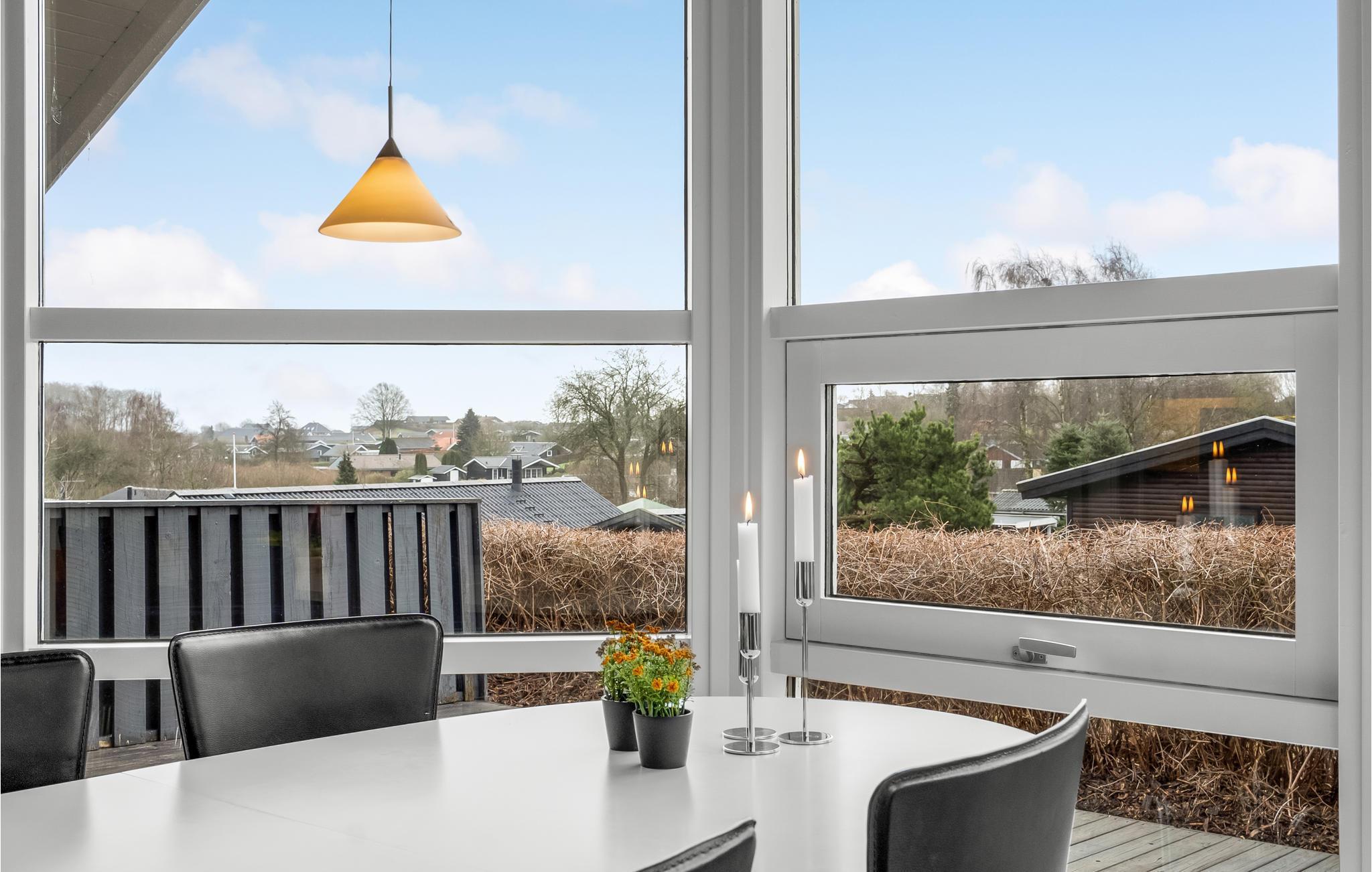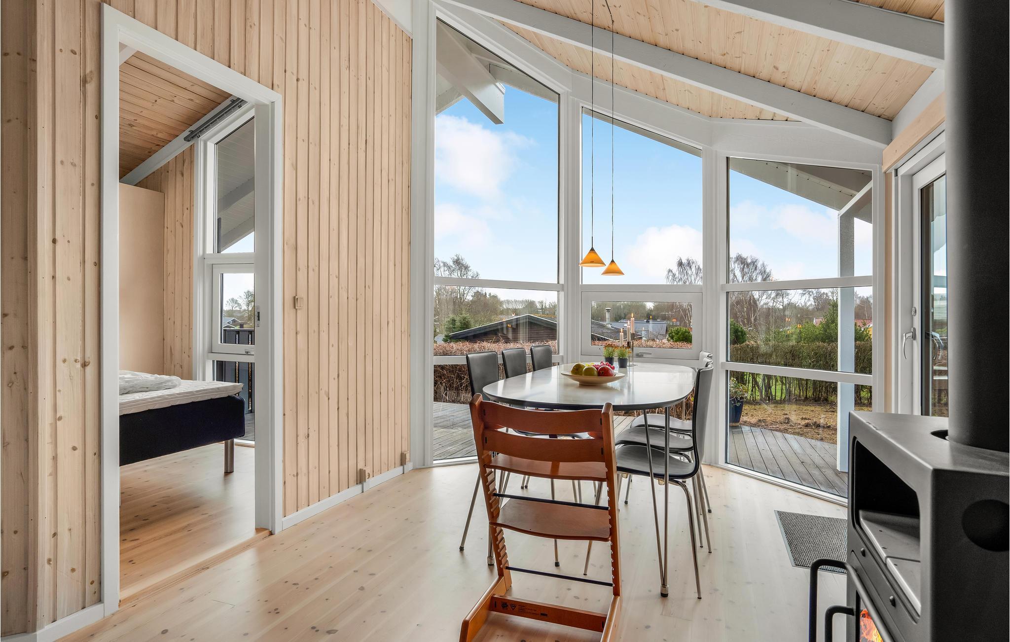 Det charmerende træhus byder velkommen i en smuk, rolig beliggenhed. De lyse værelser danner de ideelle rammer for en hyggelig stund sammen i en hjemlig atmosfære. Store vinduespartier slipper masser af dagslys ind i rummene. Spis i det fri med en vidunderlig udsigt og slap af i husets sauna. Efter en begivenhedsrig dag inviterer den behagelige sofa til film- eller spilleaften, her kan I hygge jer sammen, mens flammerne knitrer i brændeovnen. Nyd solen udenfor huset, mens jeres børn leger på naturgrunden. Afslut dagen med en lækker grillmiddag på terrassen og nyd de lange sommeraftener, senere kan I samle hele familien om et bål.