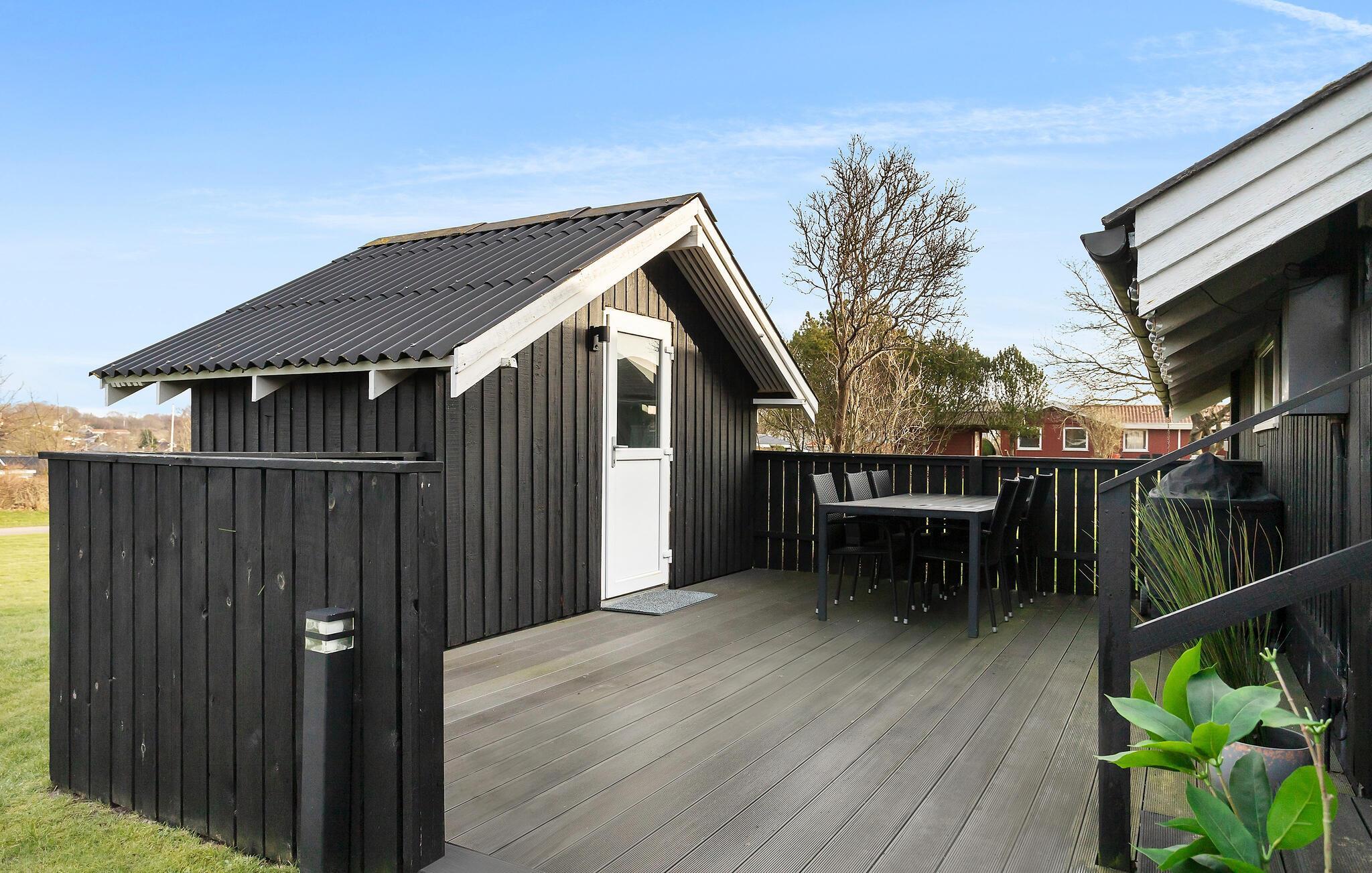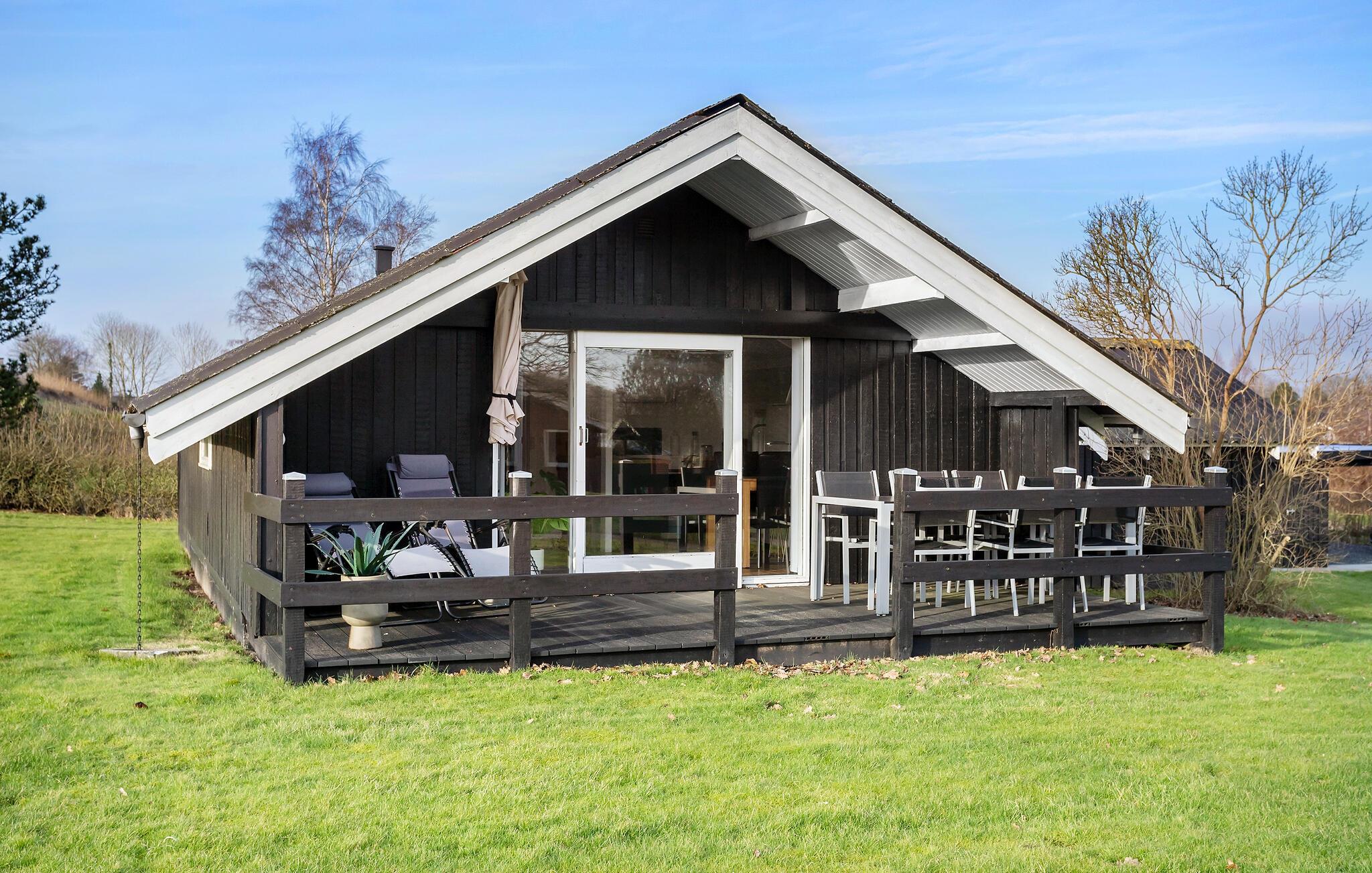 Hyggeligt træhus i Hejlsminde med åben stue og to terrasser tæt på stranden og naturen.
