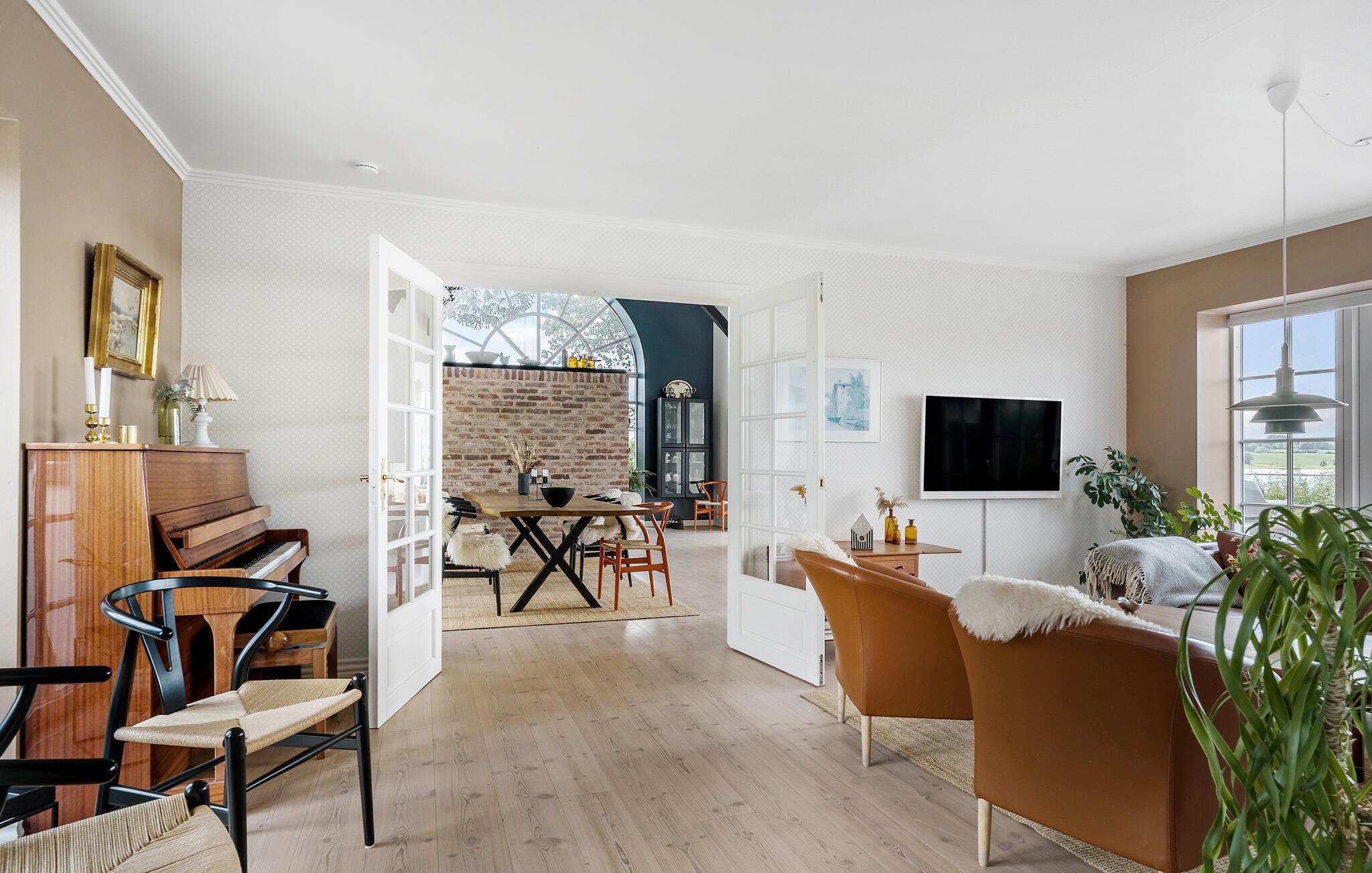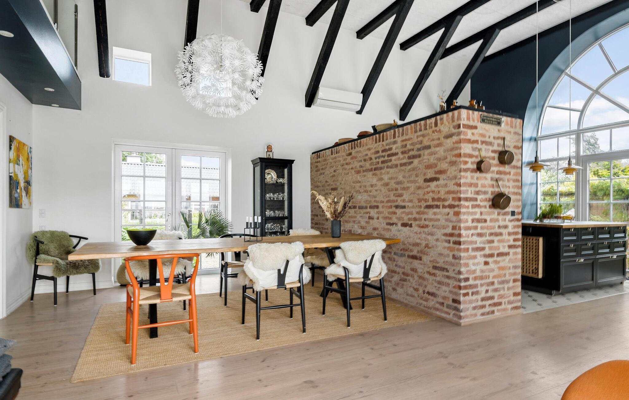 Velkommen til dette fantastiske hus, hvor I får godt med plads og masser af komfort til årets ferie med familien. I bor lige ned til søen Hejls Nor, og udsigten er alle lunde fremragende. Indvendigt emmer det af kvalitet og komfort over hele linjen. Huset er virkelig flot indrettet med højt til loftet, varme træbjælker og delvist rå murstensvægge, der giver det indre et flot, rustikt udtryk. I kombination med de moderne bekvemmeligheder og rene linjer skabes her en helhedsoplevelse, der gør det nemt at slappe af og bare nyde. Køkkenet er stort og veludstyret, så gør endelig madlavningen til et fornøjeligt fællesprojekt, inden der dækkes op til aftensmaden ved spisebordet af træ. Rund aftenen af i udestuen i de behagelige sofaer, hiv brætspillene frem og nyd udsigten, inden I går til køjs.