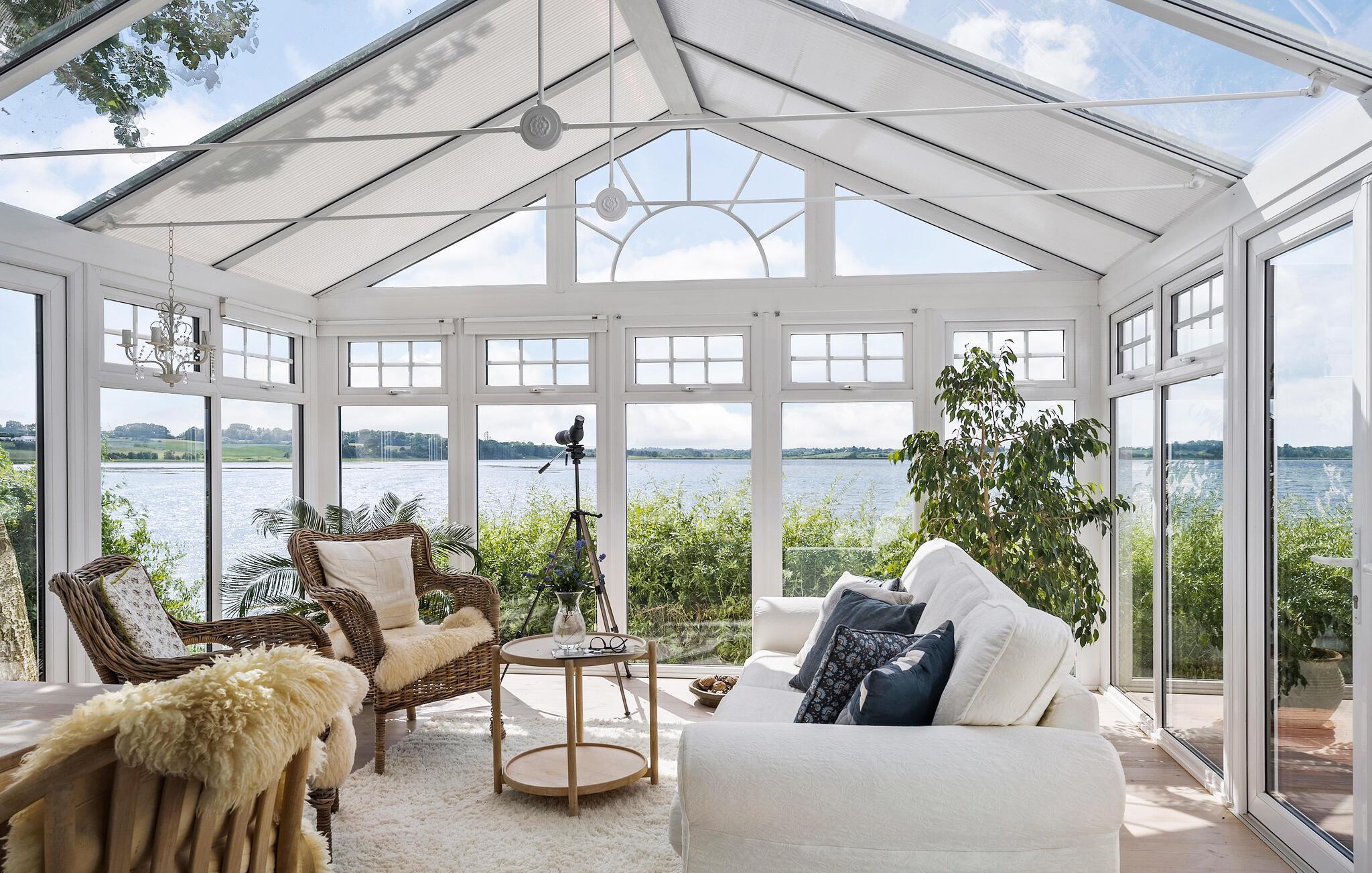 Oplev luksus, komfort og panoramaudsigt i dette smukke feriehus ved Hejls Nor med pool og spa.