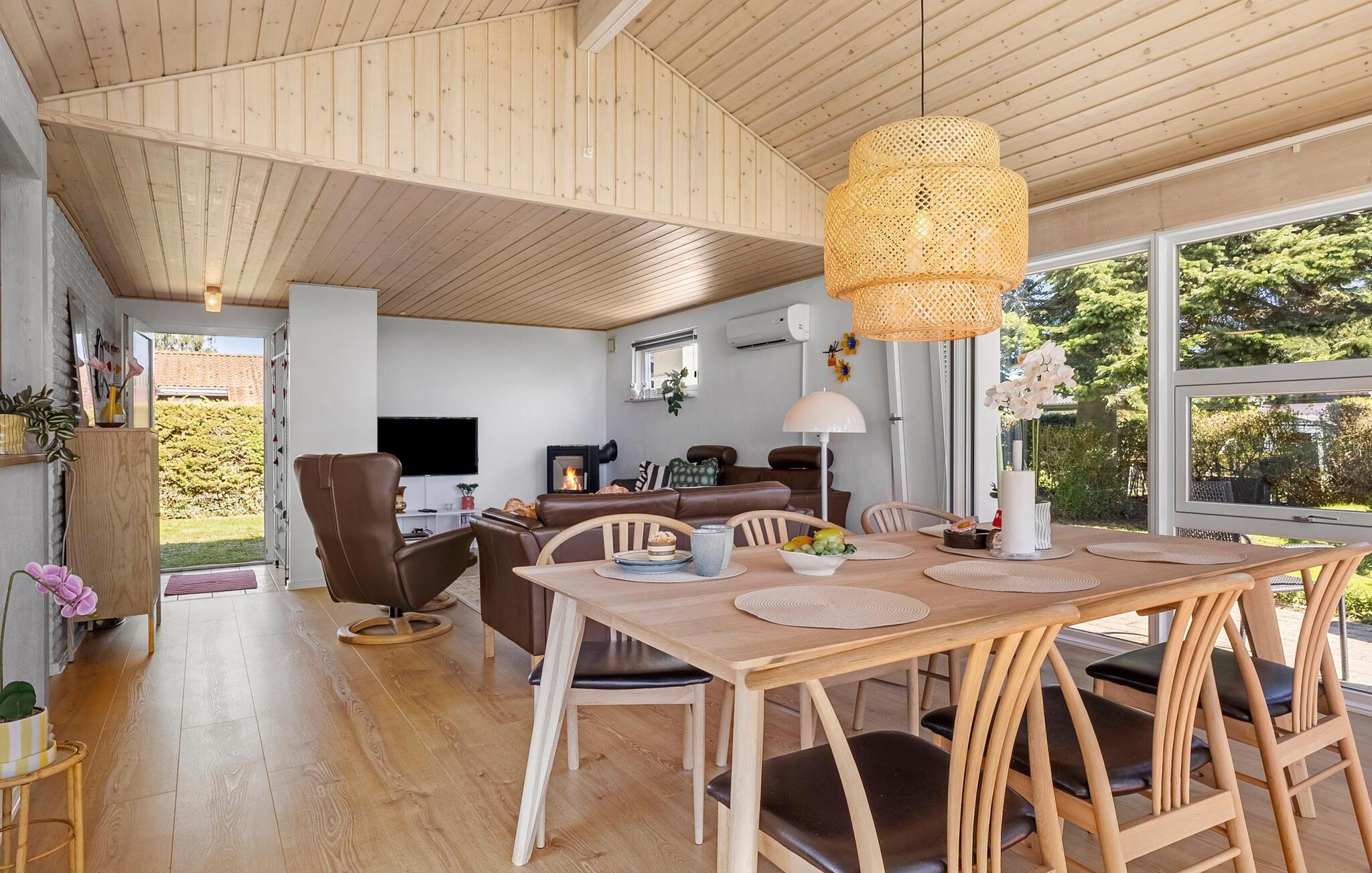 Dette rummelige hus er perfekt til en afslappende pause fra hverdagen. Store vinduer lukker masser af varmt naturligt lys ind, hvor I kan slappe af med en velduftende kop kaffe. Stream en god serie, lav et lækkert måltid i det moderne køkken eller tænd brændeovnen for ekstra hyggelig varme på køligere dage.