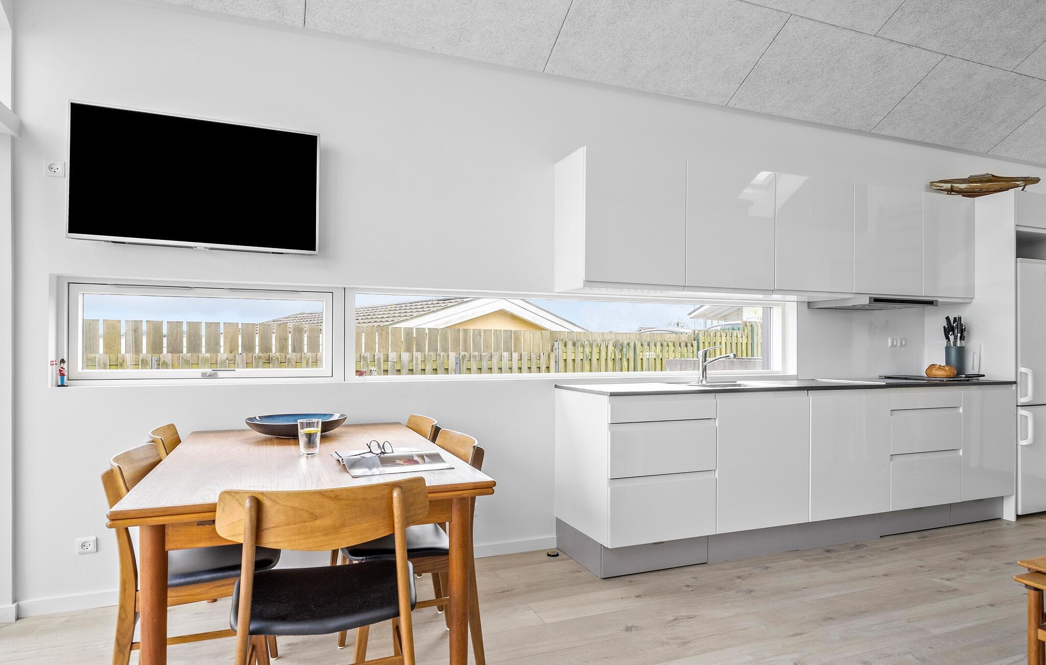 Dette hus er noget helt særligt med sin vidunderlige beliggenhed. Her kan I nemlig sætte jer til rette i stuen og kigge direkte ned til det blå vand, som ligger og skvulper på stranden, der hvor jeres grønne græsplæne stopper. Slap af i husets stilfulde atmosfære efter en lang dag på farten og hyg jer med brætspil eller et slag Uno med hele familien.