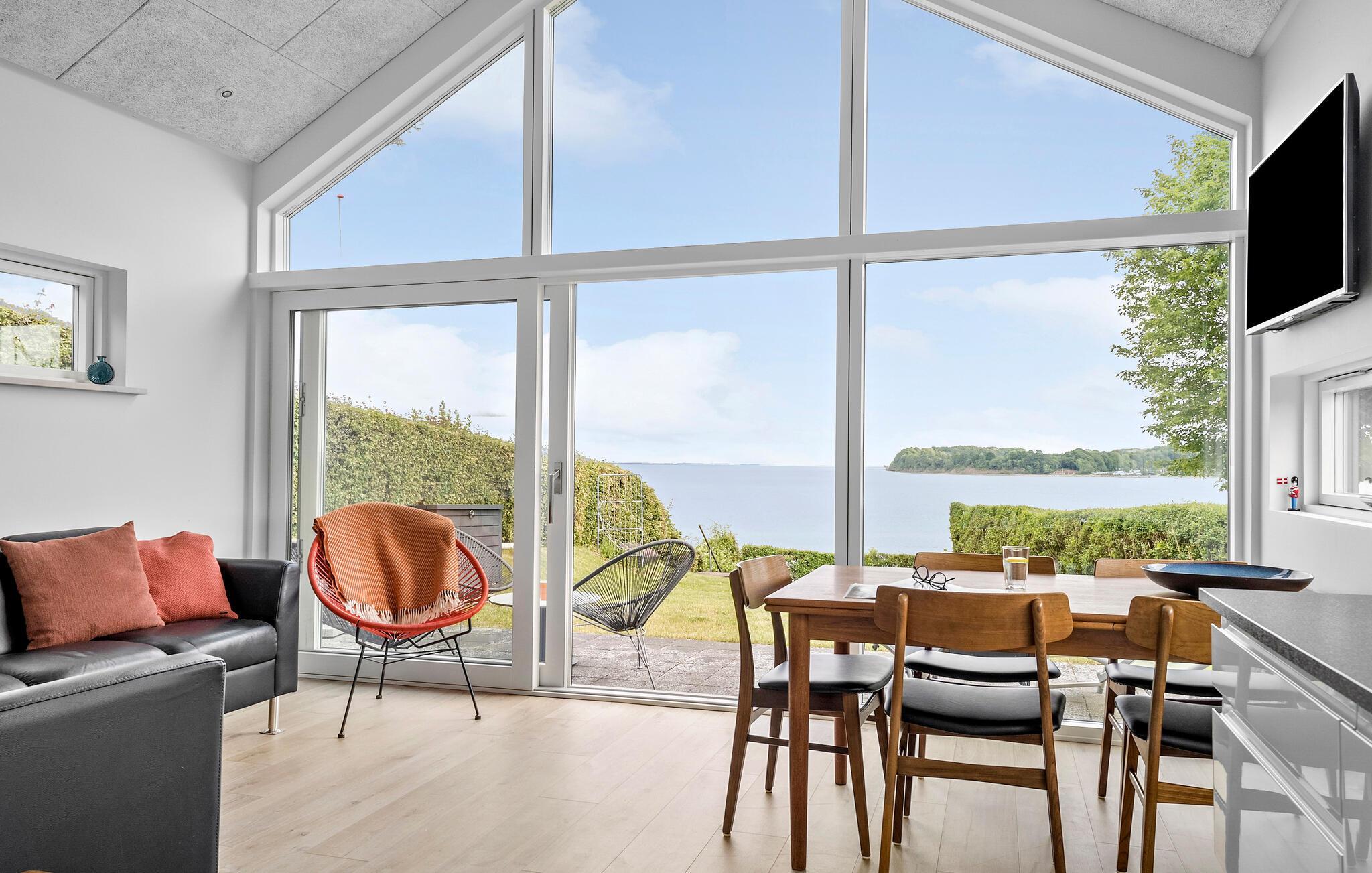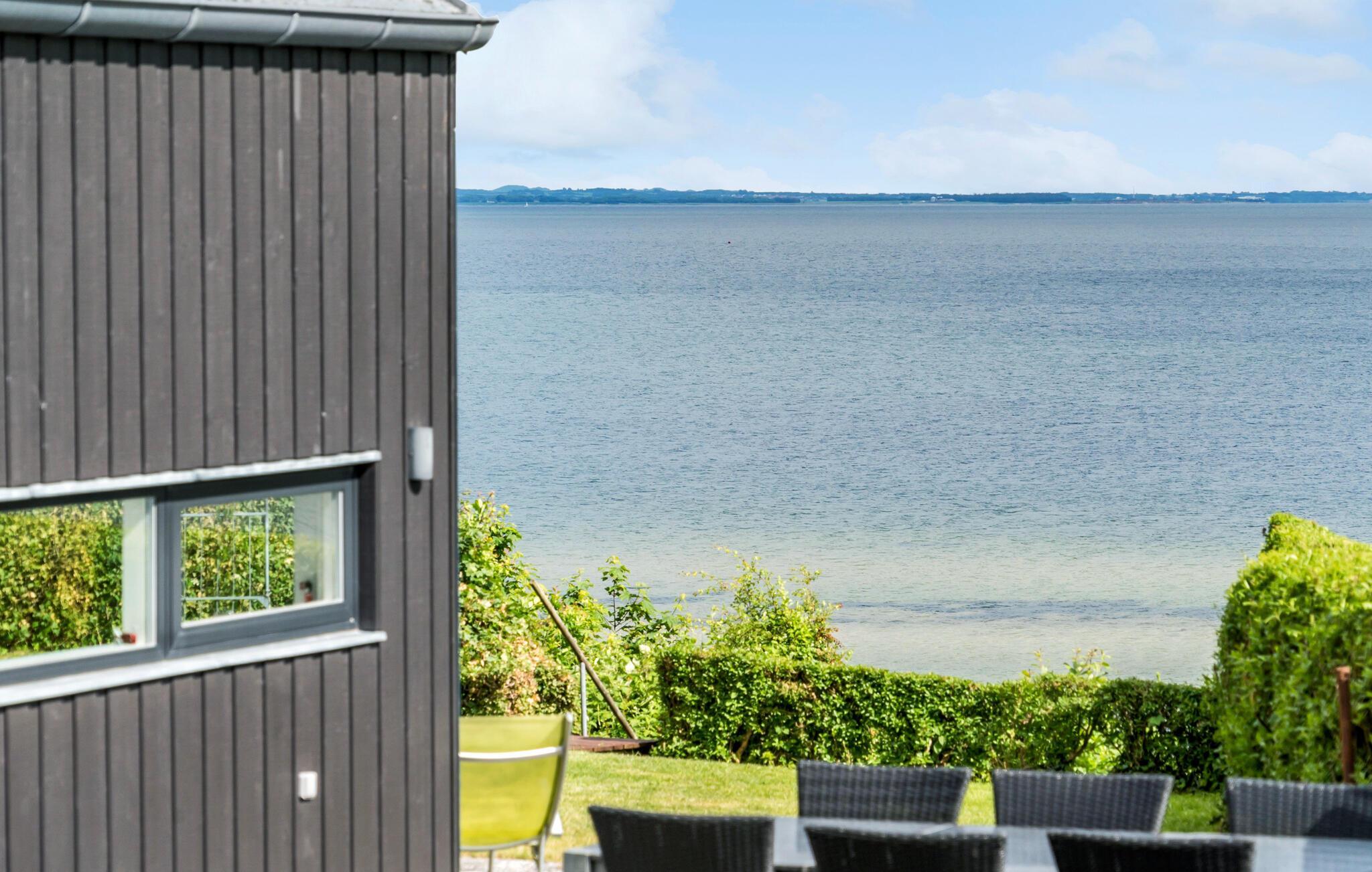 Nyd panoramaudsigt over Lillebælt fra dette moderne og stilfulde sommerhus i Hejlsminde.