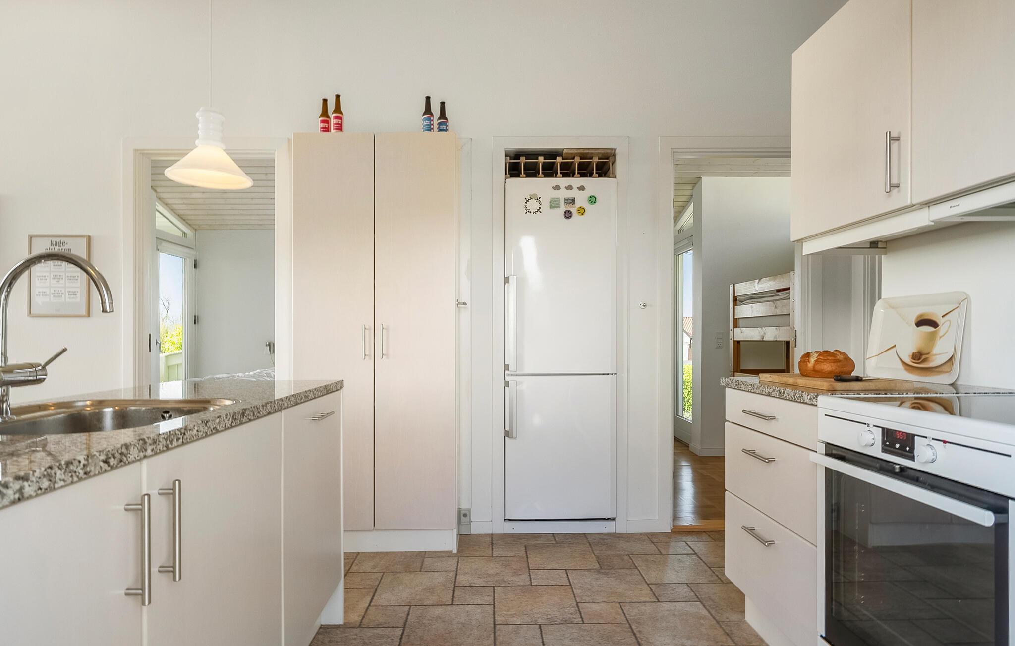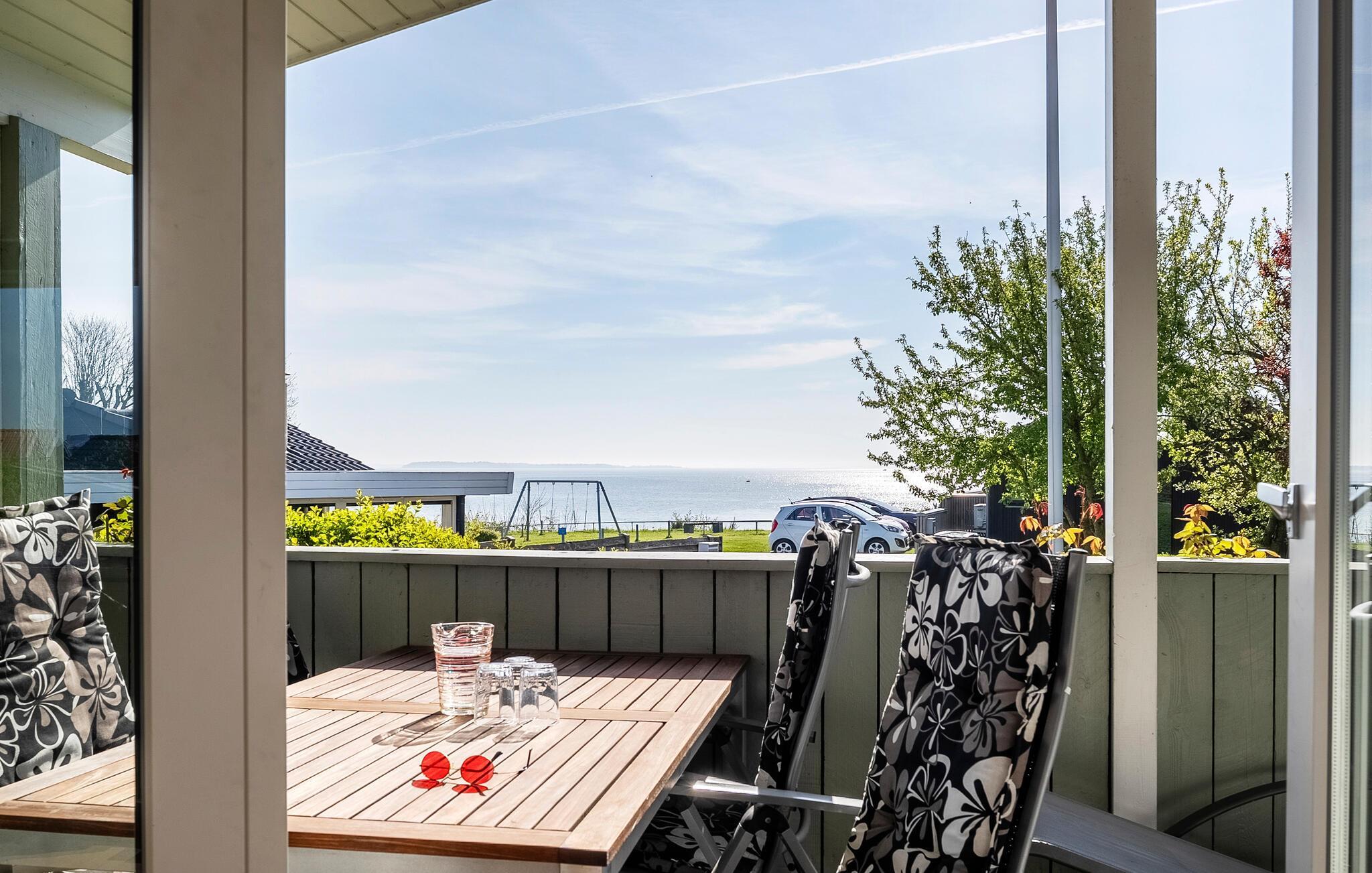 Dette skønne feriehus giver jer en perfekt oase til nogle afslappende dage lige ud til vandet. Nyd den friske havbrise på terrassen, lyt til bølgernes brusen og lad blikket vandre over Lillebælt. Stranden er kun nogle få skridt væk. Træd ind i det hyggelige feriehus, hvor lyset falder bredt ind gennem de store vinduer og giver en smuk udsigt over vandet. Find jer til rette i siddeområdet eller nyd en hyggestund i den lyse stue. Giv jer god tid til madlavningen i det rummelige køkken og server måltiderne ved spisebordet. De smagfulde indretningsløsninger skaber en behagelig atmosfære, hvor alle hurtigt føler sig hjemme.