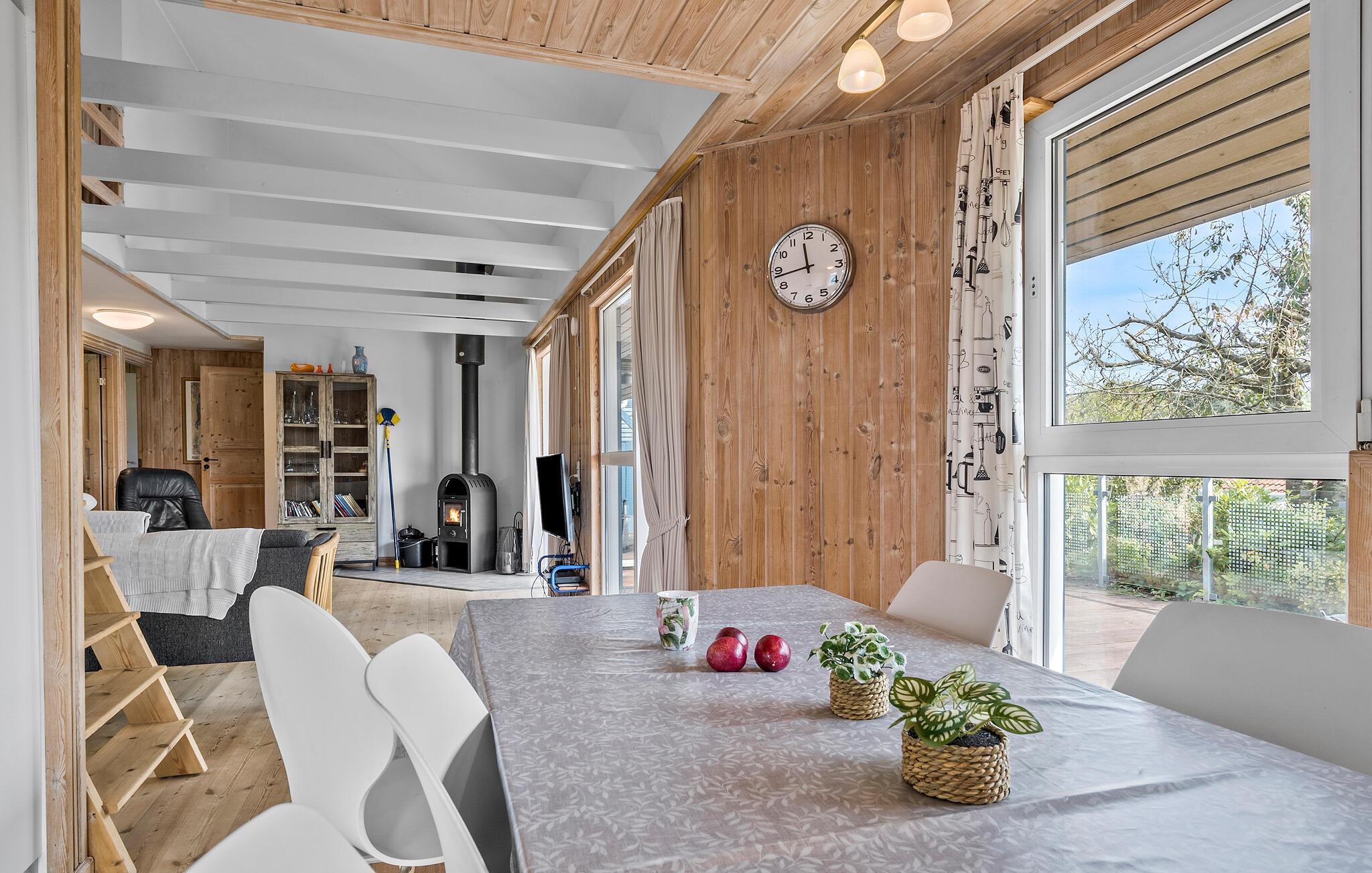 Jeres sommerhus nær Hejlsminde Strand ved Lillebælt kombinerer en hyggelig indretning med mange udflugtsmuligheder i området. Med masser af plads til hele familien tilbyder det ideelle rammer for en afslappende ferie. Den åbne planløsning forbinder spiseområdet og den komfortable sofa i en rummelig opholdsstue, der skaber en indbydende og behagelig atmosfære. Et særligt højdepunkt er de store vinduer, der lader masser af dagslys strømme ind og giver en smuk udsigt over den grønne have.