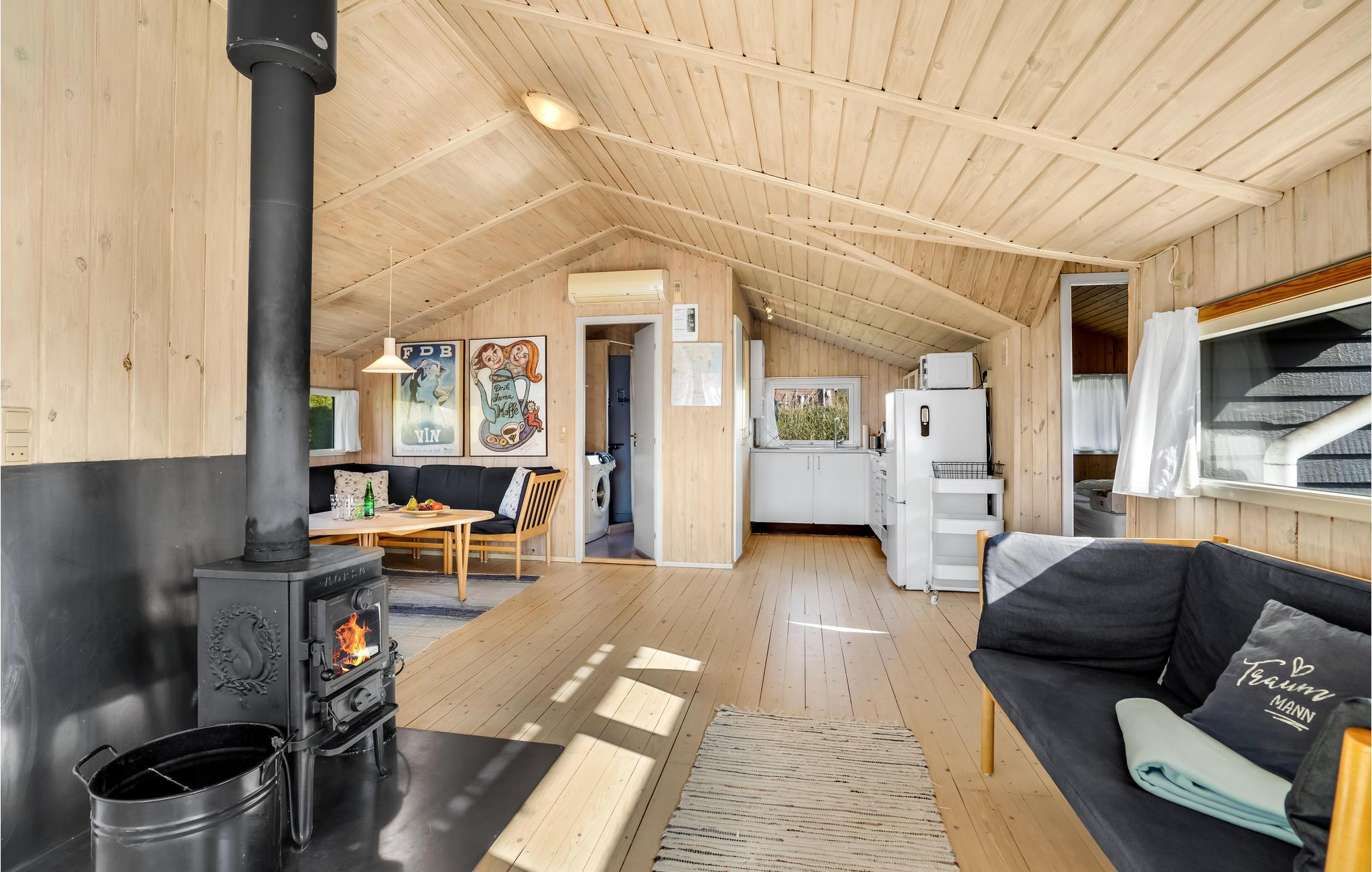 Hyggeligt sommerhus i børnevenligt område tæt på vand med stor terrasse, have og bålsted – perfekt til afslapning og leg.