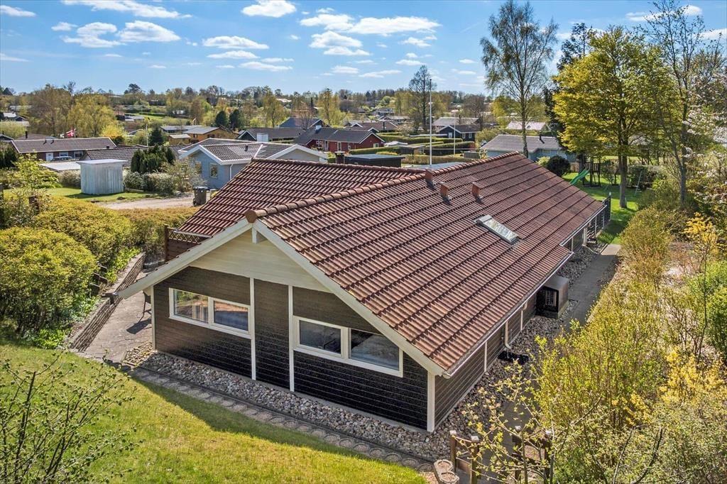 Det fredelige udemiljø indbyder til ren afslapning og nærvær. Sommerhusets have er velplejet og byder på flere små hyggekroge, hvor du kan slå dig ned med en bog eller nyde en kop kaffe i solen. På terrassen – både den overdækkede og den åbne – er der rig mulighed for at samles til måltider i det fri eller forlænge de lune sommeraftener under åben himmel. Når solen står højt, er græsplænen ideel til leg og spil, mens fuglene kvidrer i trækronerne omkring dig. Her kan du fornemme den helt særlige ro, som kendetegner Hejlsminde-området.