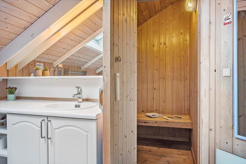 Sommerhuset emmer af lys og luftighed, når du træder indenfor. I stuen strømmer dagslyset ind gennem de store vinduespartier og skaber et varmt og indbydende rum, hvor loft til kip giver en dejlig rummelighed. Her kan du finde dig godt til rette i sofaen med udsigt til haven, mens du nyder stilheden og samværet med dem, du holder af. Køkkenet ligger i åben forbindelse med stuen og danner en naturlig ramme om feriens måltider og hyggelige stunder ved spisebordet. Når dagen går på hæld, kan du trække dig tilbage til de rolige værelser, der alle er indrettet med fokus på komfort og afslapning.