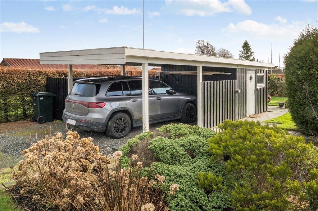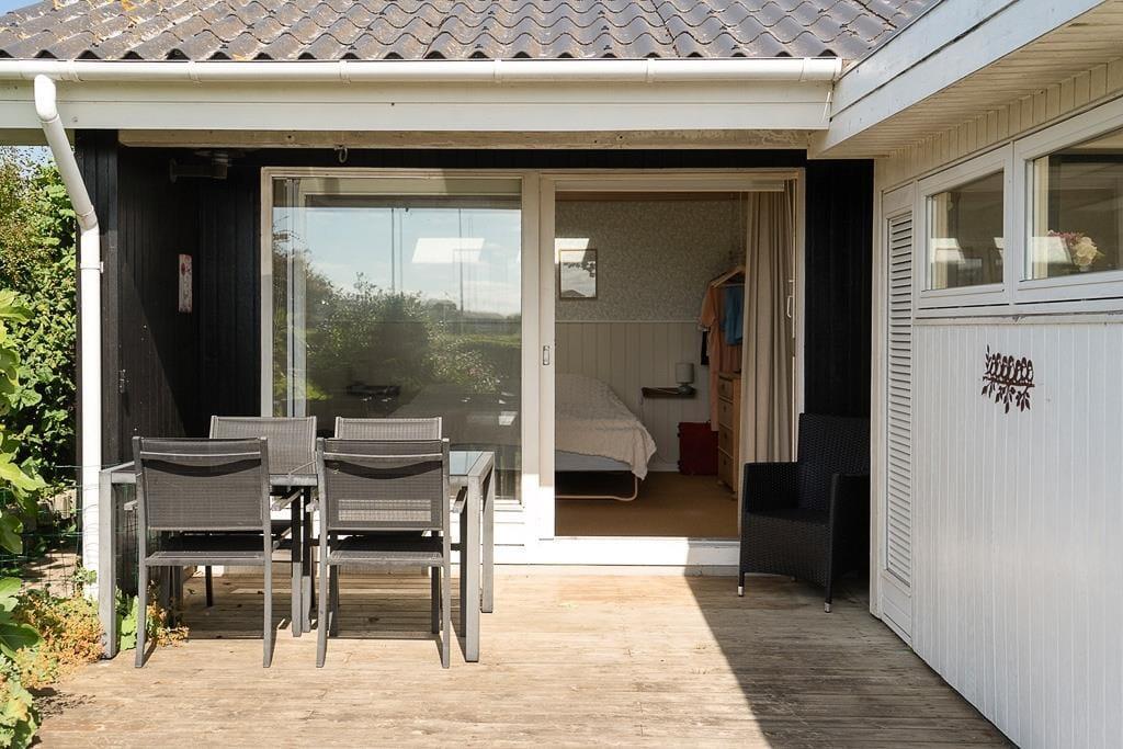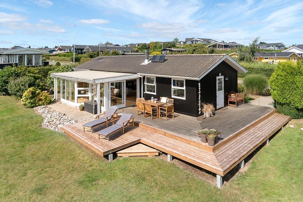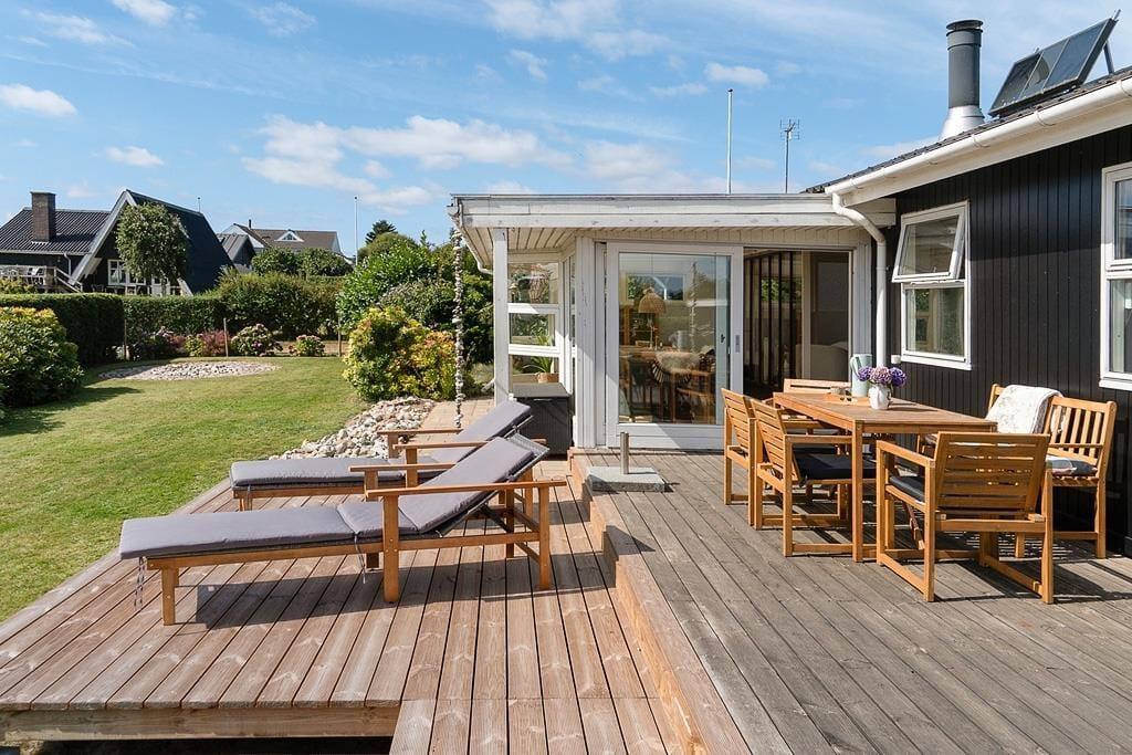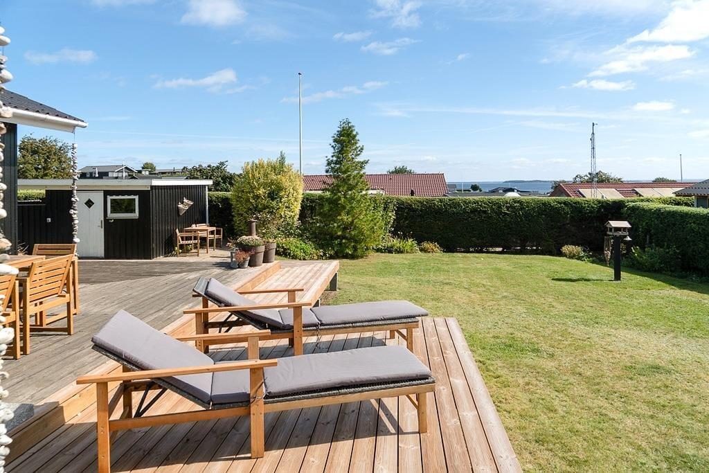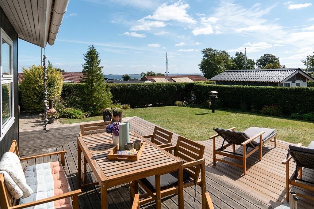 Den store terrasse, samt en der er overdækket, er det oplagte sted at tilbringe solrige dage. Her kan du starte morgenen med en kop kaffe, grille til aftensmaden eller bare nyde en stille stund i skyggen. Den lukkede have giver en tryg og privat atmosfære, hvor både børn og voksne kan lege og slappe af uden forstyrrelser. Terrassen er perfekt til lange, afslappede dage med udsigt til det omkringliggende område, og med flere hyggelige solkroge er der altid et sted at finde læ. Du har også udsigt til vandet fra sommerhuset, som understreger den afslappede feriestemning. Uanset om du nyder frokost i skyggen eller slapper af i liggestolen, kan du se frem til mange dejlige stunder i det fri.